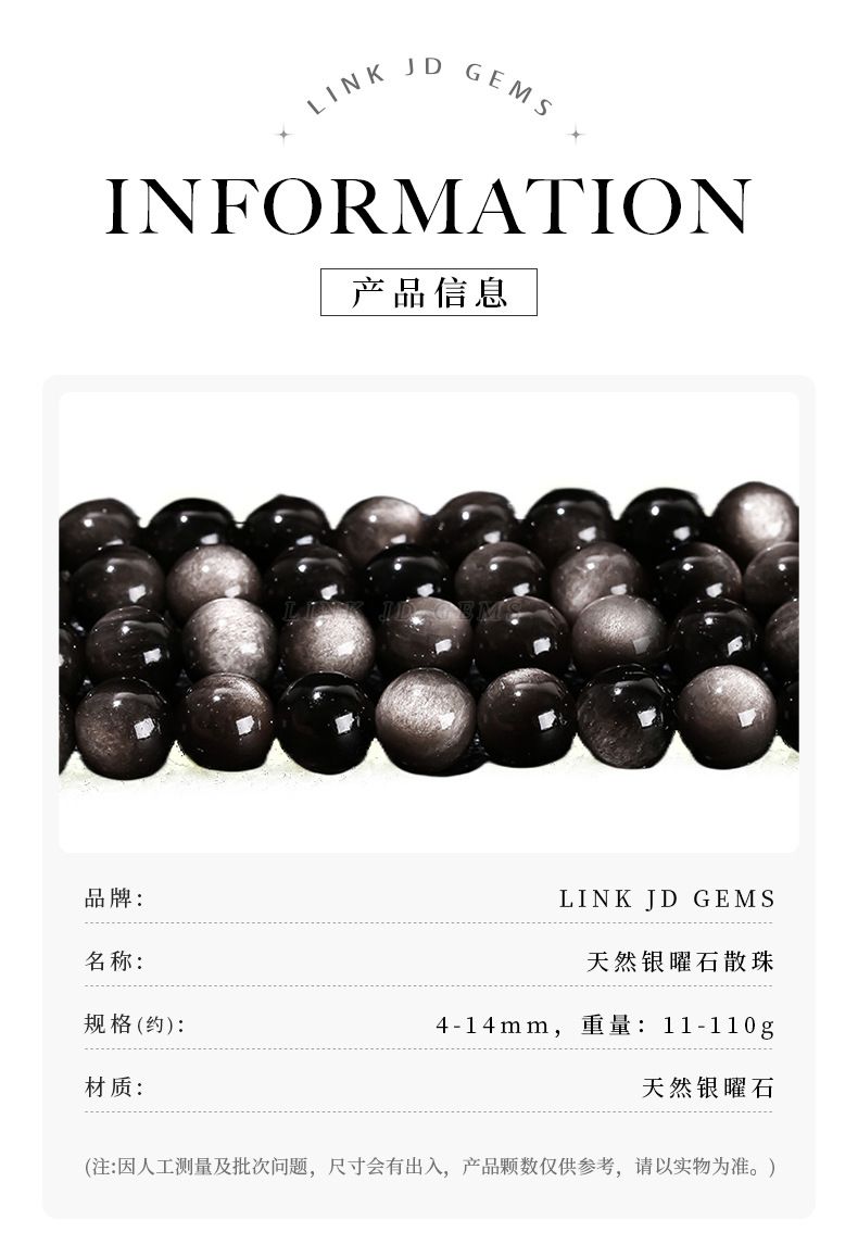 天然银曜石猫眼散珠圆珠子diy手工编织银曜貔貅手串水晶手链配件