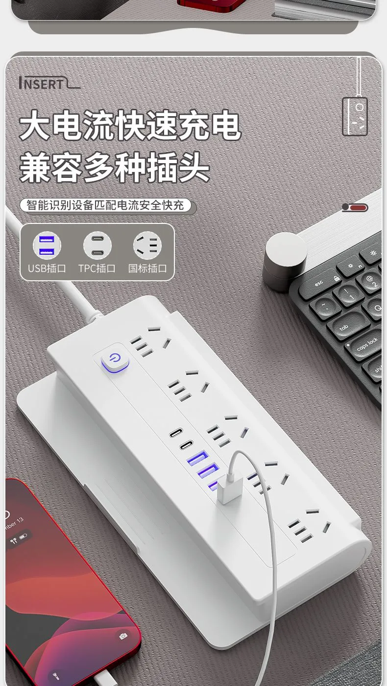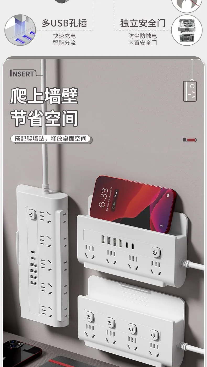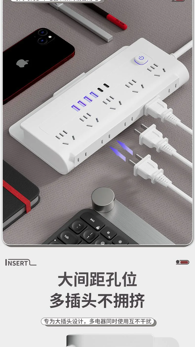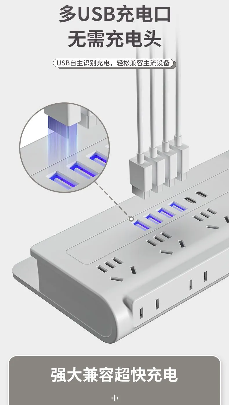 官方正品防雷纯铜智能多功能插座一转多孔转换器带USB长线排插