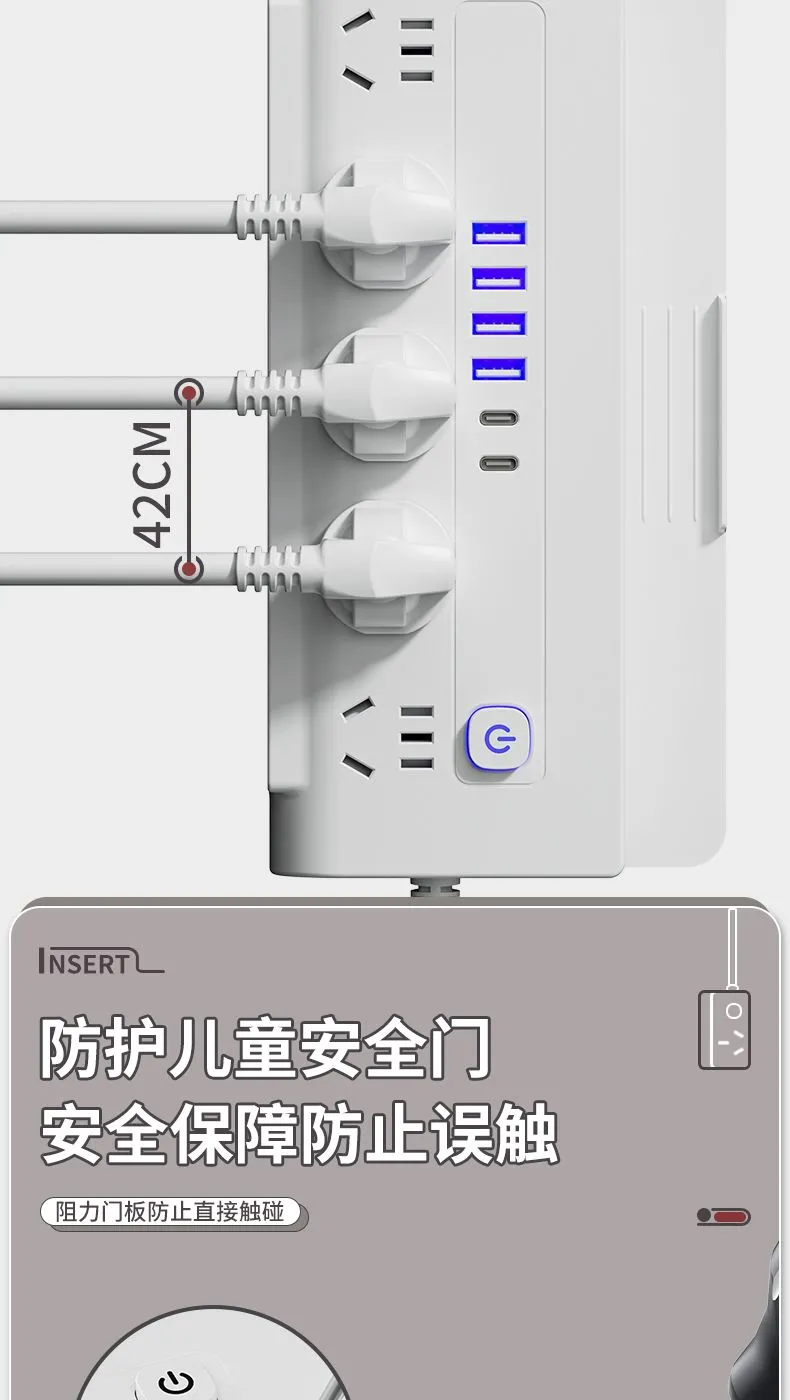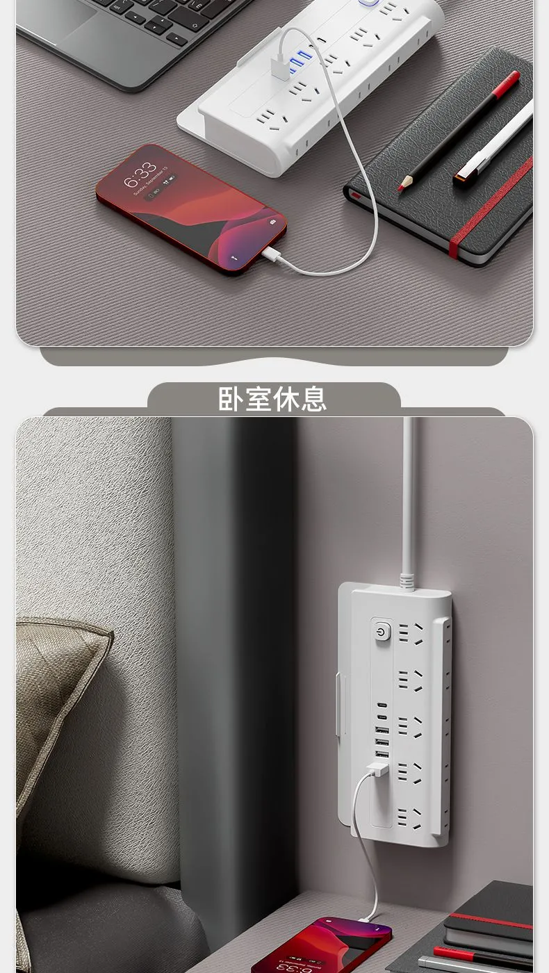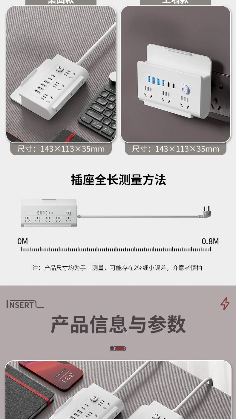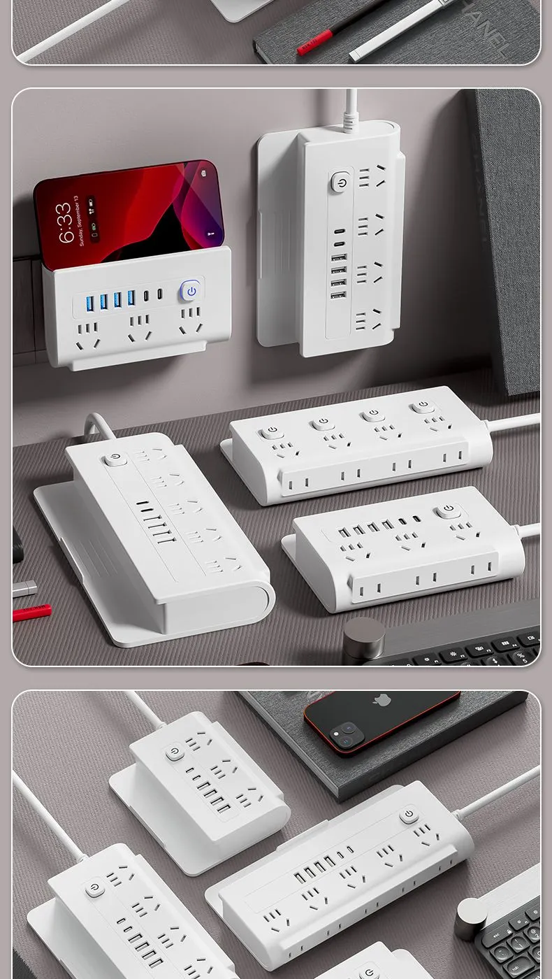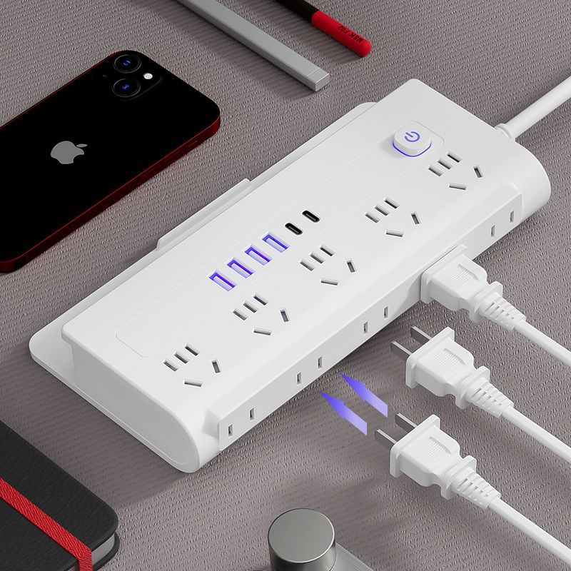官方正品防雷纯铜智能多功能插座一转多孔转换器带USB长线排插