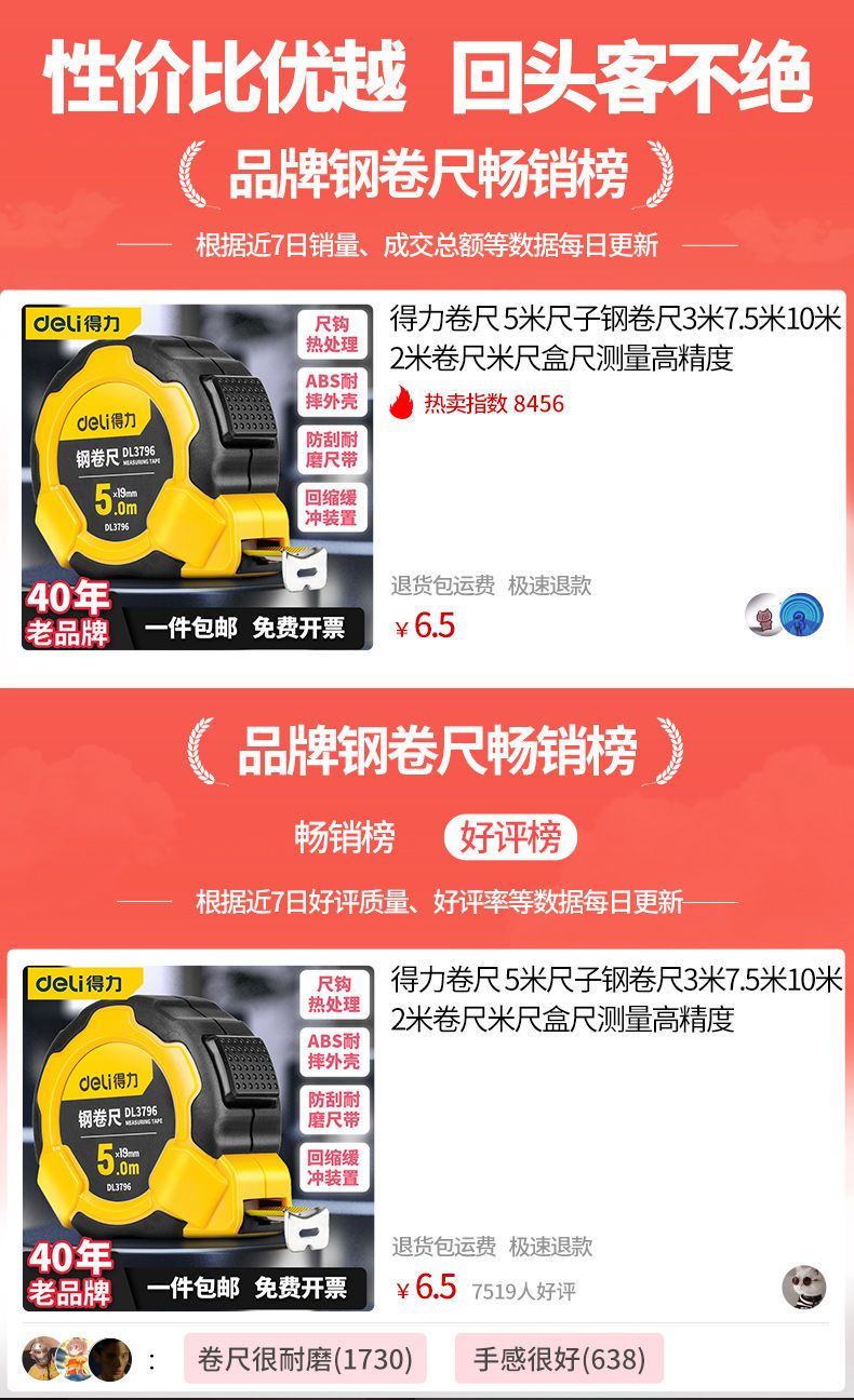 得力卷尺5米尺子钢卷尺3米10米2米耐用米尺量身高盒尺高精度