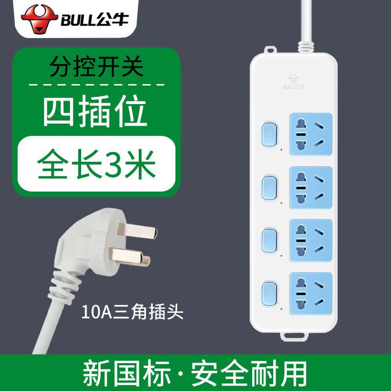 公牛插座带线插排接线板家用无线0.2/3/5/10米独立开关插线板插板