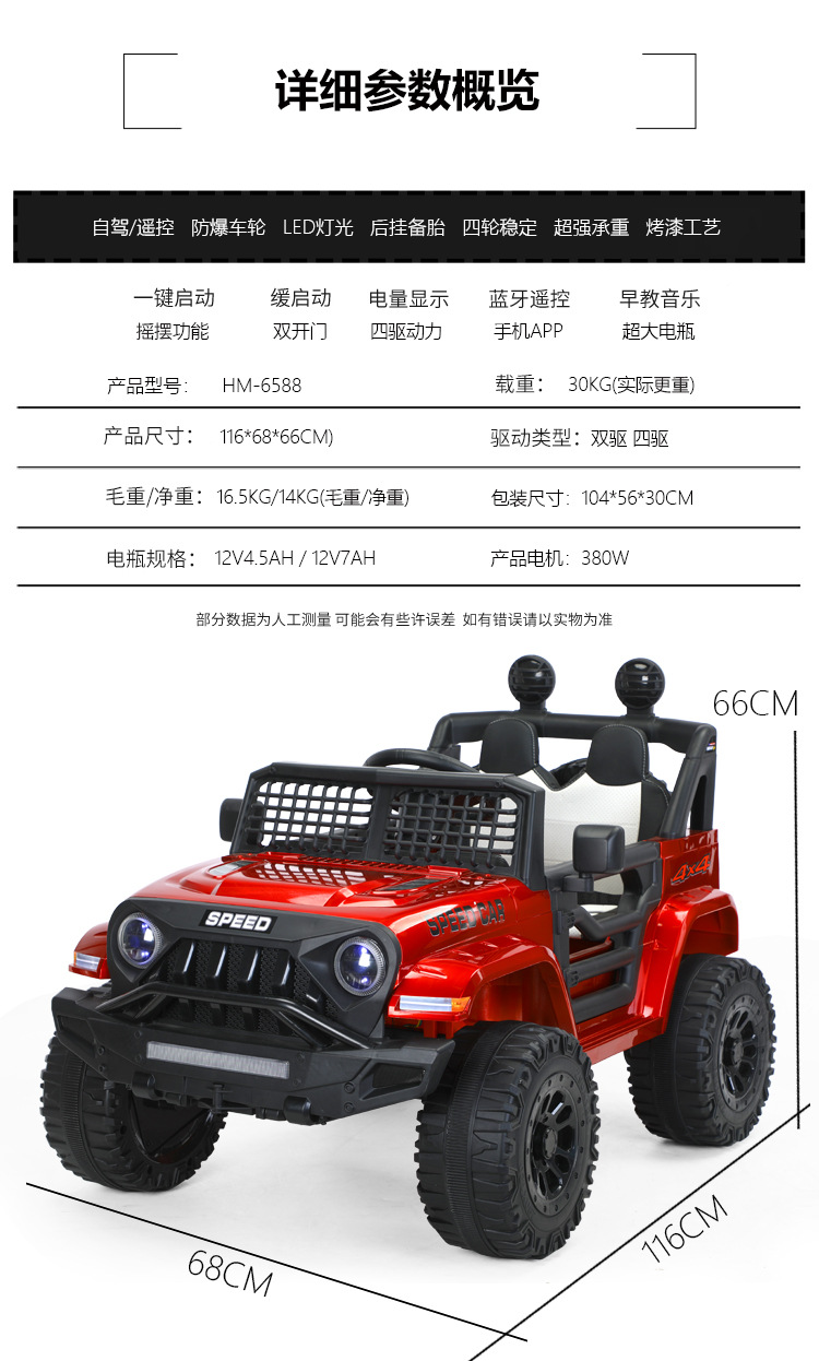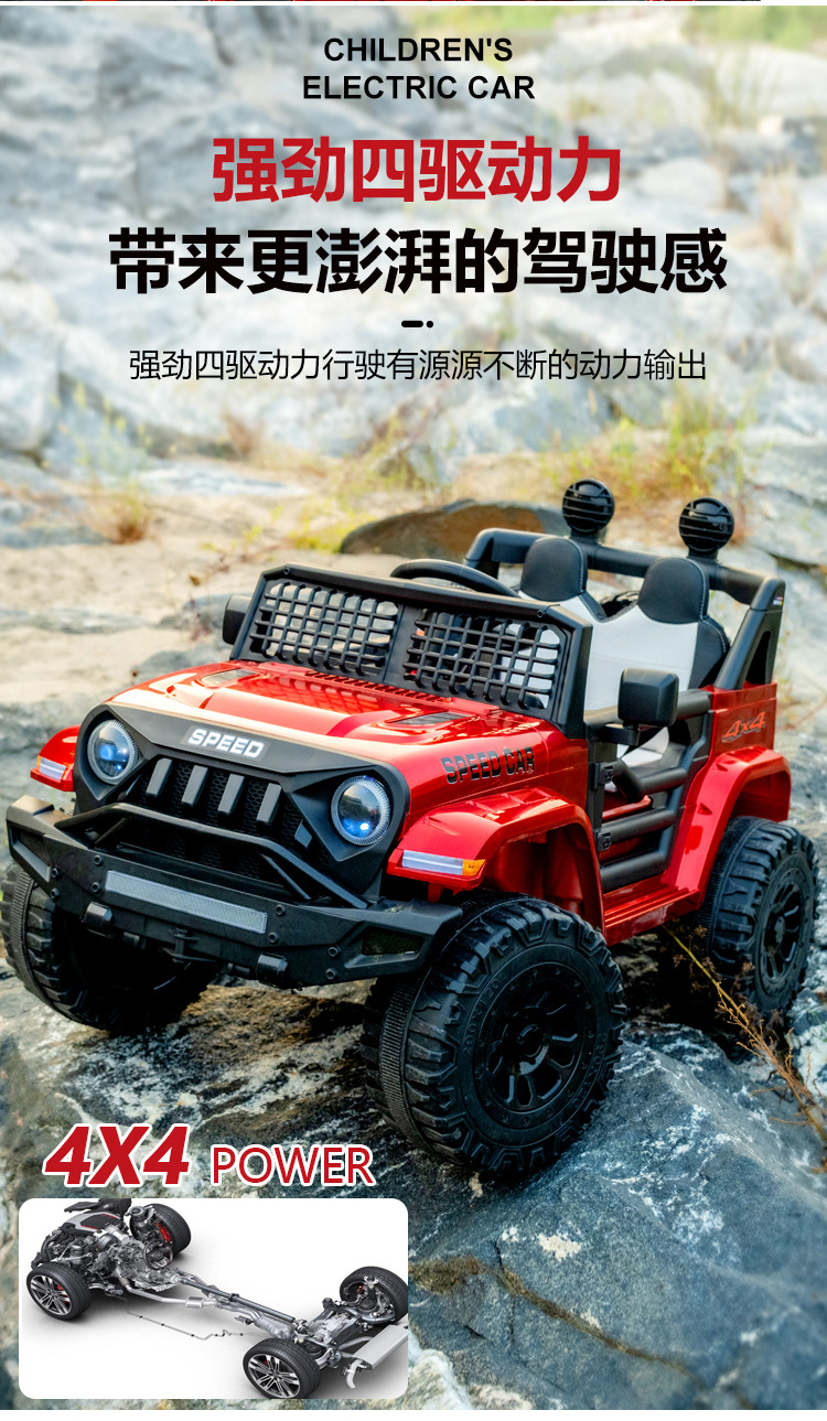 儿童电动车四轮越野车1-6岁男孩宝宝可坐双人四驱动充电汽车大号