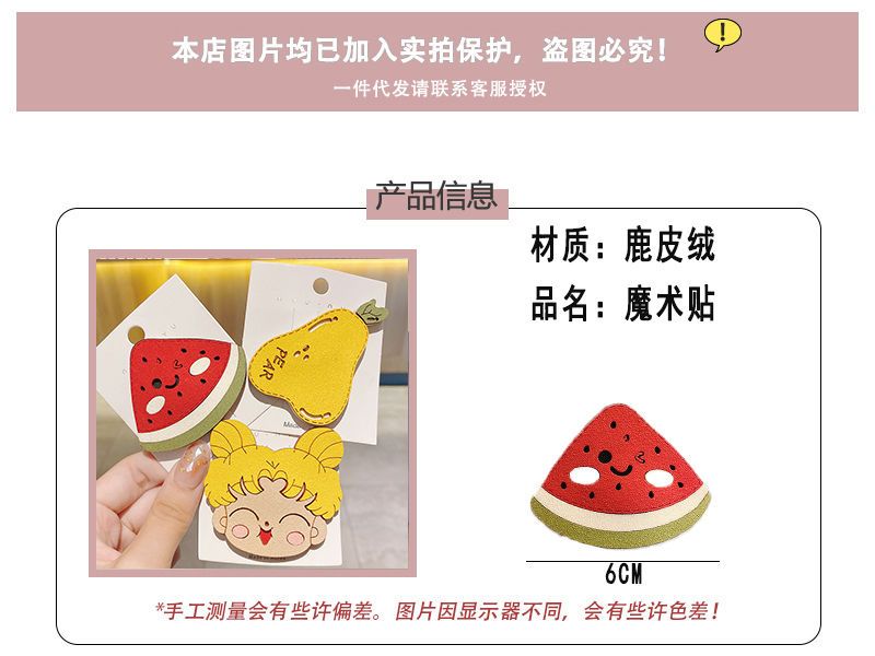 日韩可爱魔术贴碎发神器儿童粘贴发卡头饰水果边夹少女刘海贴头饰