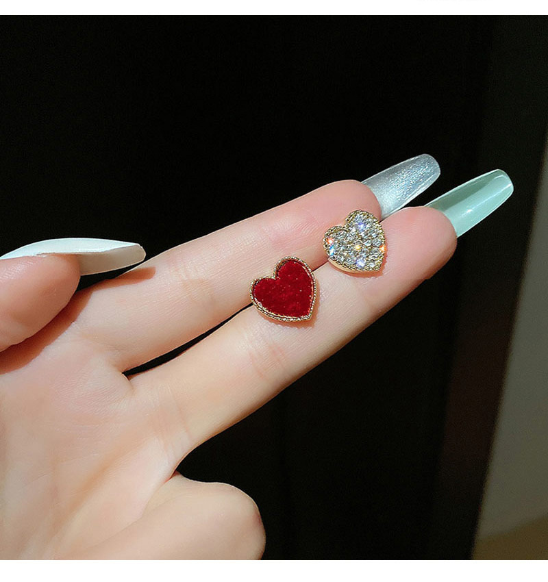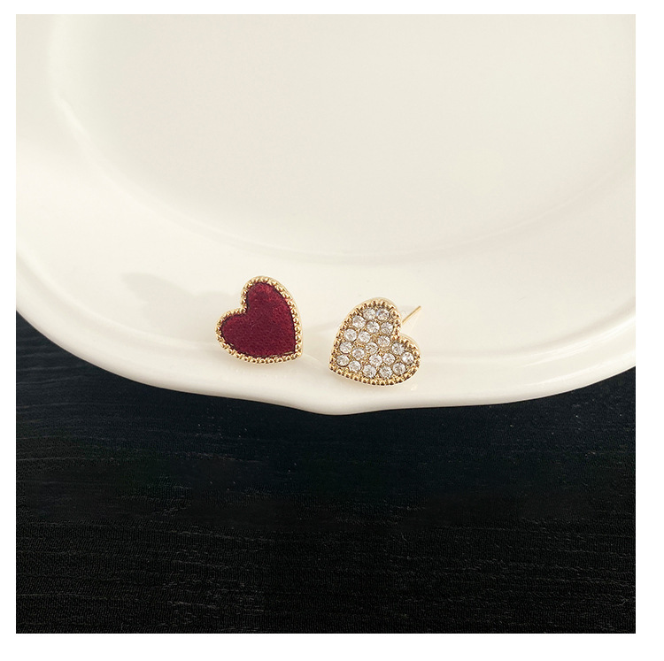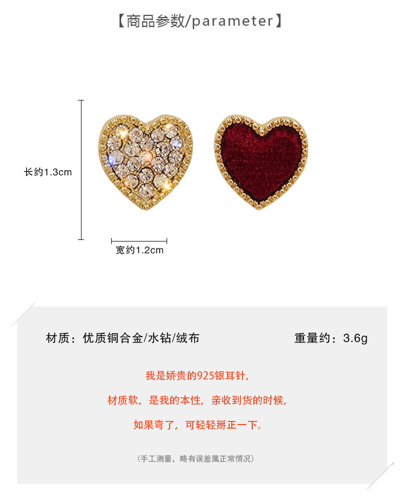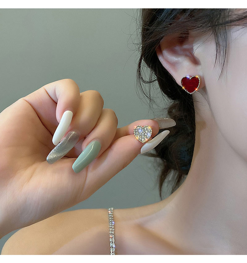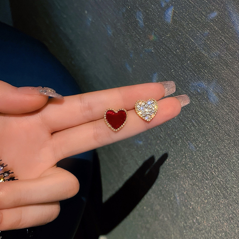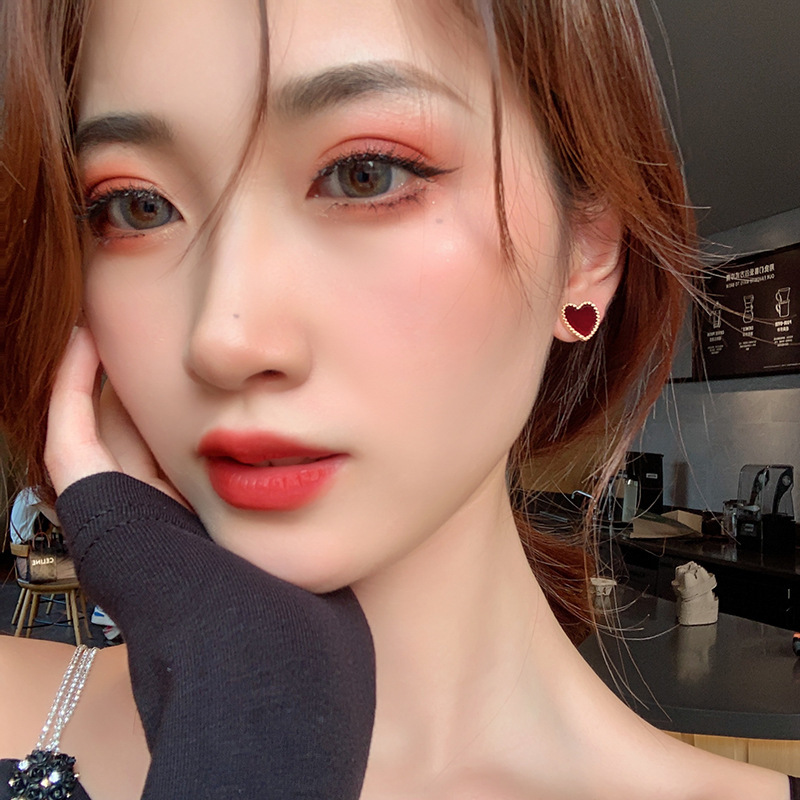 s925银针时尚复古红色新年耳钉女2023年小巧精致爱心小众耳饰批发
