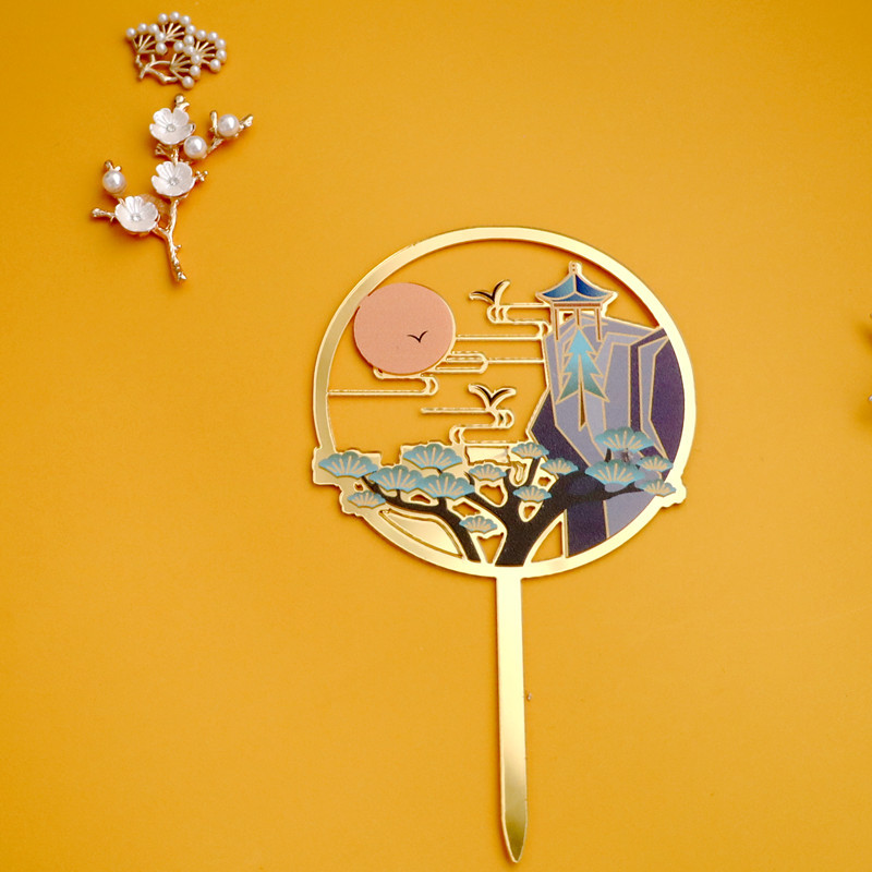中秋系列亚克力蛋糕插牌彩印中国风亚克力蛋糕装饰中秋兔子蛋糕插