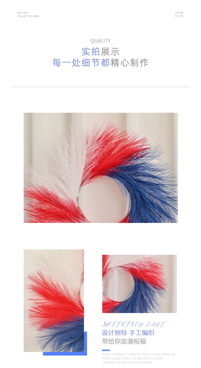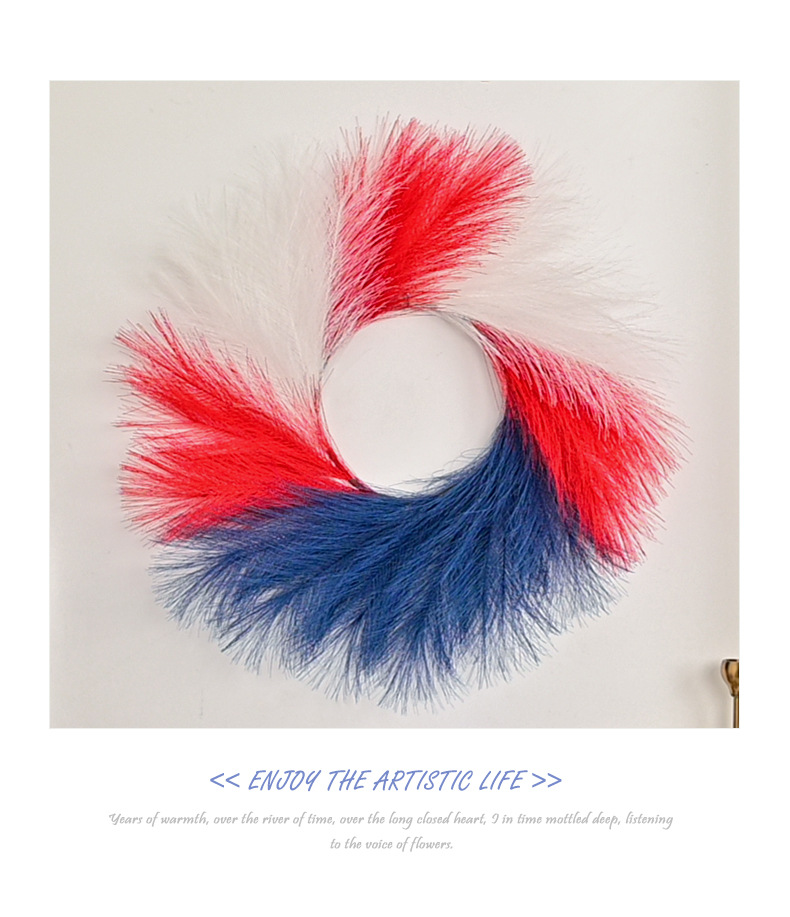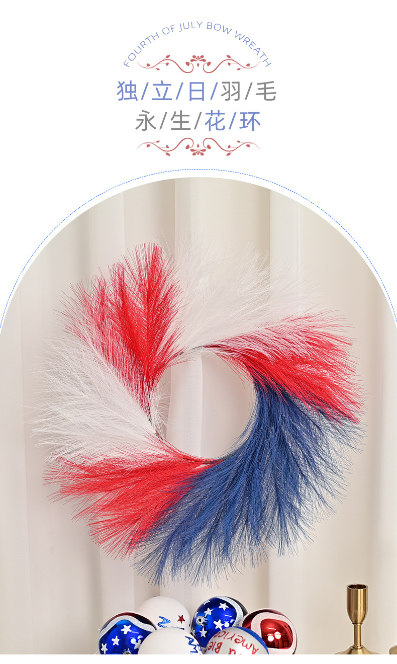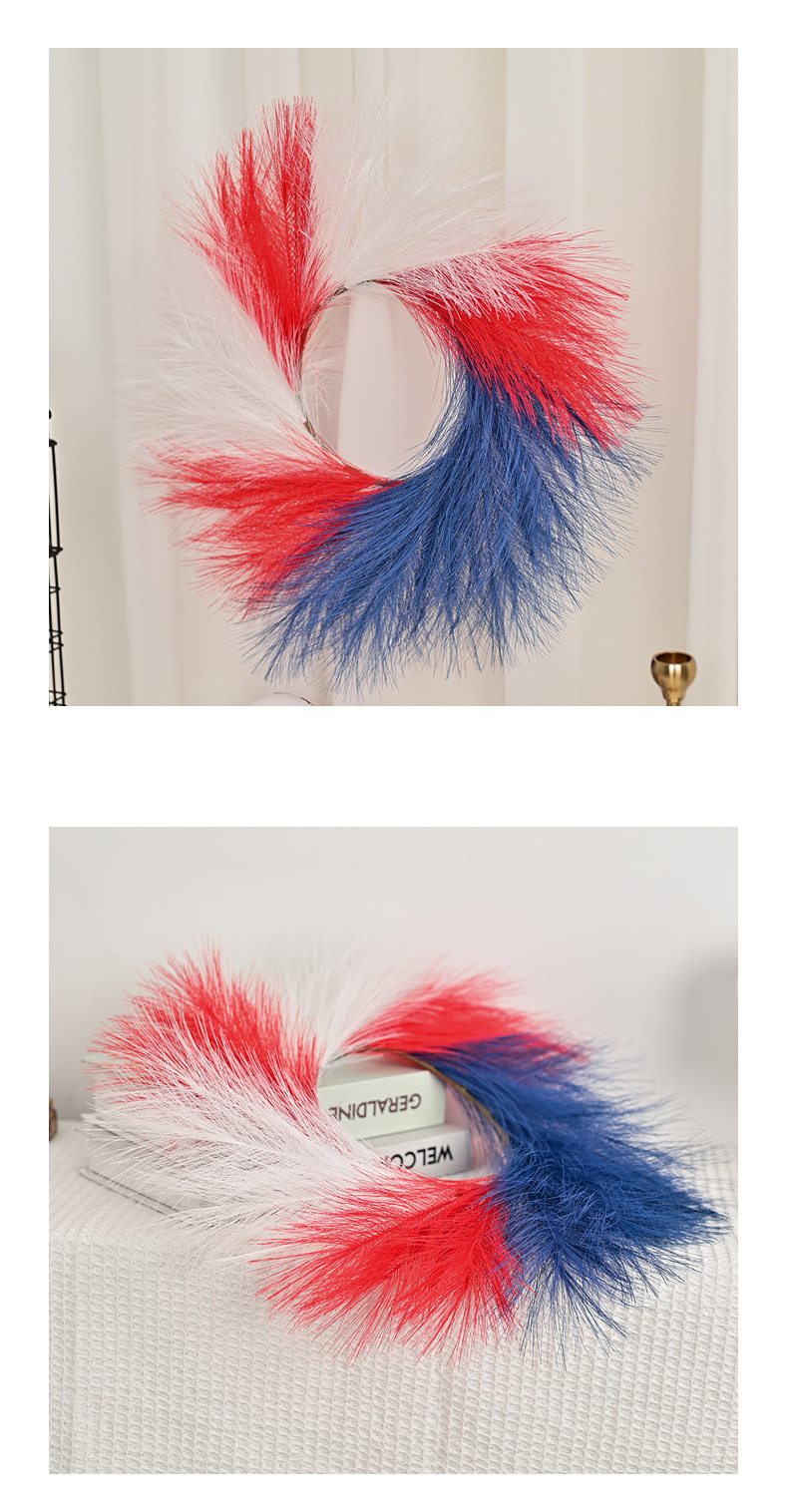 跨境新款美国独立日红白蓝仿芦苇草国庆节气氛背景装饰门挂花环