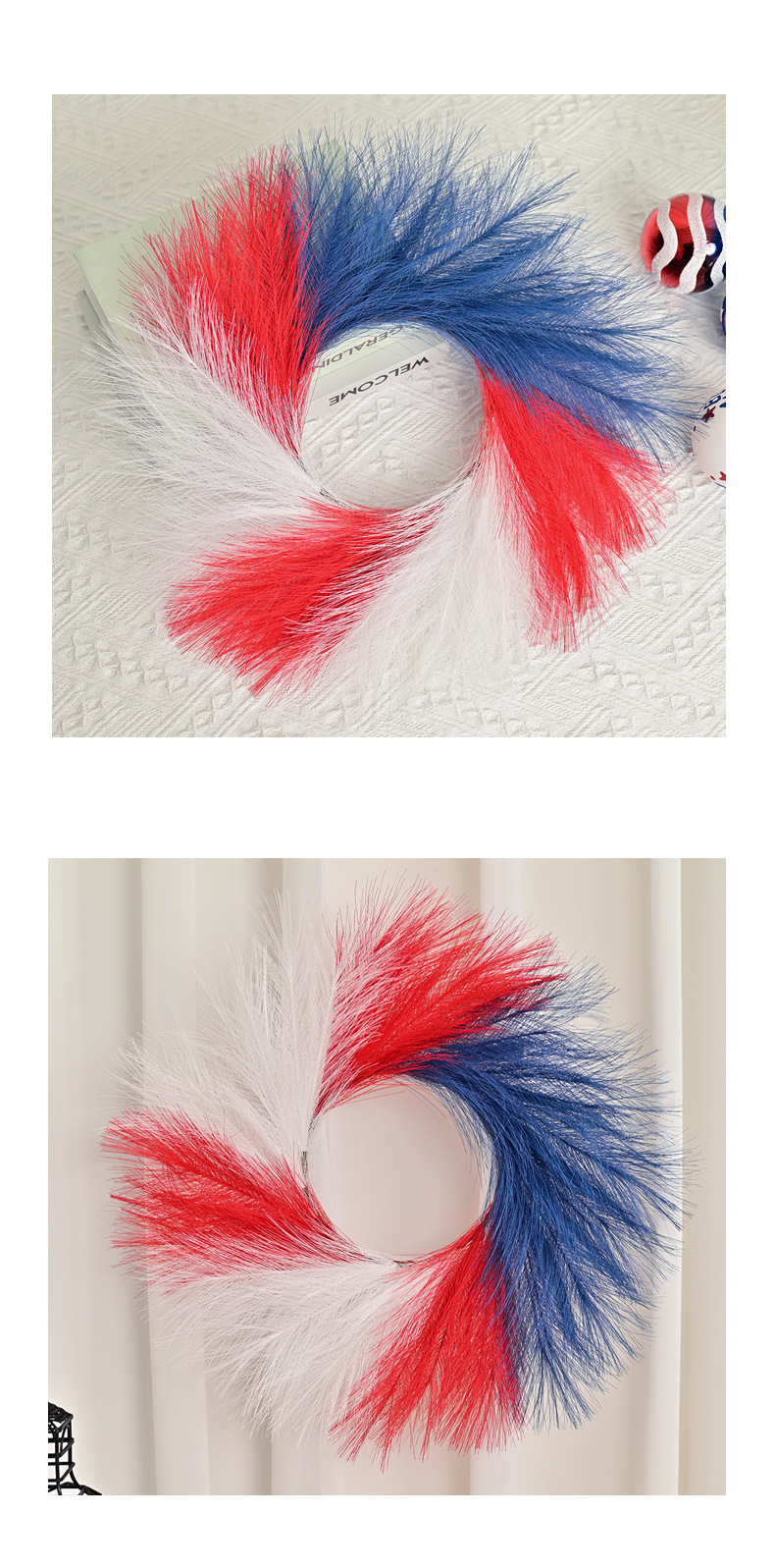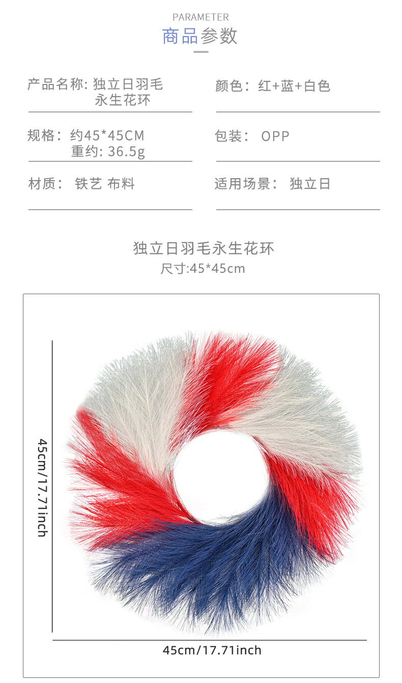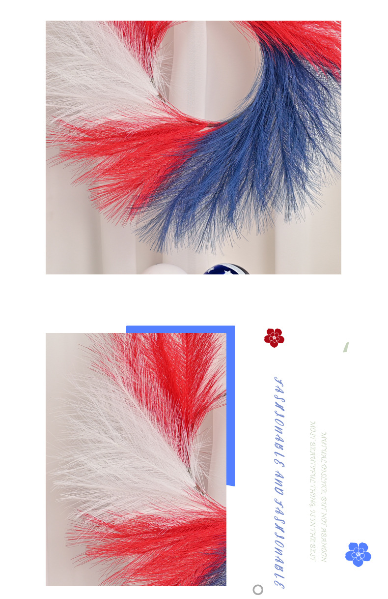 跨境新款美国独立日红白蓝仿芦苇草国庆节气氛背景装饰门挂花环