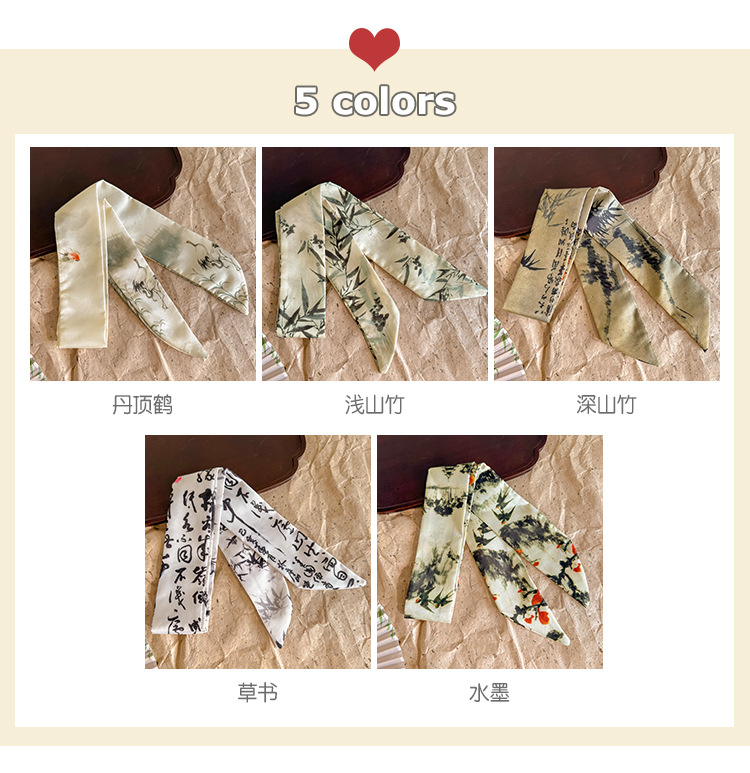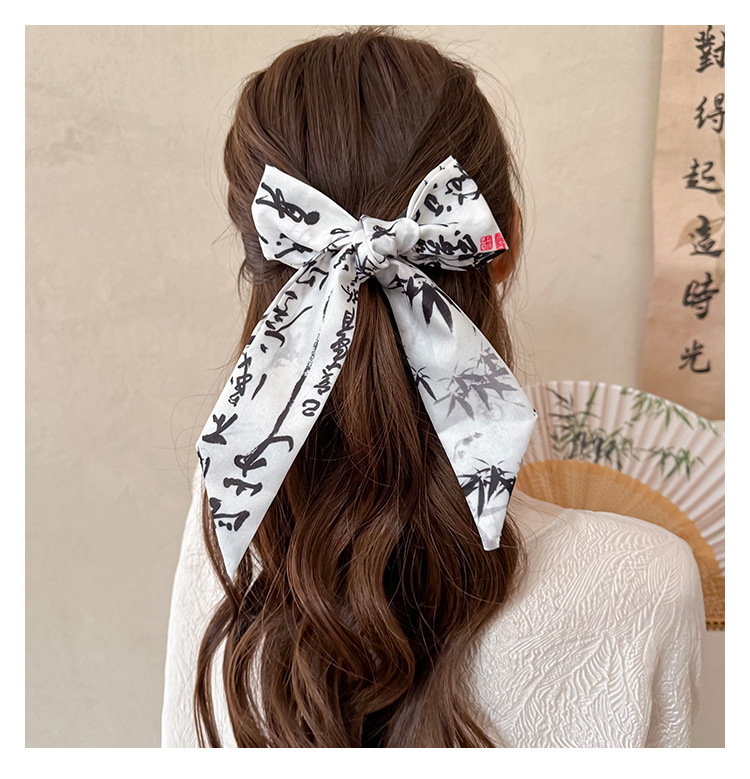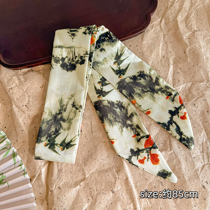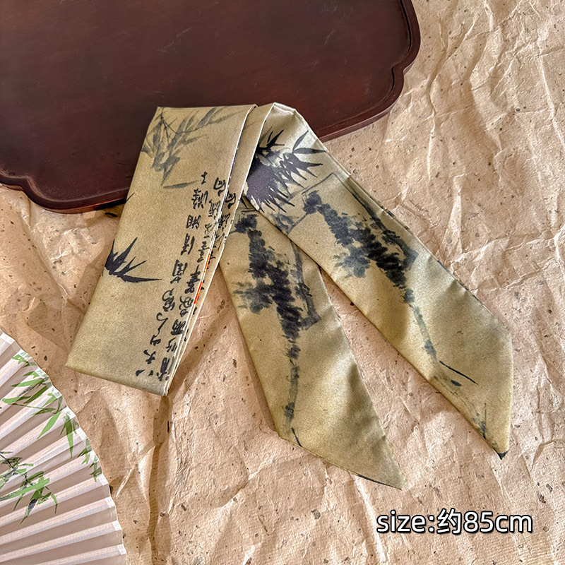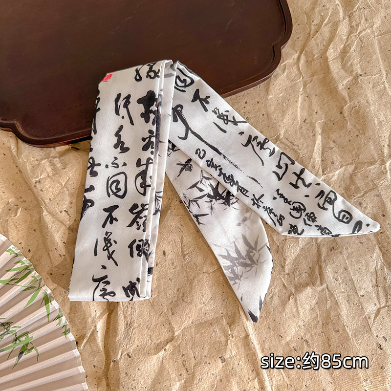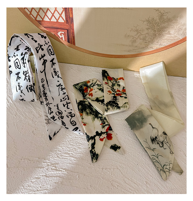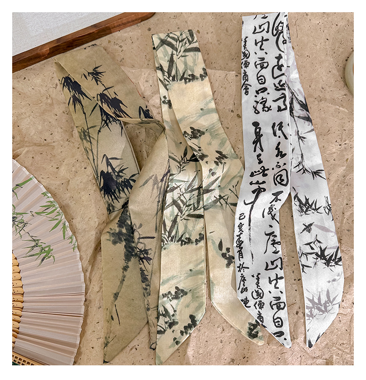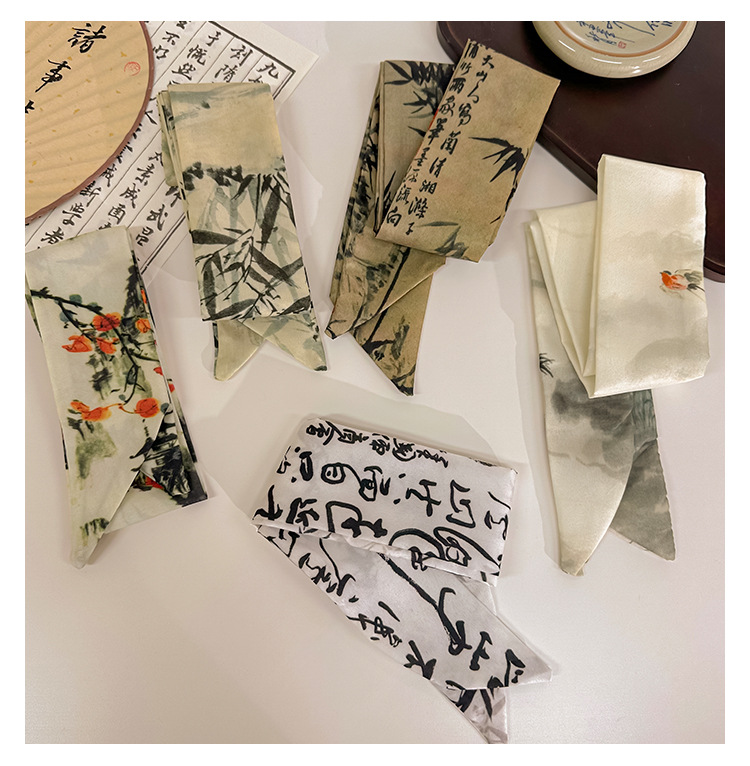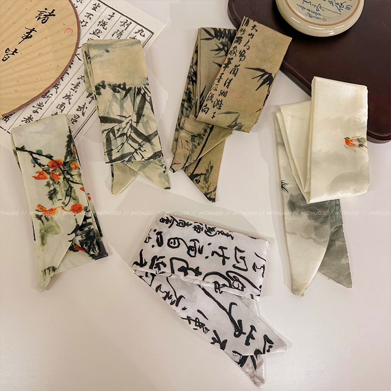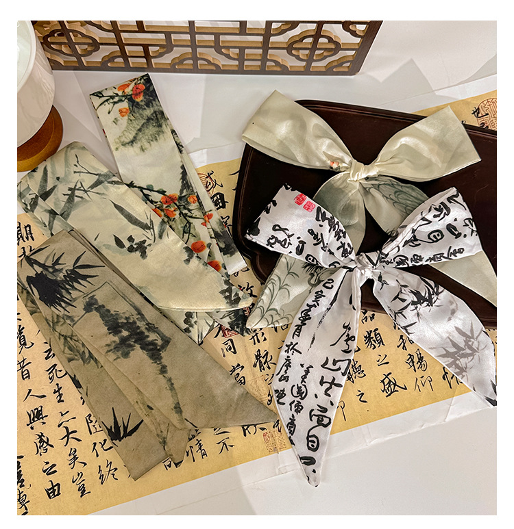 古风水墨画丝巾发带女新中式蝴蝶结飘带发绳国风旗袍汉服丝带发饰