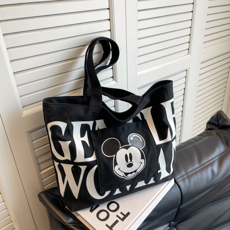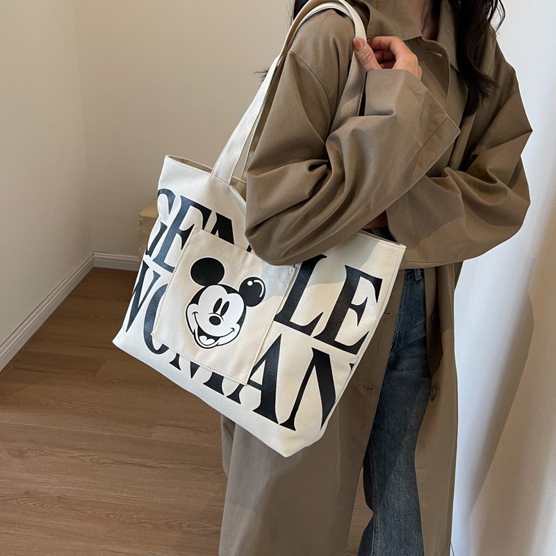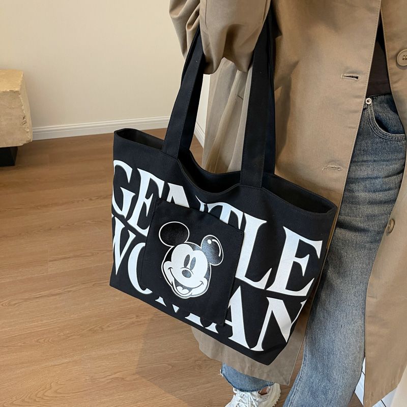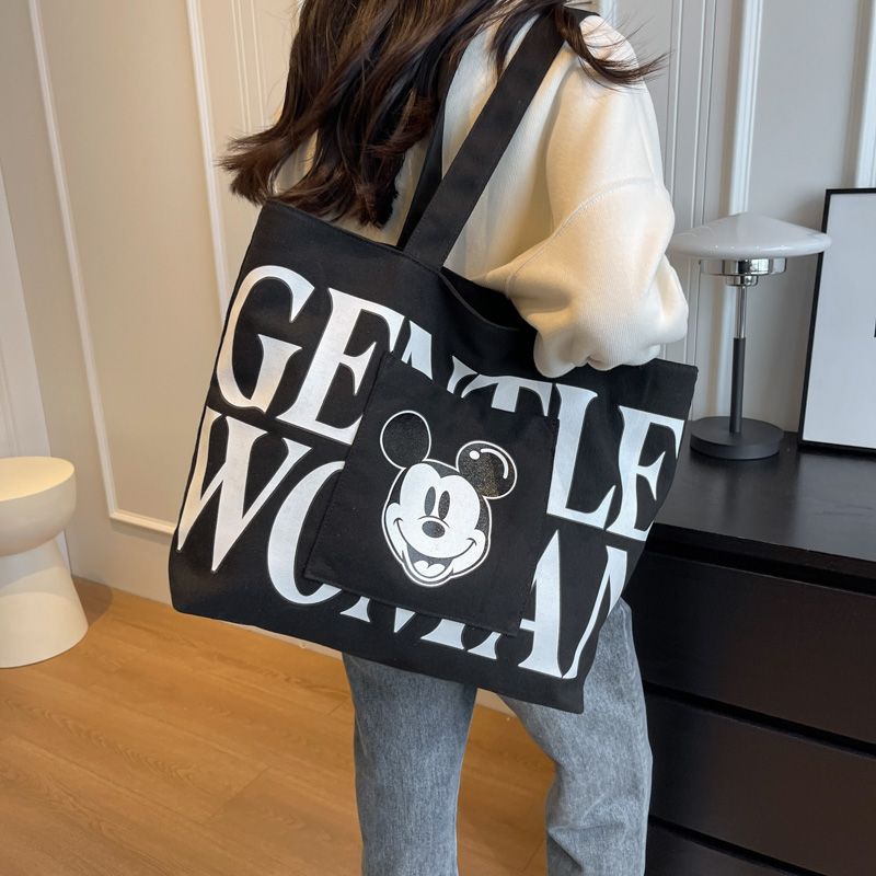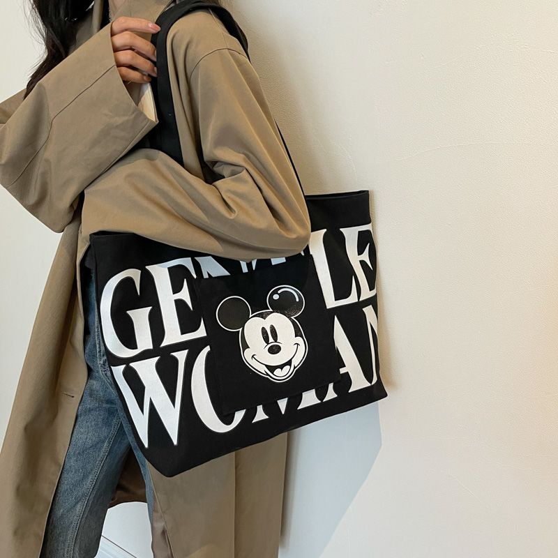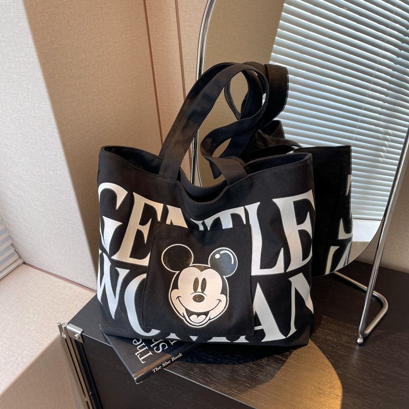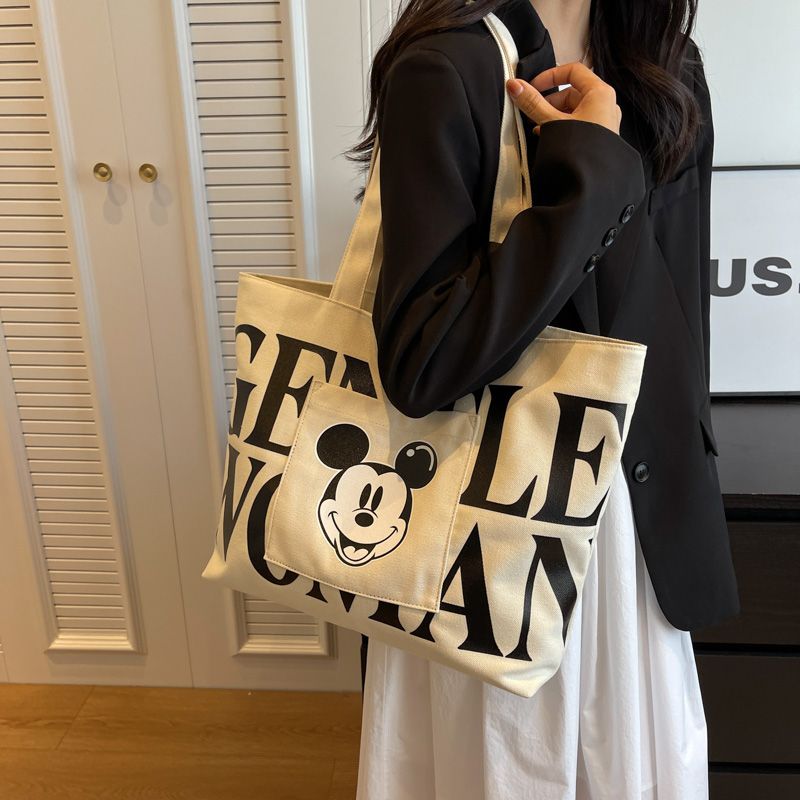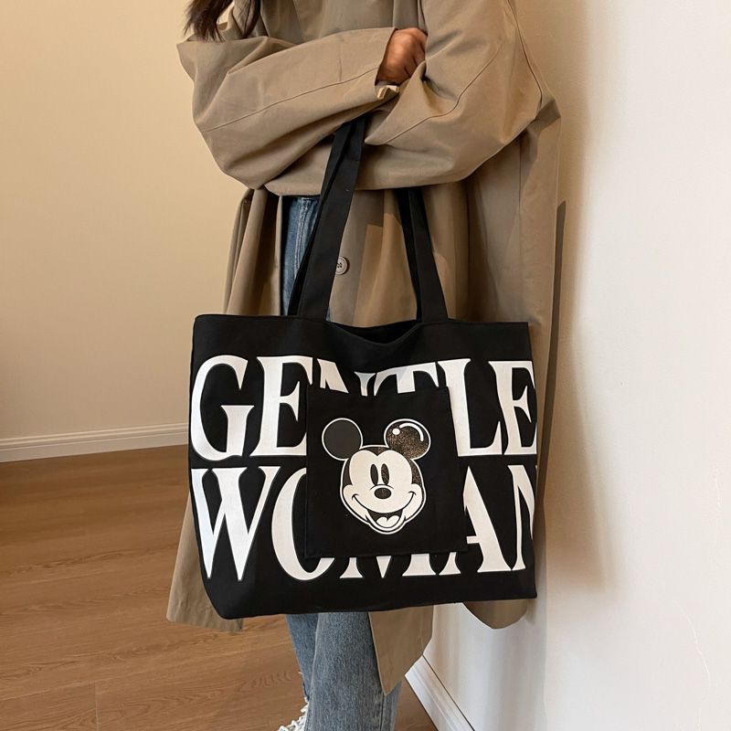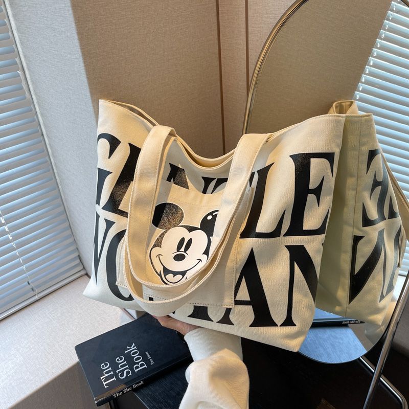 大容量帆布包包女2023新款日系卡通百搭单肩包学生上课通勤托特包