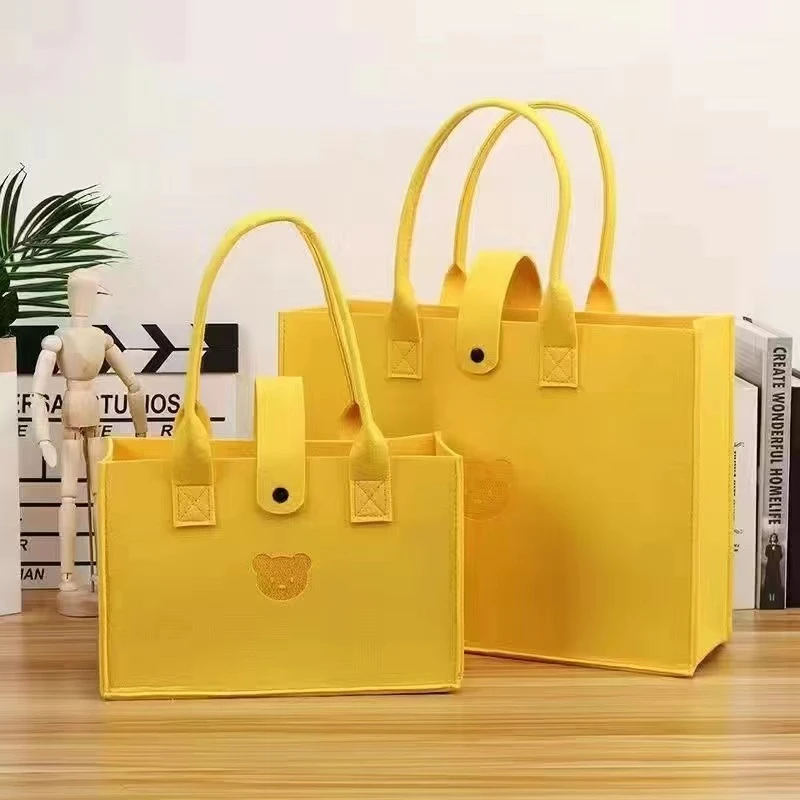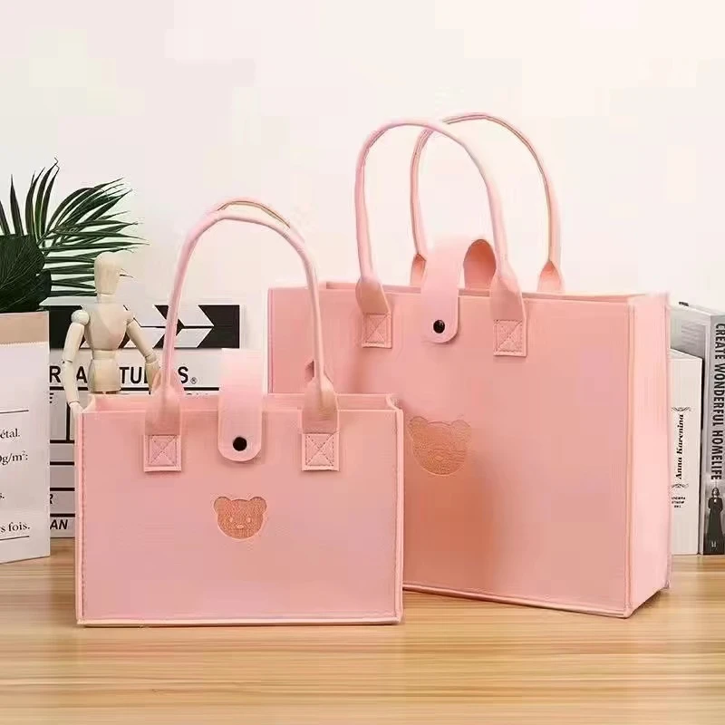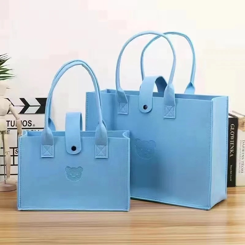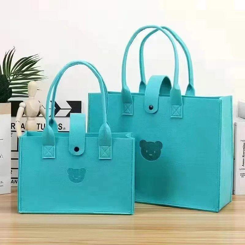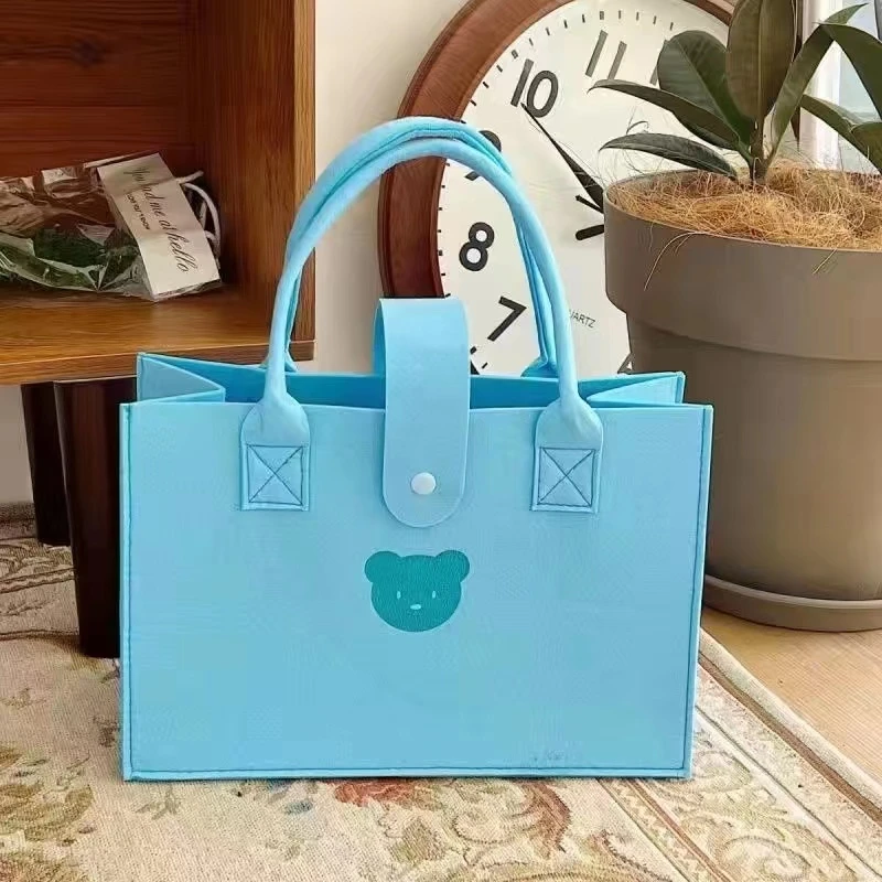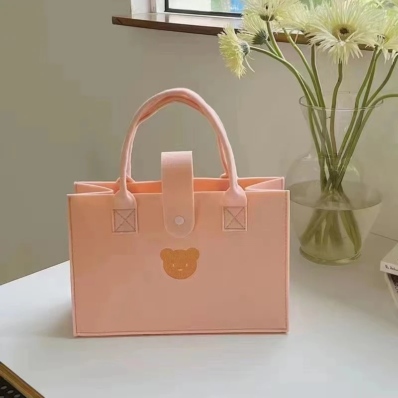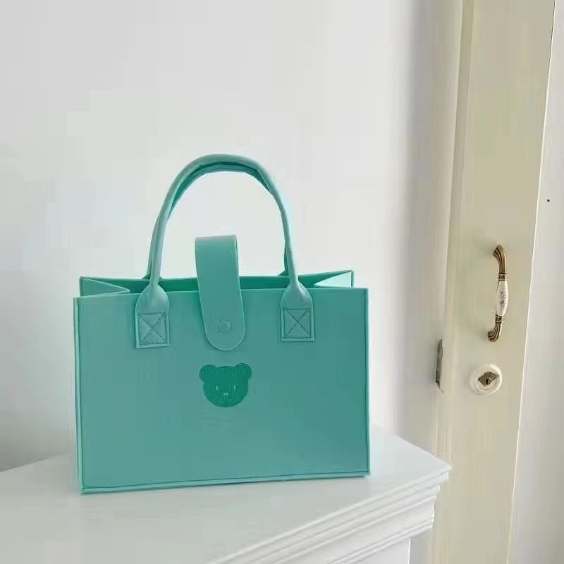 小熊毛毡手提包袋简约ins托特包大容量旅行妈咪包购物袋通勤包包