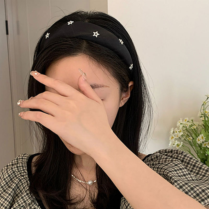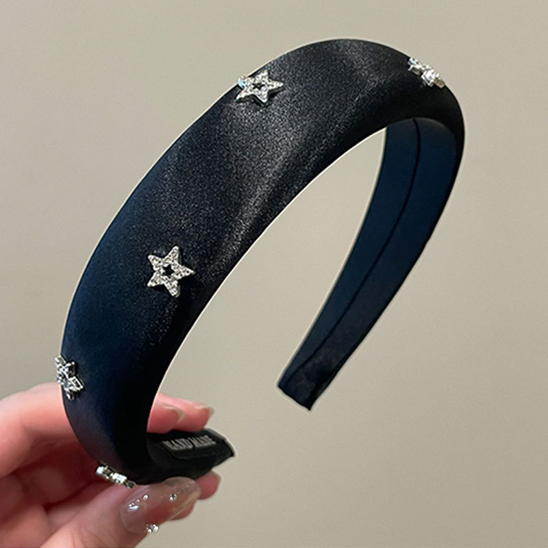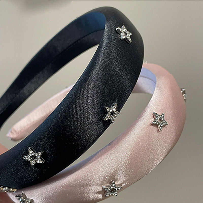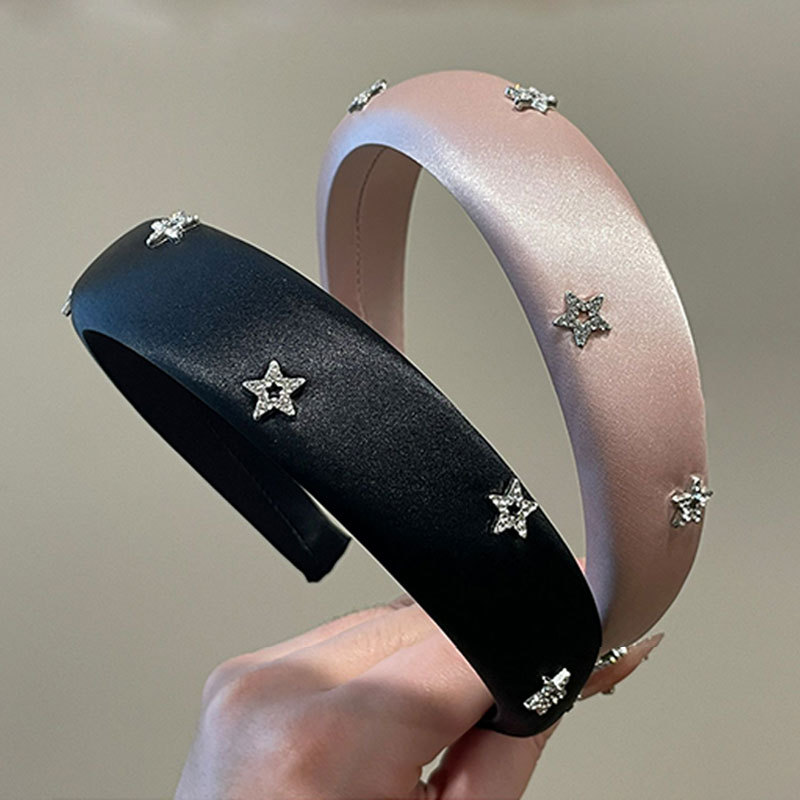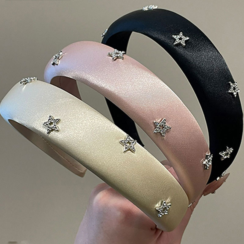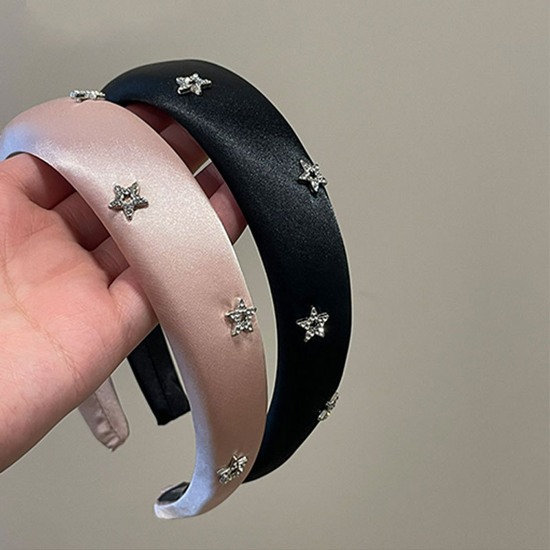 轻奢缎面时尚超闪精致五角星海绵发箍重工高颅顶网红发饰头箍