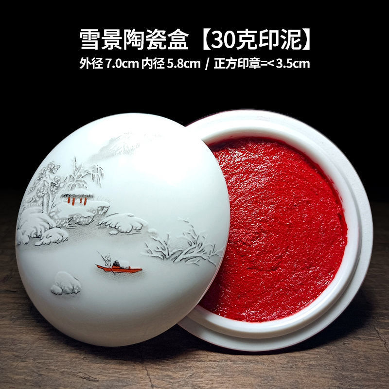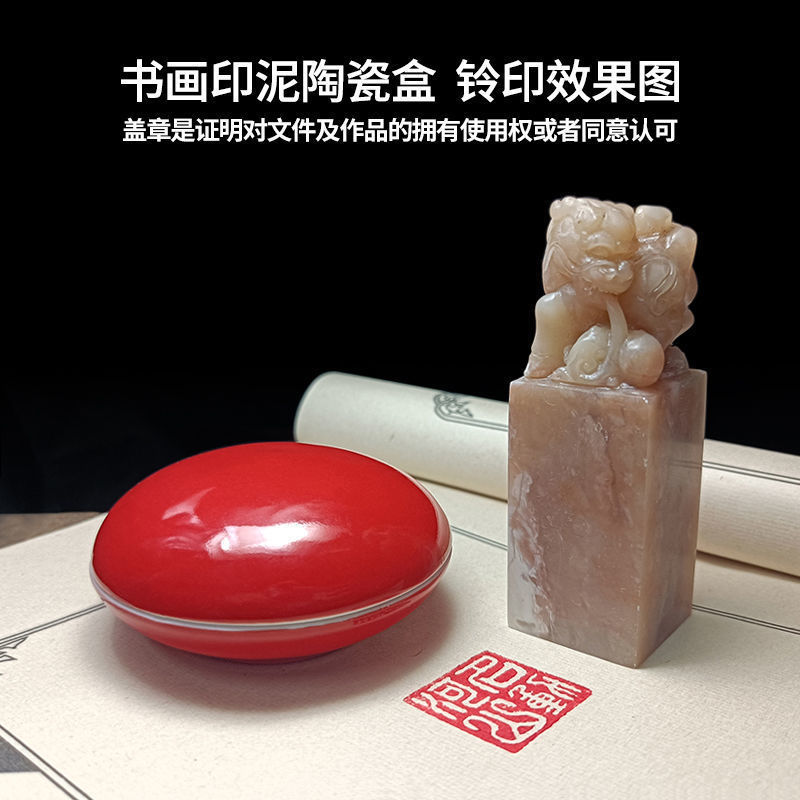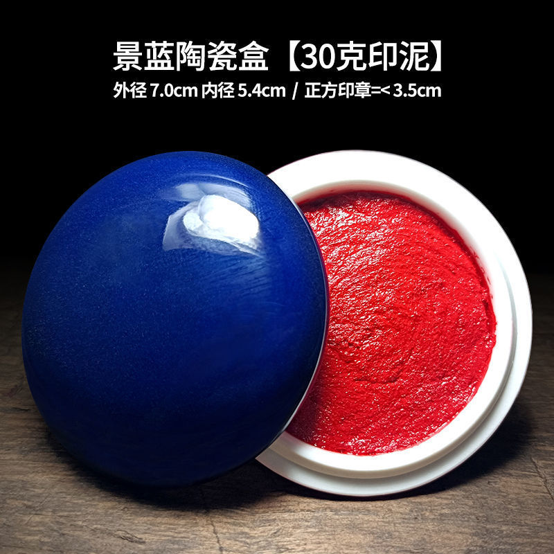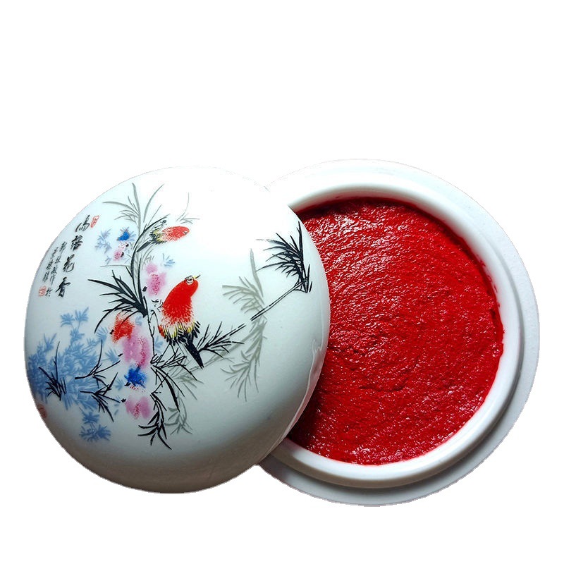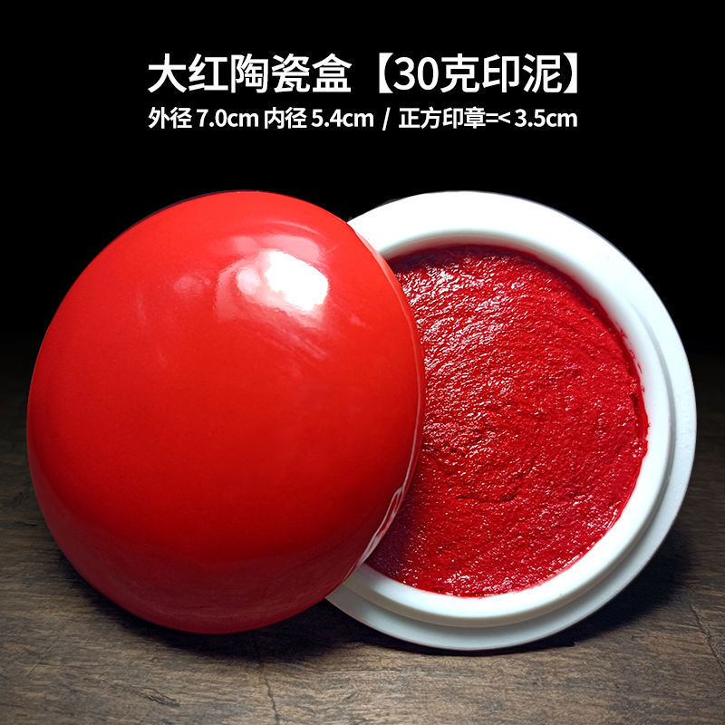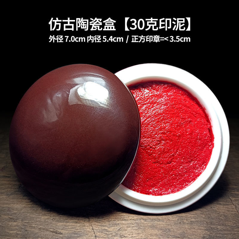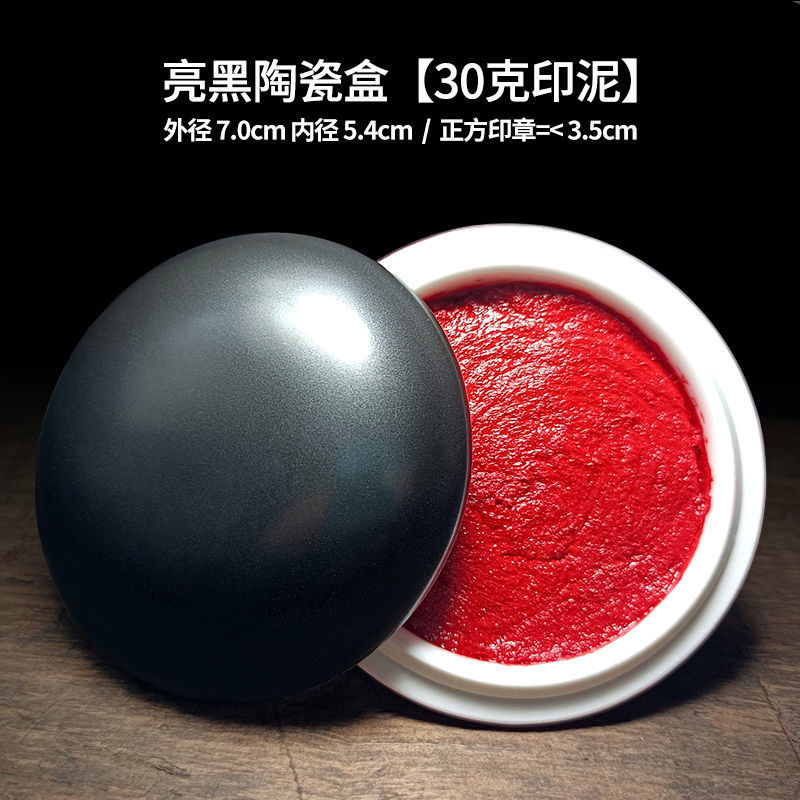 印泥盒堆朱陶瓷书法书画印章篆刻朱砂色大红檀香台30克60克90代发