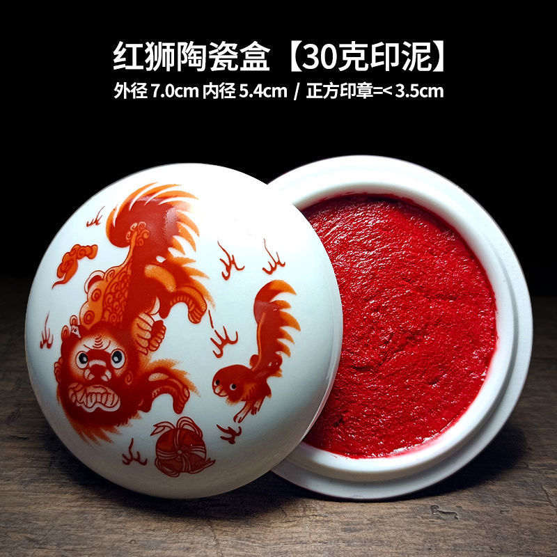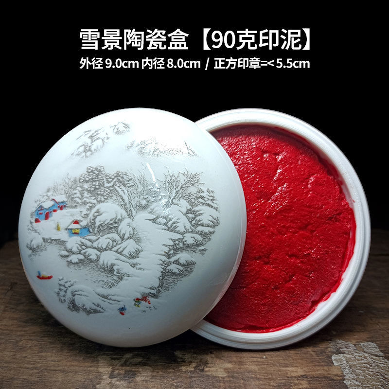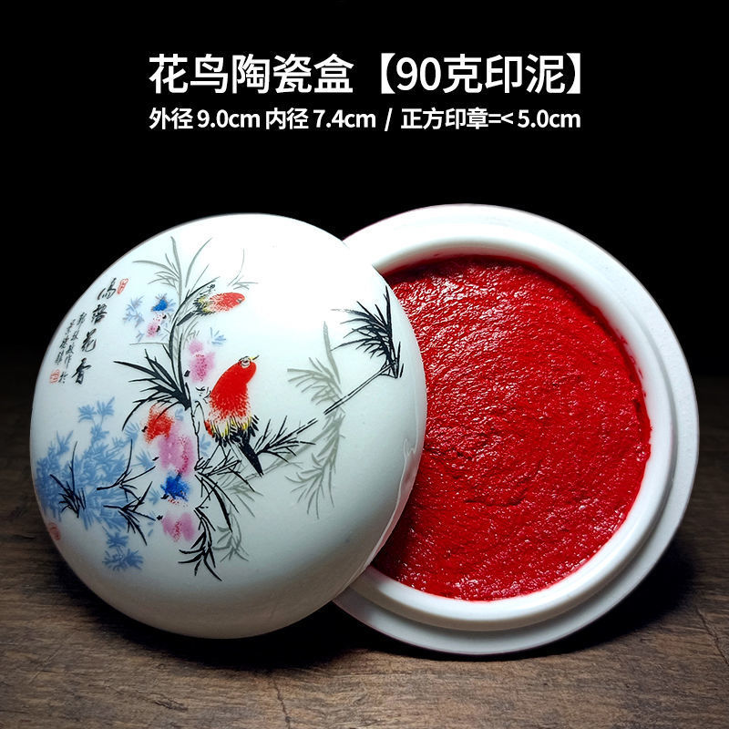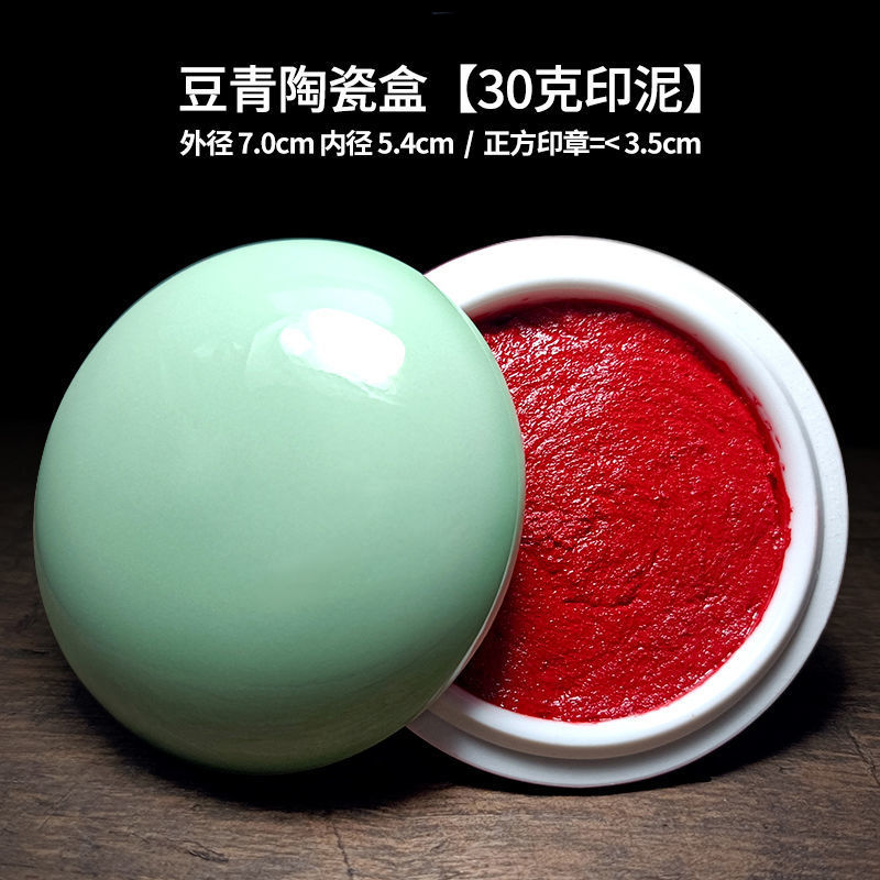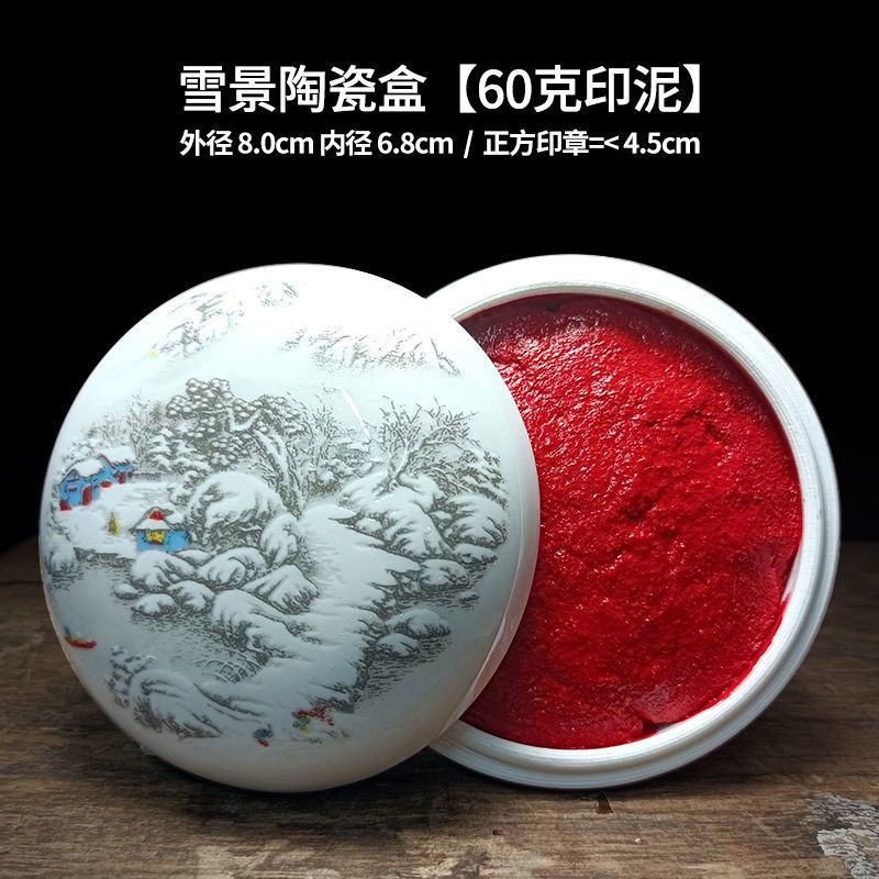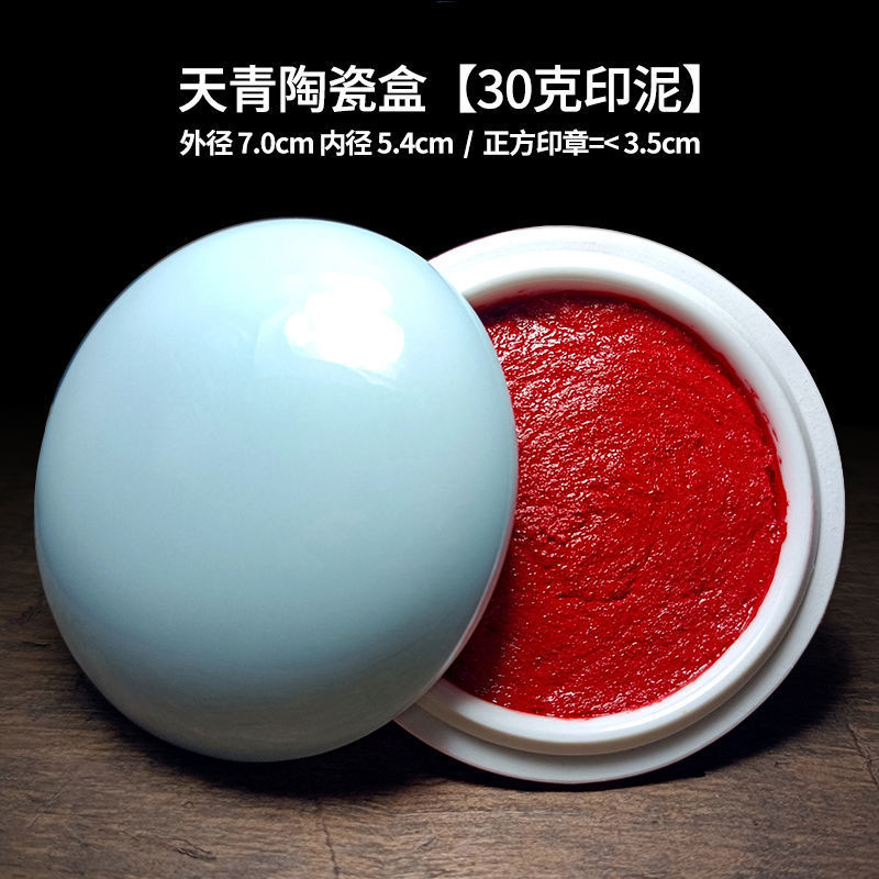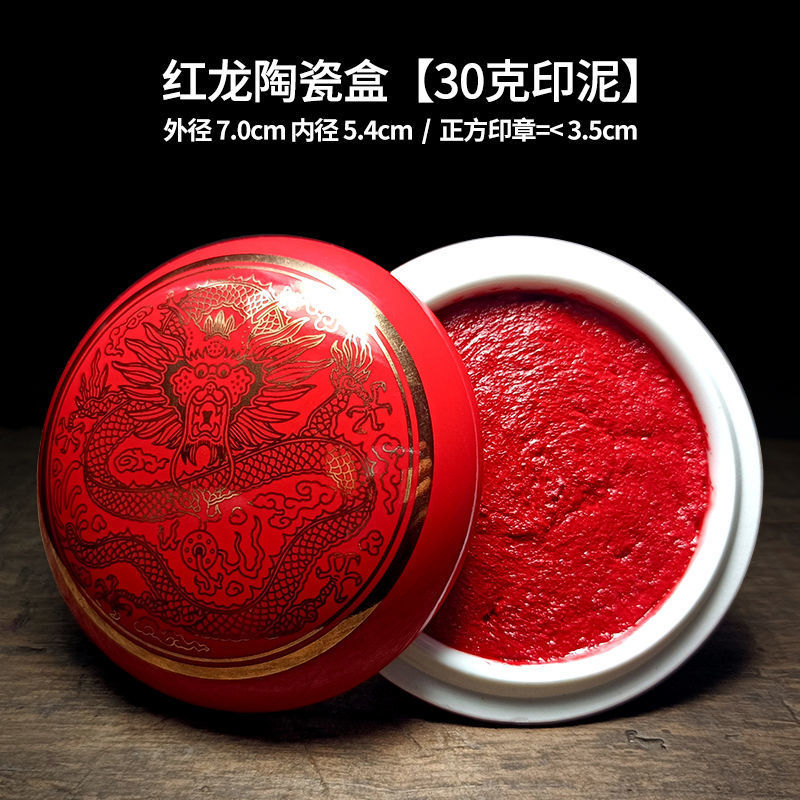 印泥盒堆朱陶瓷书法书画印章篆刻朱砂色大红檀香台30克60克90代发
