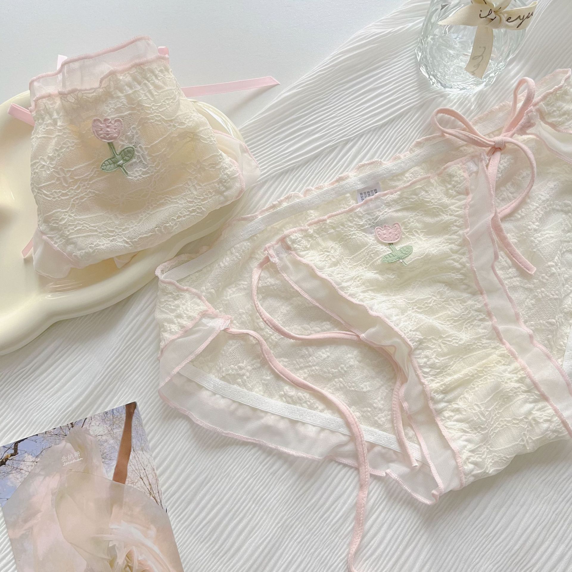 粉郁花仙~日系甜美纯欲风蕾丝内裤女绑带可解低腰女士三角裤