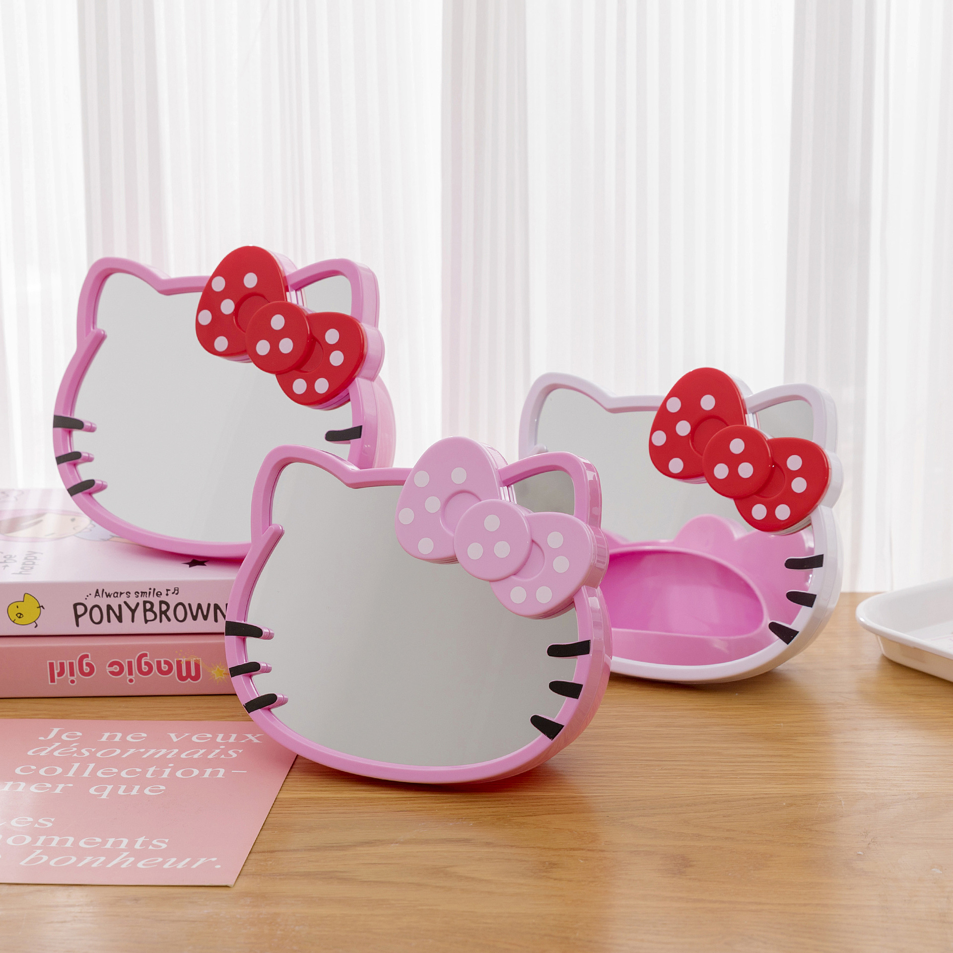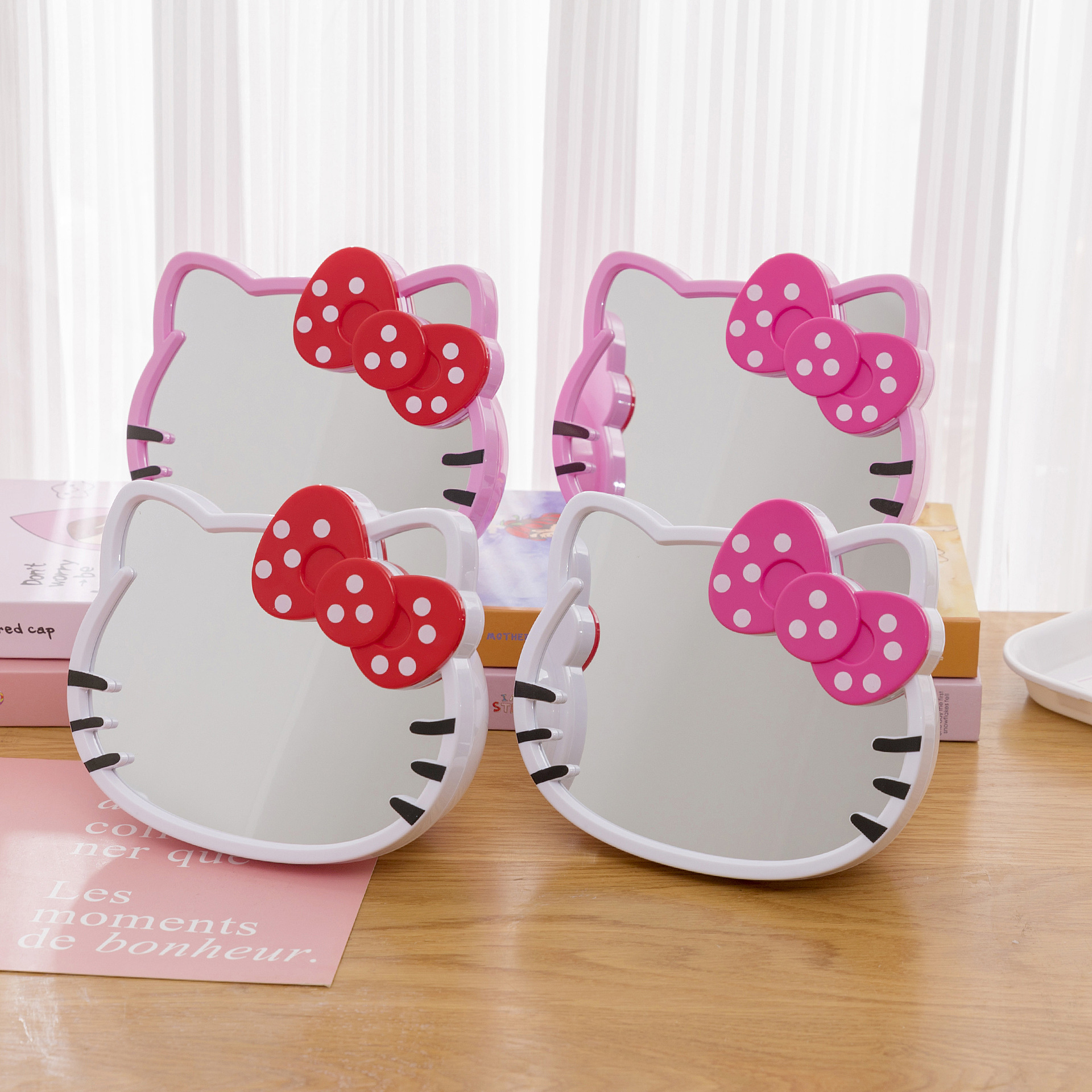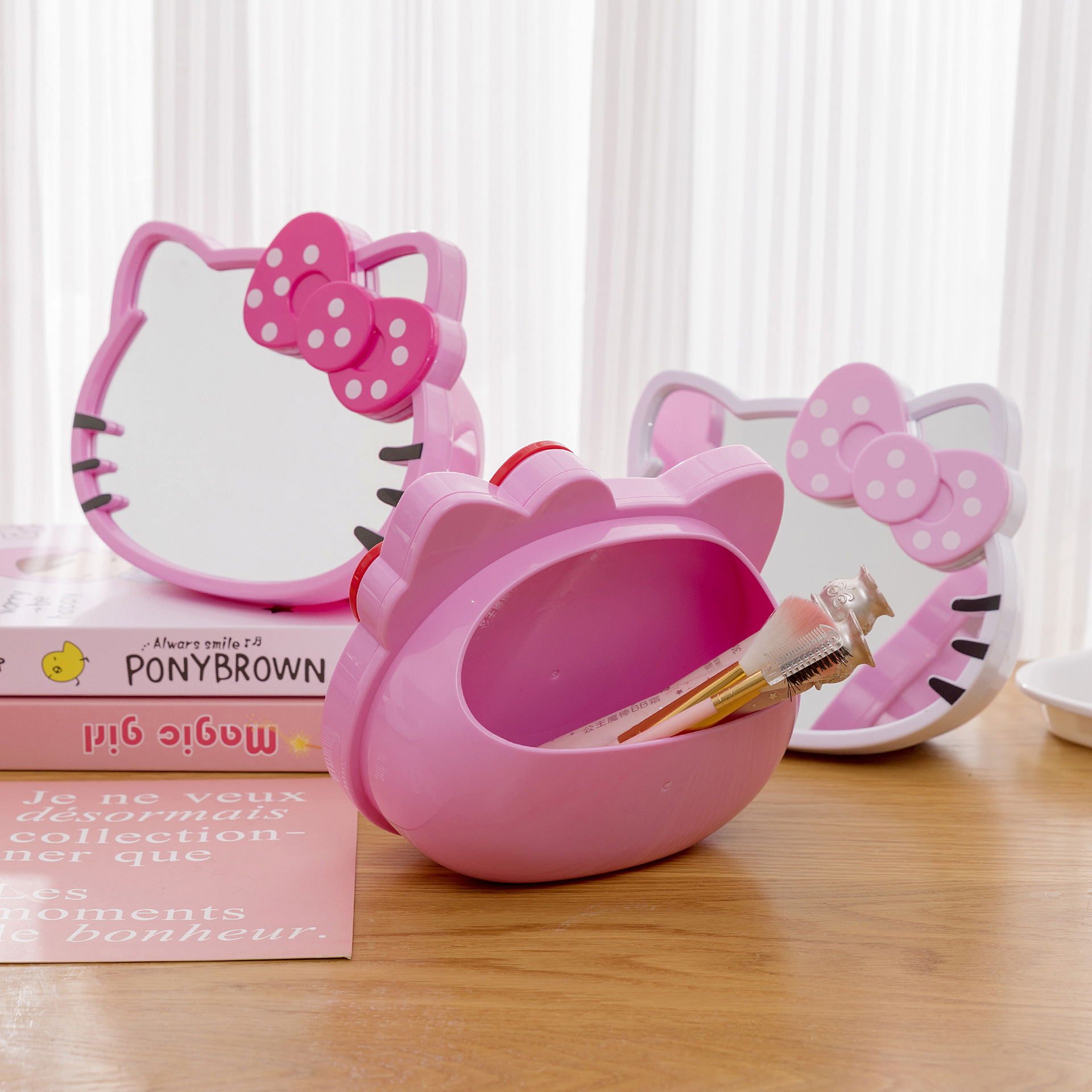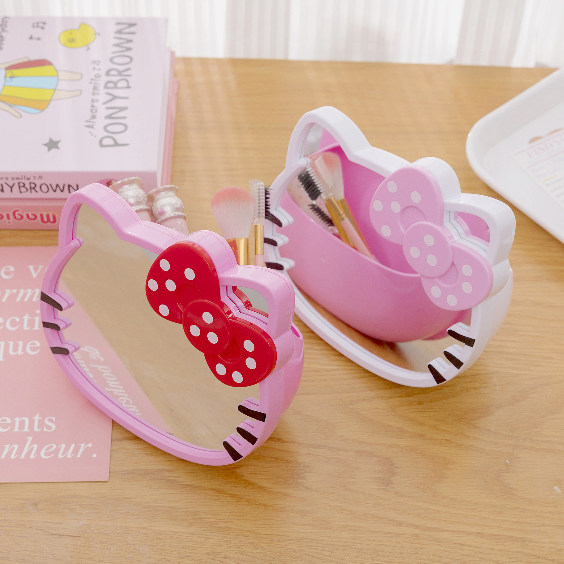 新款卡通kitty猫台镜桌面收纳化妆镜可爱蝴蝶结凯蒂猫镜子可定制