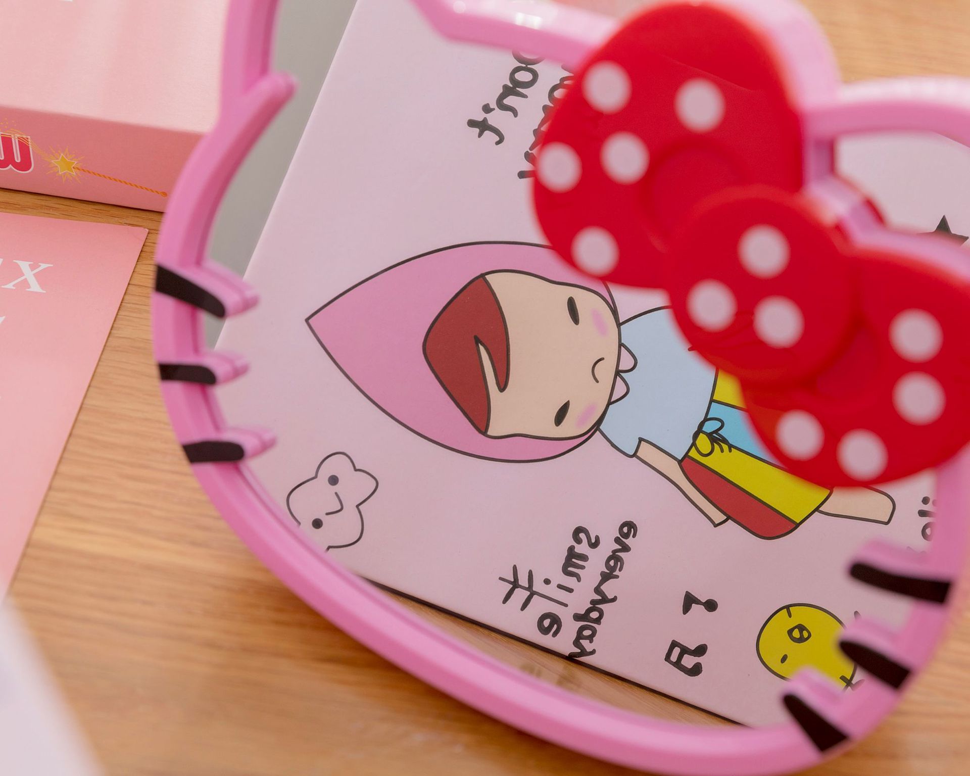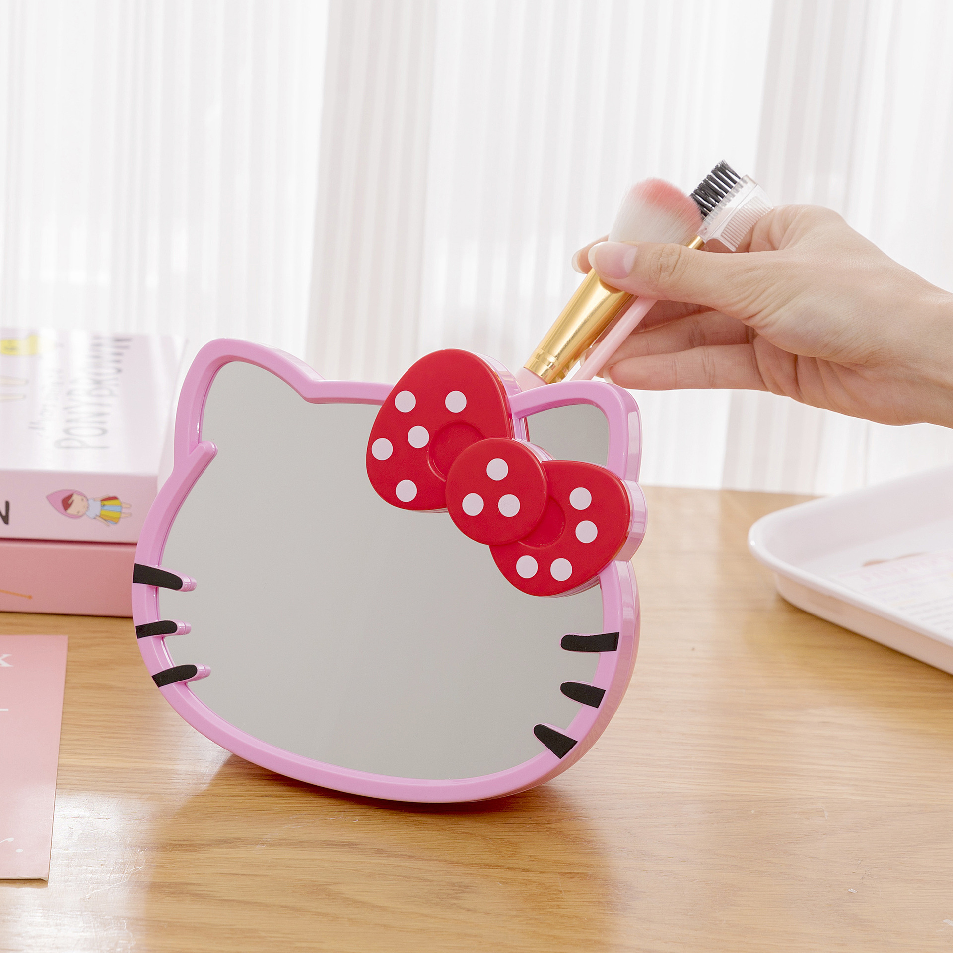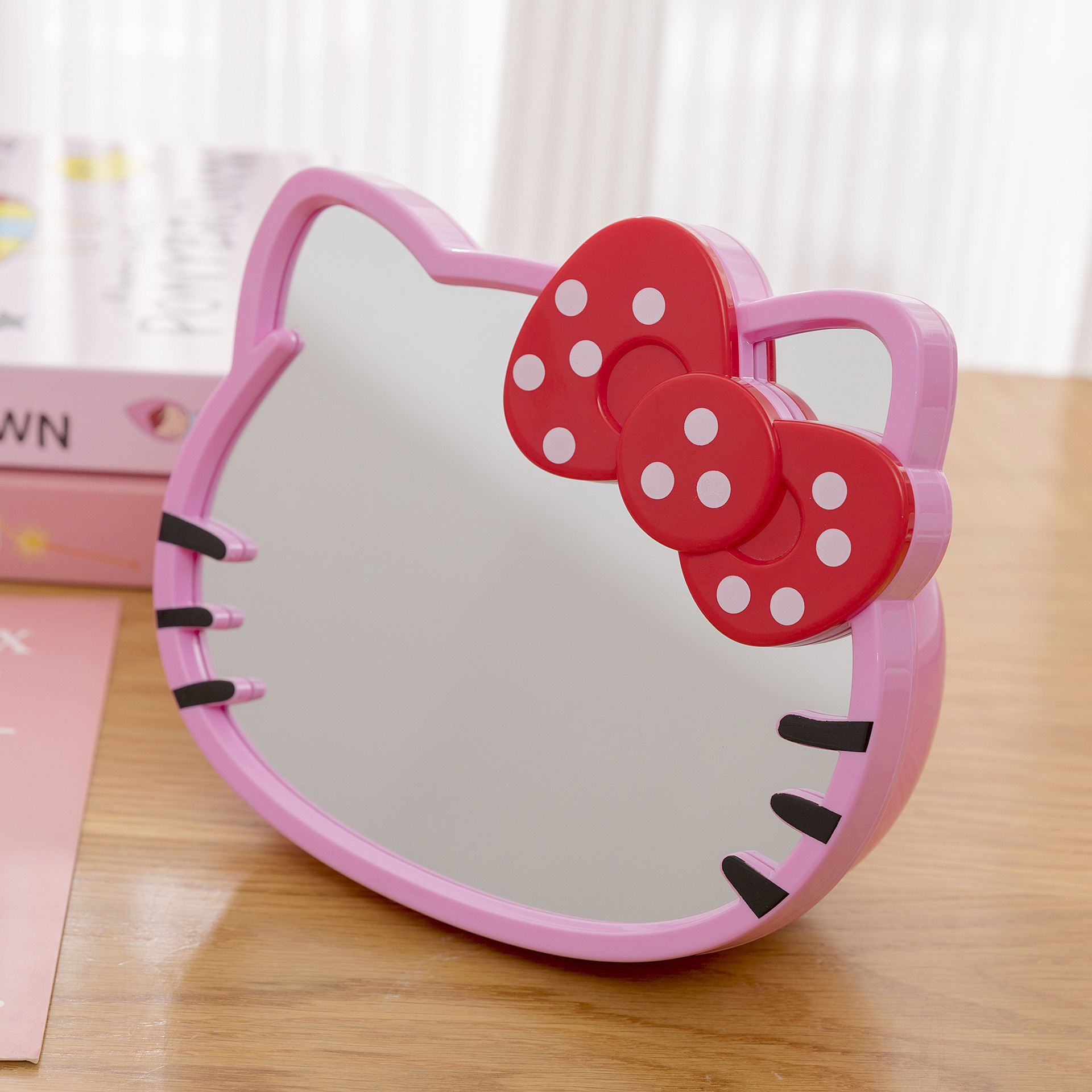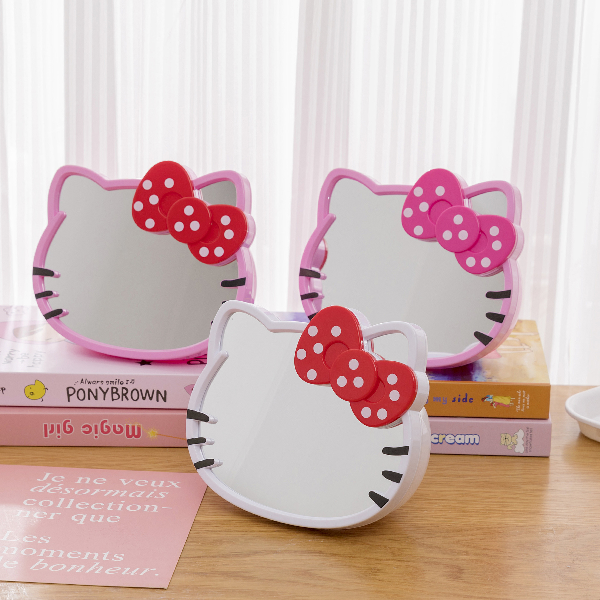新款卡通kitty猫台镜桌面收纳化妆镜可爱蝴蝶结凯蒂猫镜子可定制