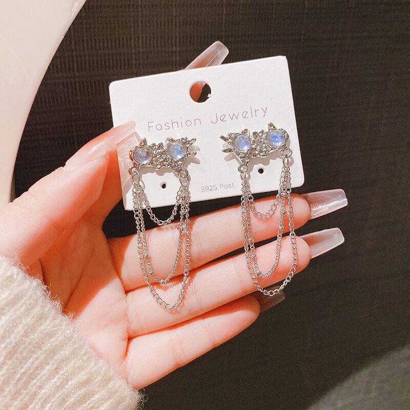 S925银针韩国长款ins潮耳环 流苏网红耳饰复古女个性气质耳坠批发