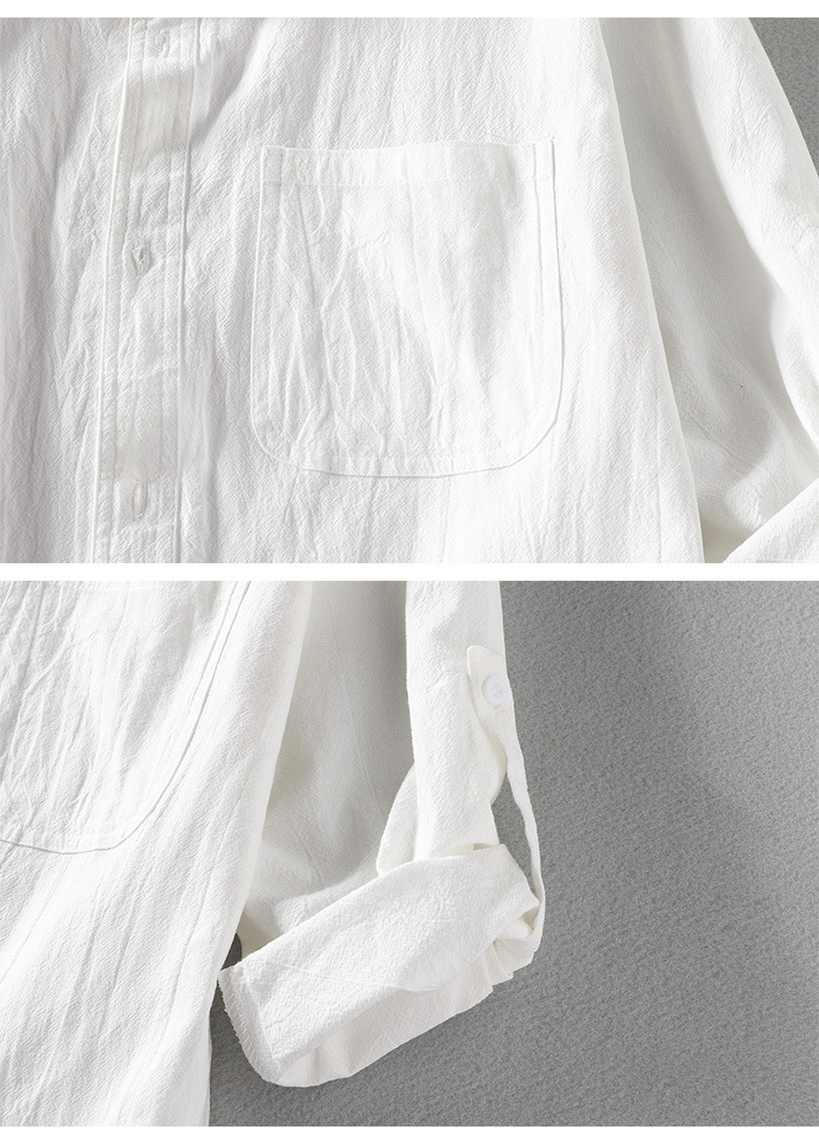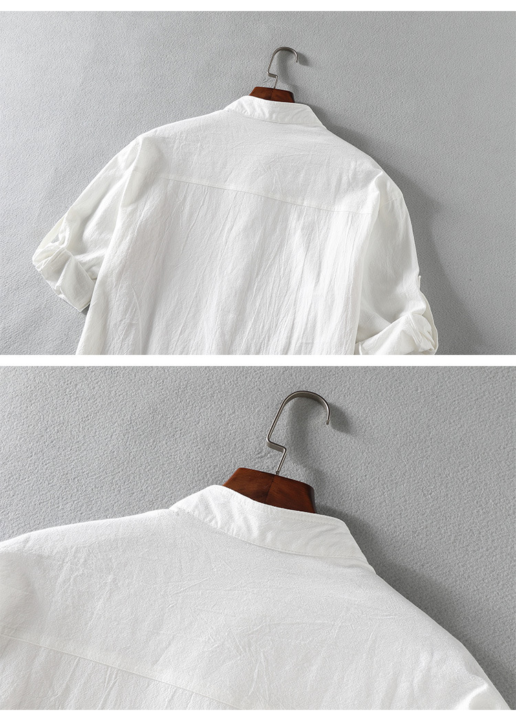 2024夏季新款男士亚麻立领五分中袖衬衫潮男棉麻宽松大码休闲衬衣