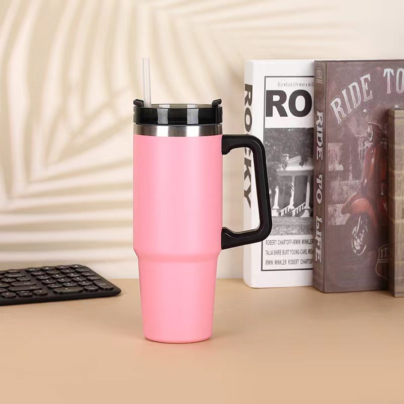 亚马逊爆款40oz大容量带手柄汽车杯304不锈钢冰霸杯吸管保温杯