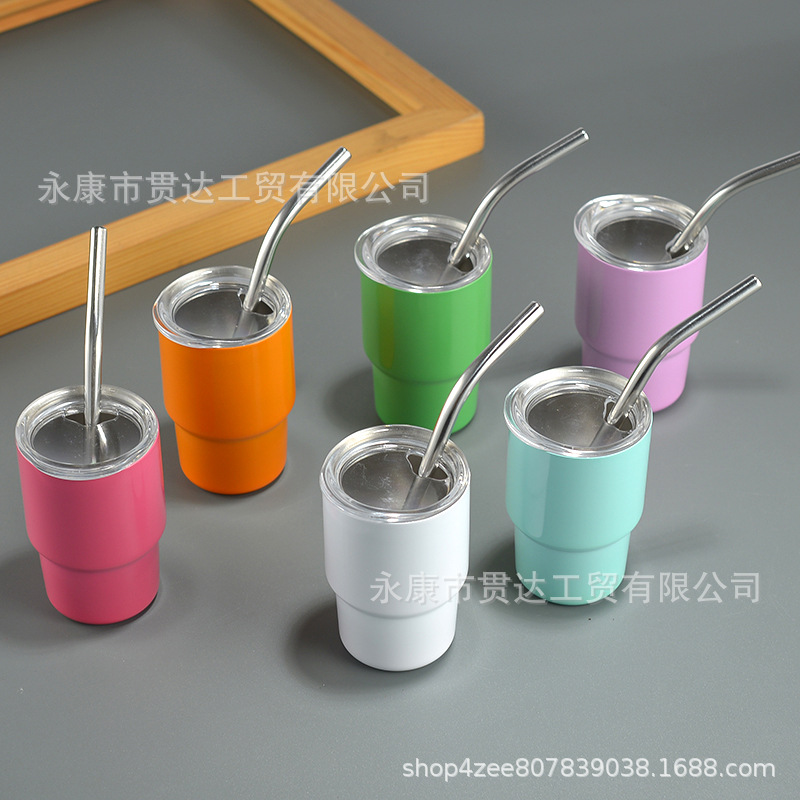 跨境2-3oz小酒杯304不锈钢汽车杯双层不锈钢热升华迷你吸管杯批发