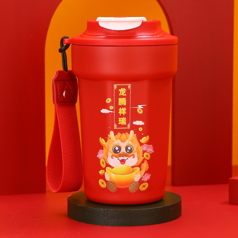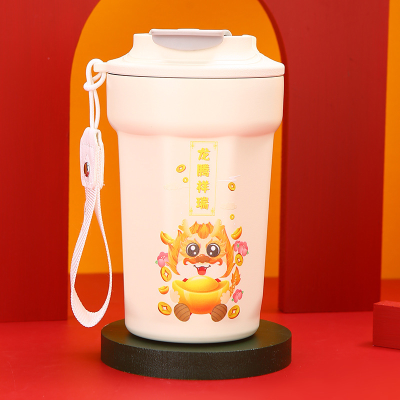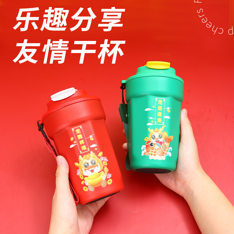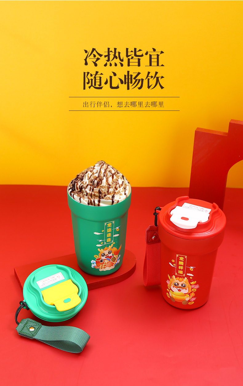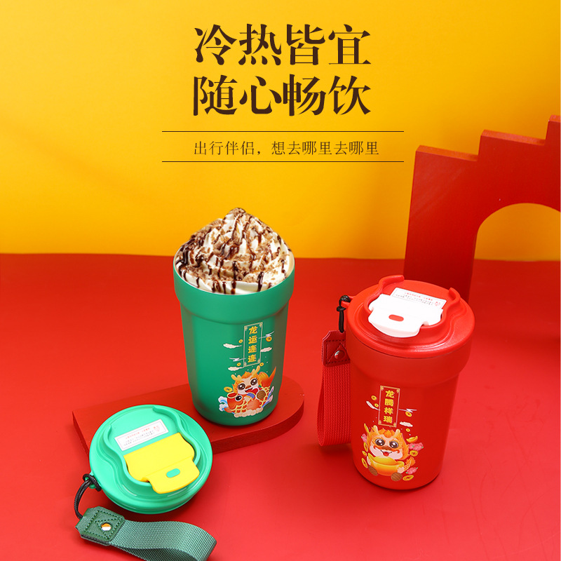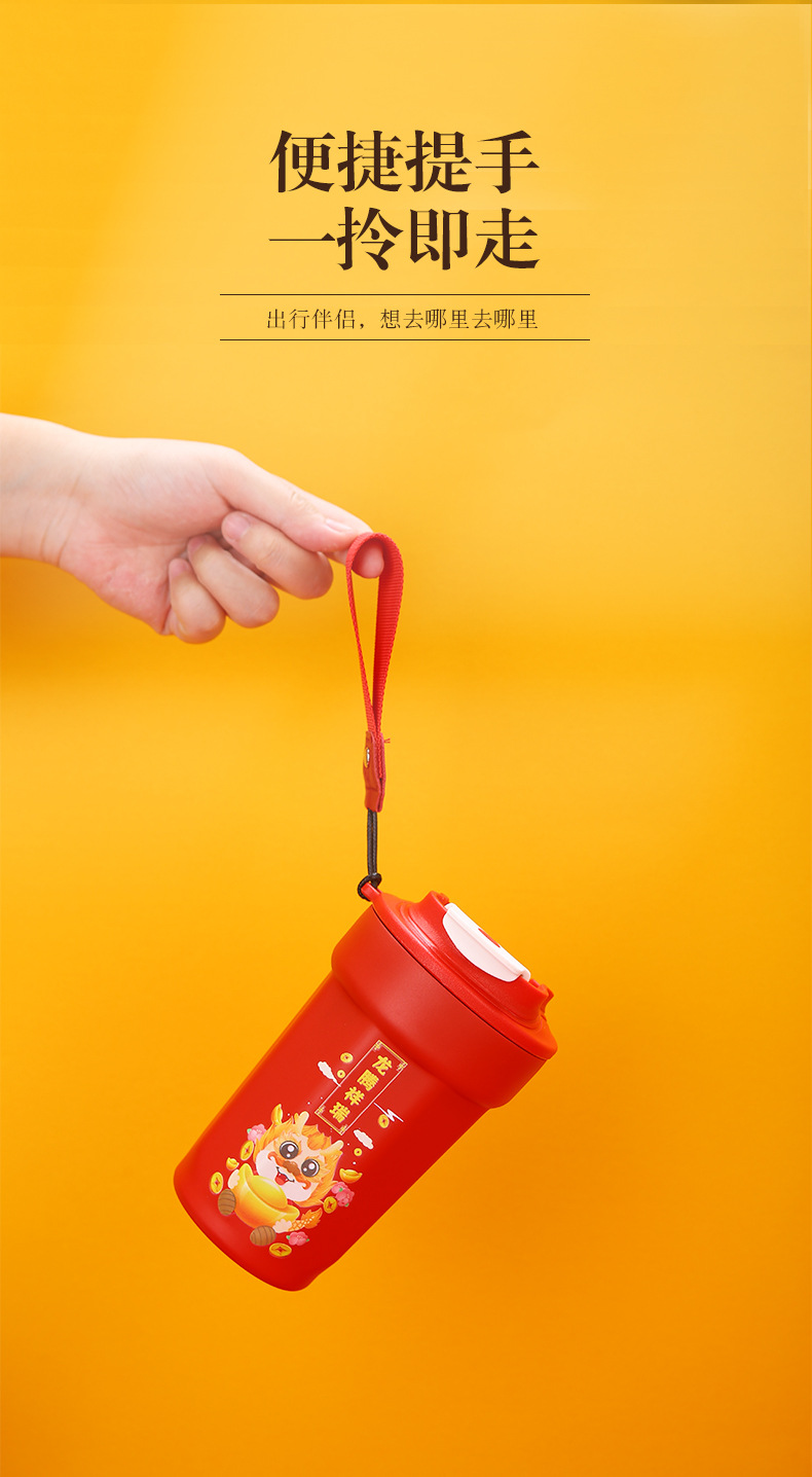 新款带提绳龙年八角咖啡杯316不锈钢车载保温杯商务办公礼品杯