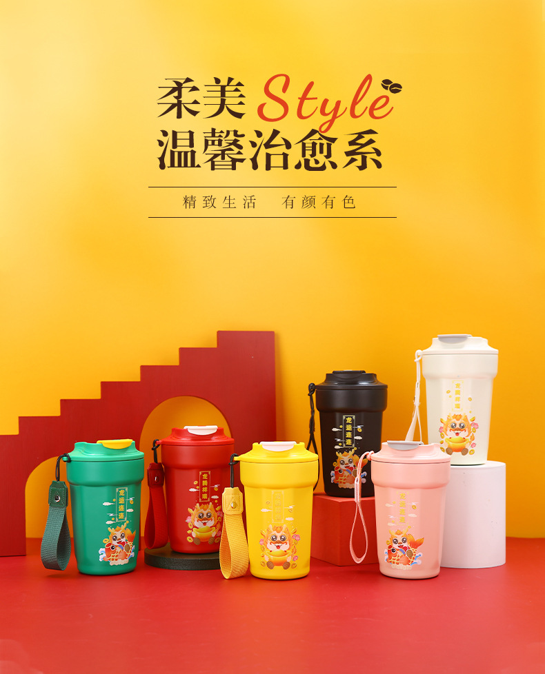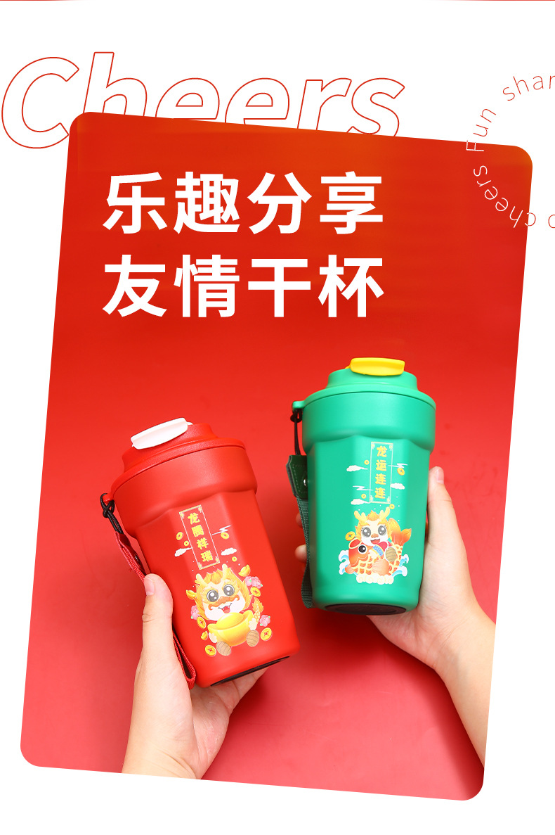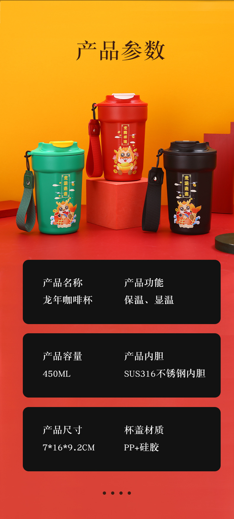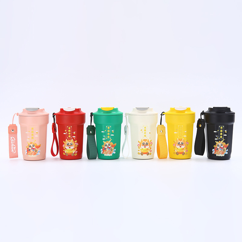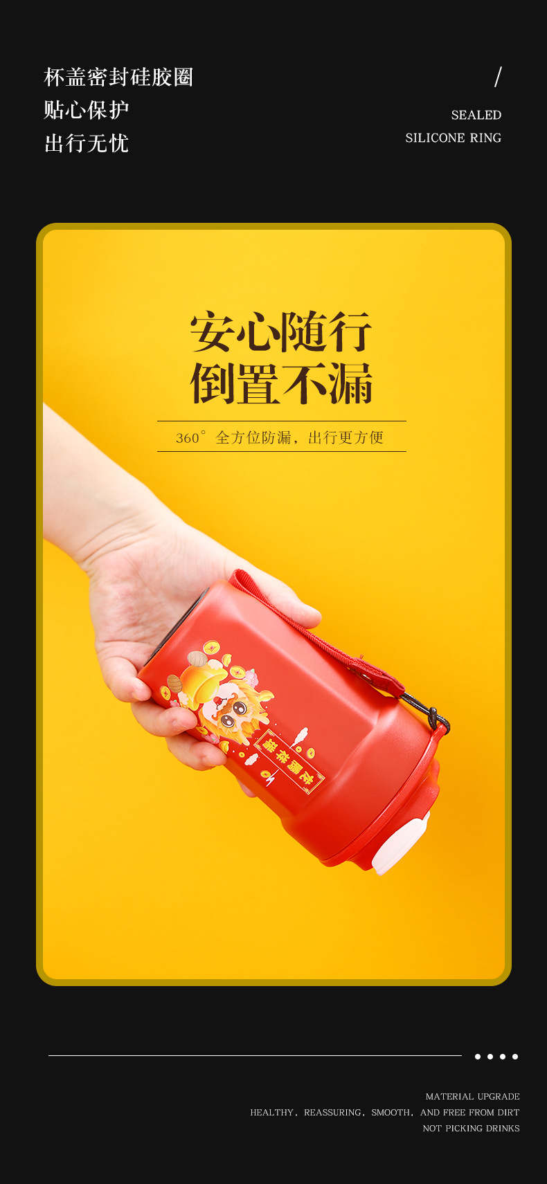 新款带提绳龙年八角咖啡杯316不锈钢车载保温杯商务办公礼品杯