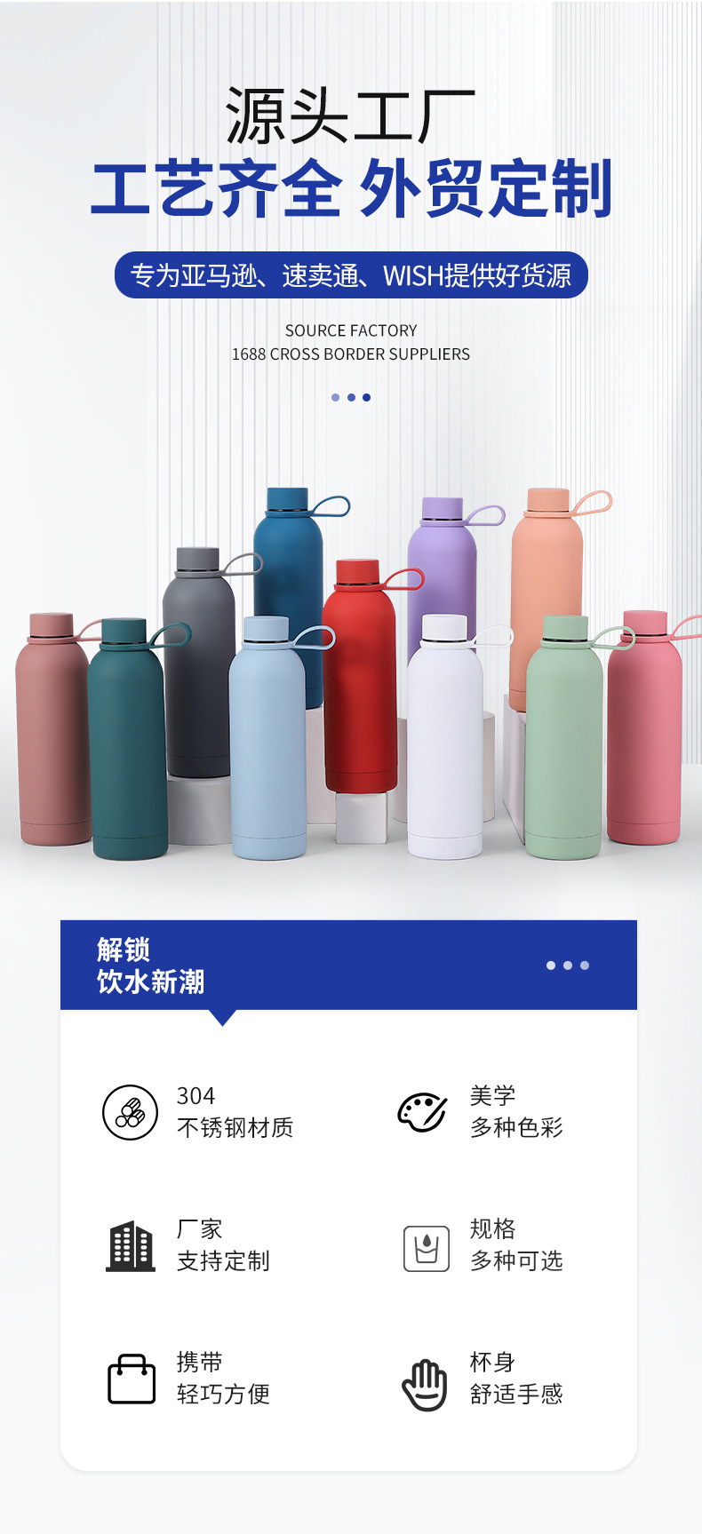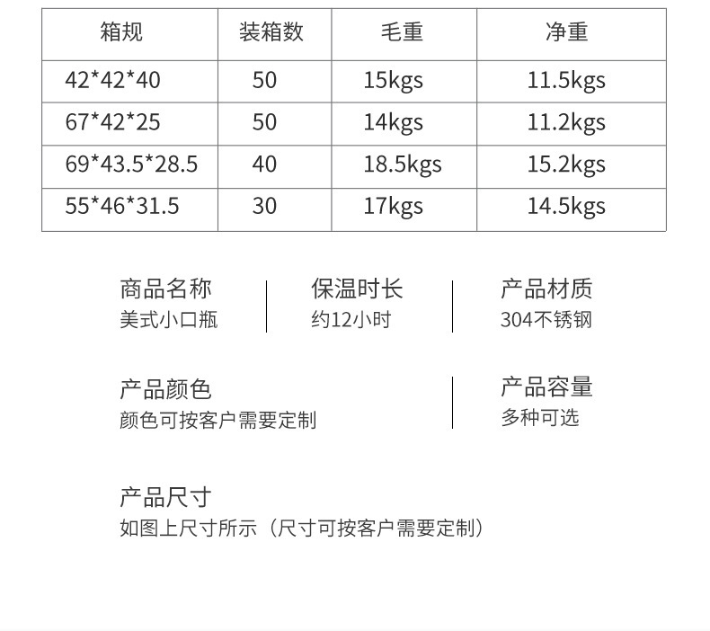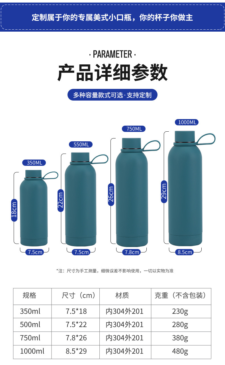 500ml跨境新款304不锈钢小口瓶 户外运动车载便携保温杯保冷水壶