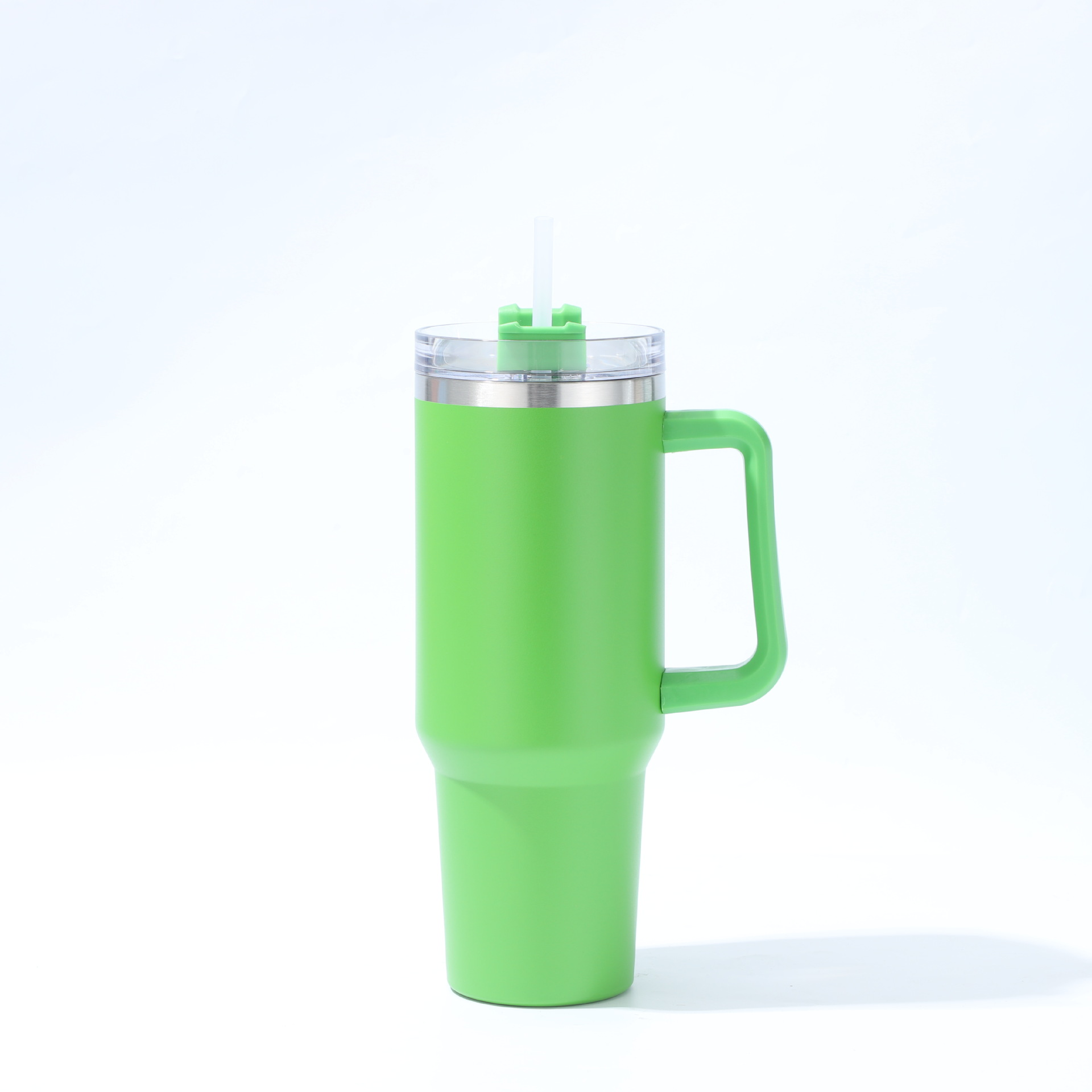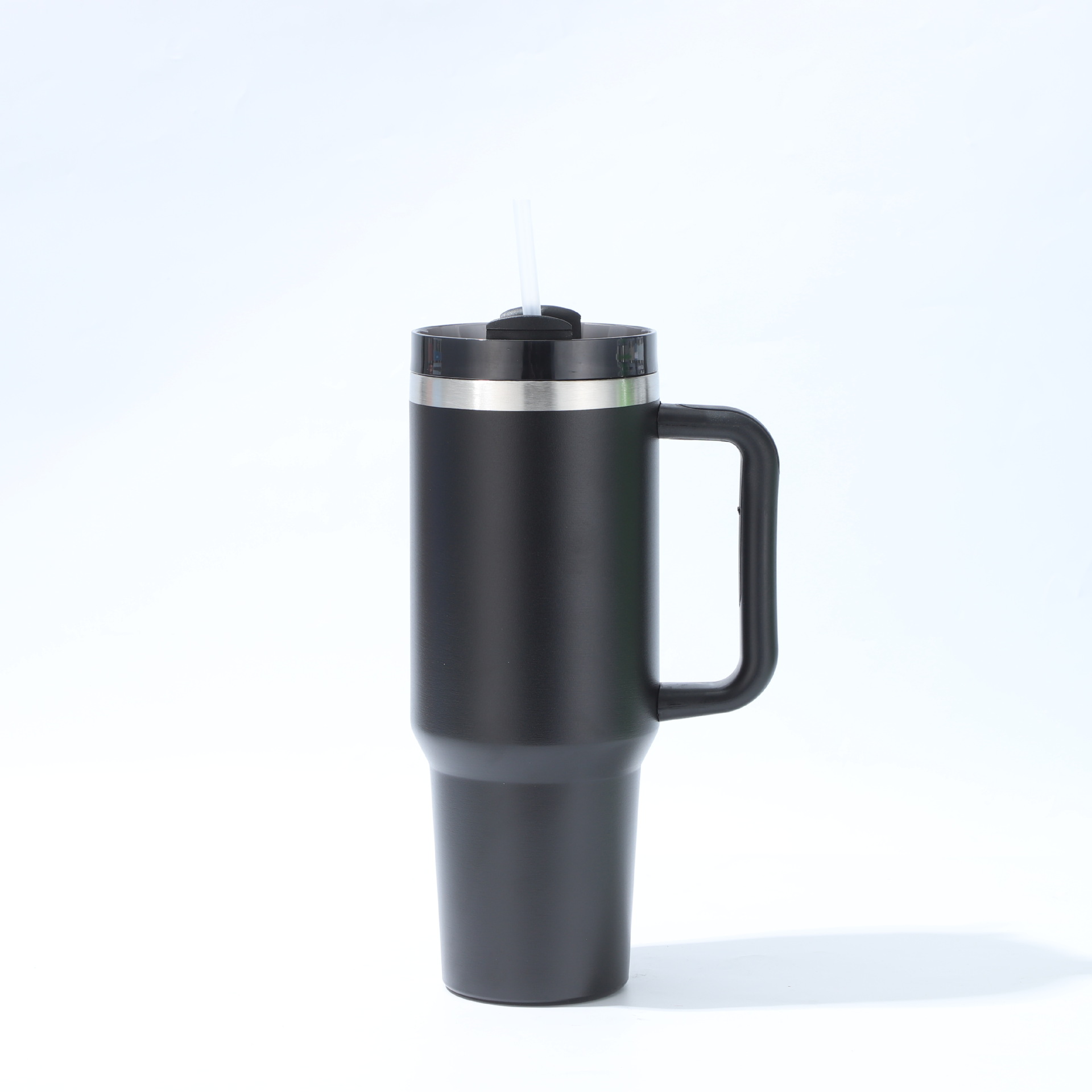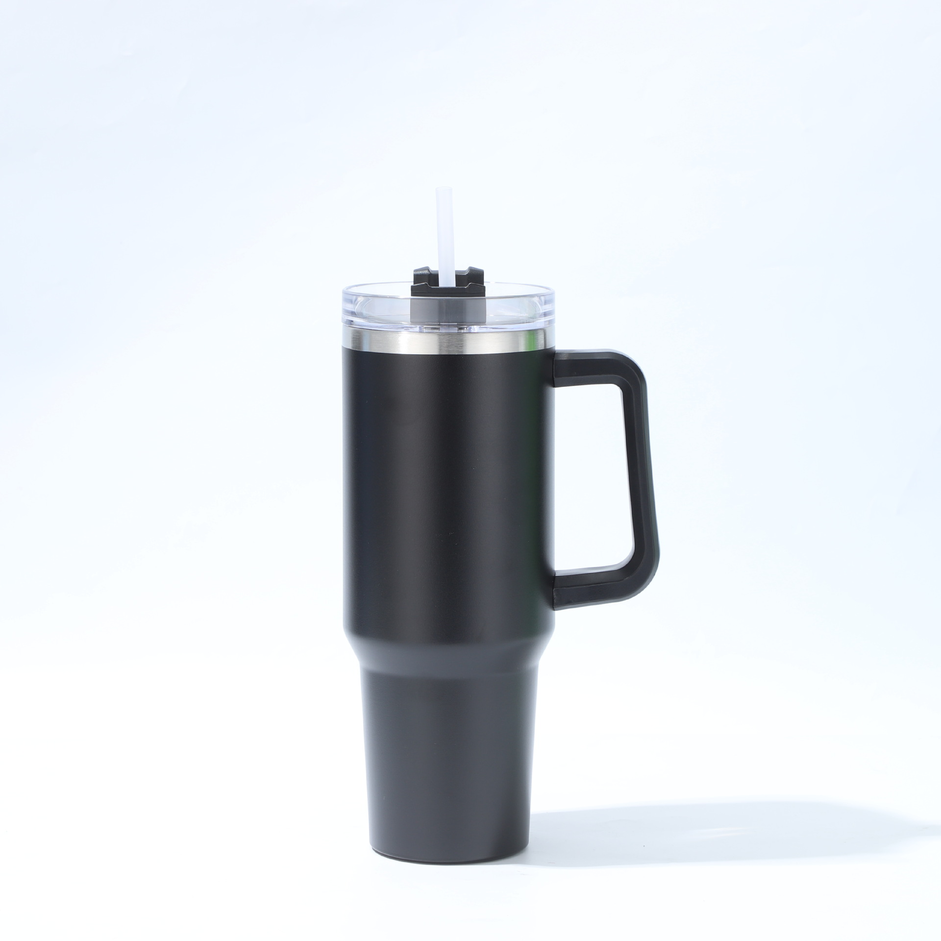 跨境304不锈钢保温杯大容量40oz汽车杯手柄冰霸杯双饮吸管车载杯