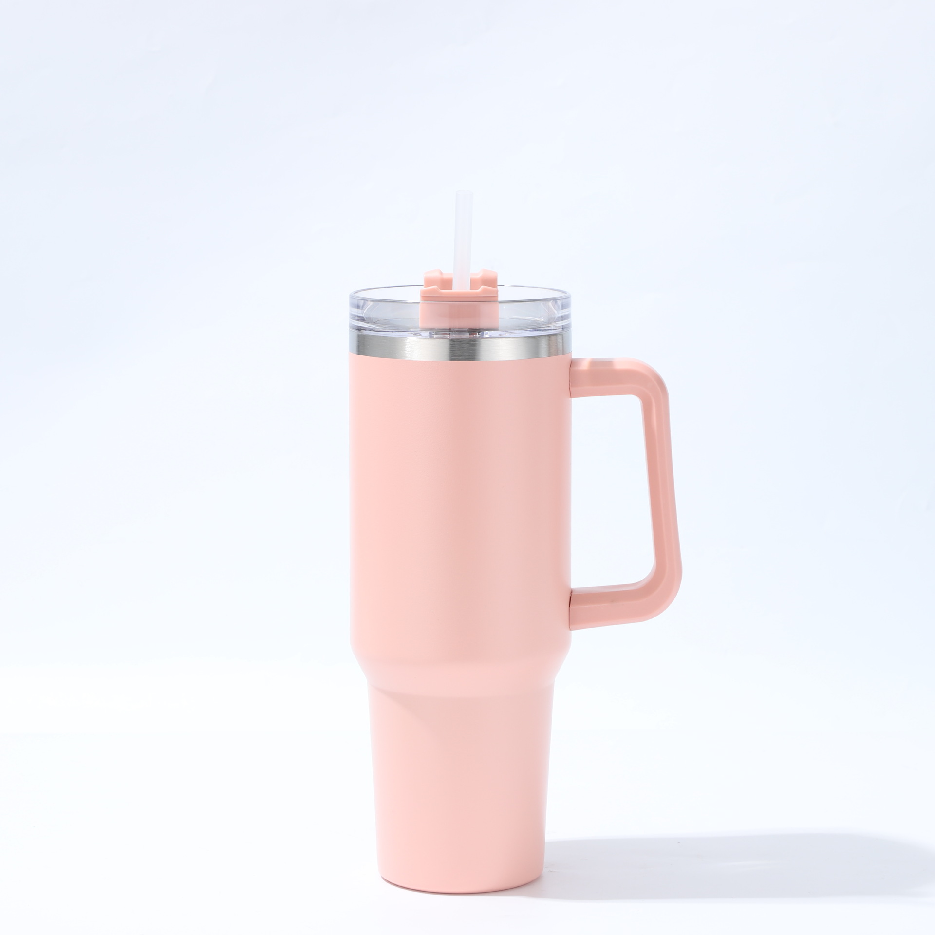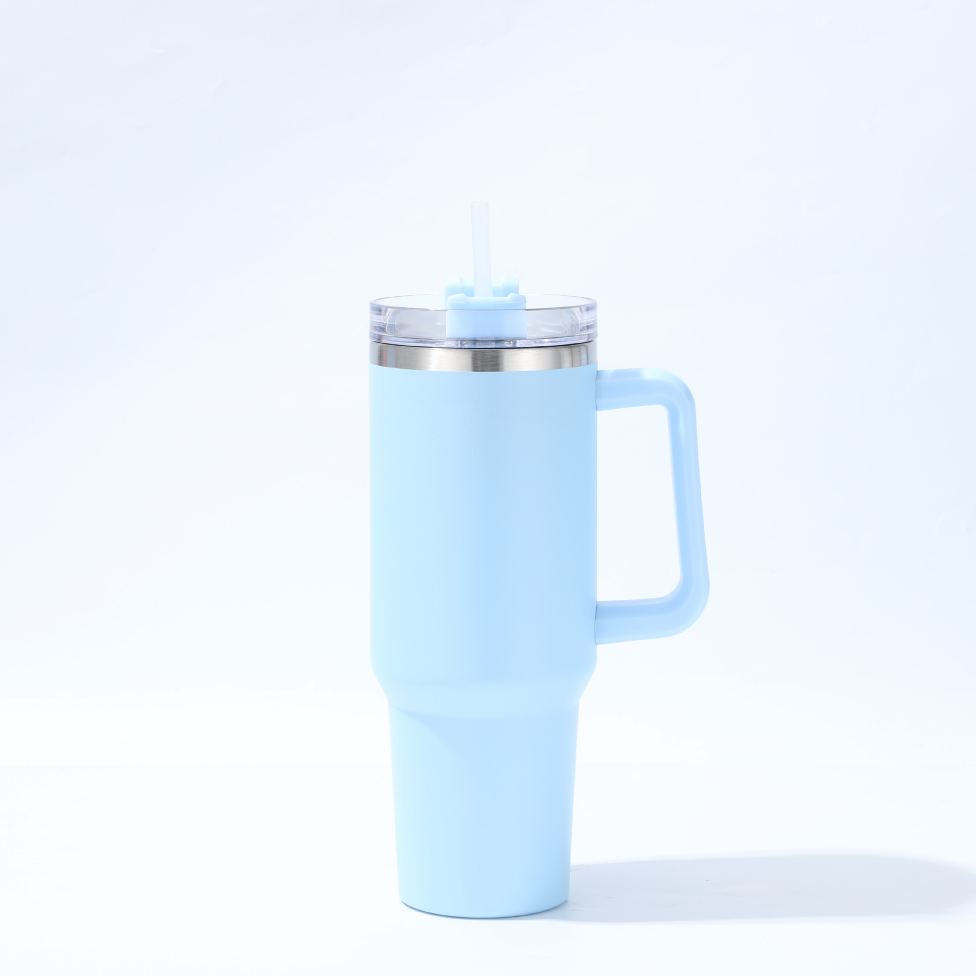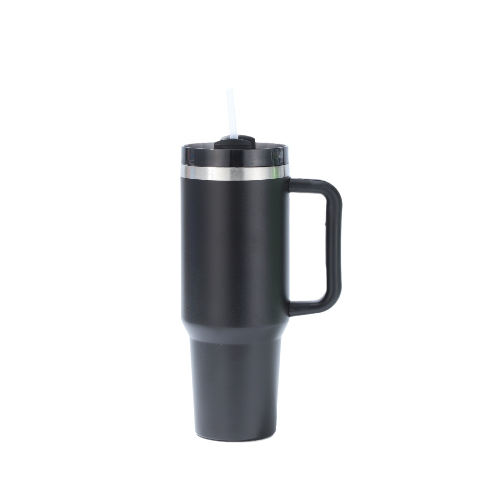 跨境304不锈钢保温杯大容量40oz汽车杯手柄冰霸杯双饮吸管车载杯