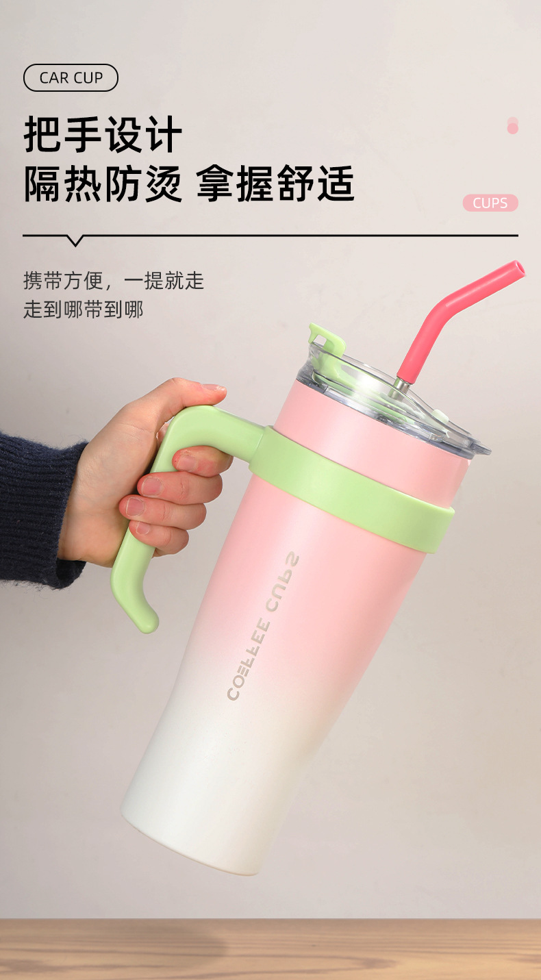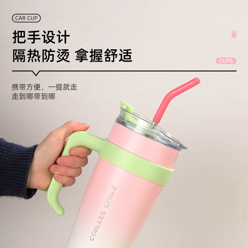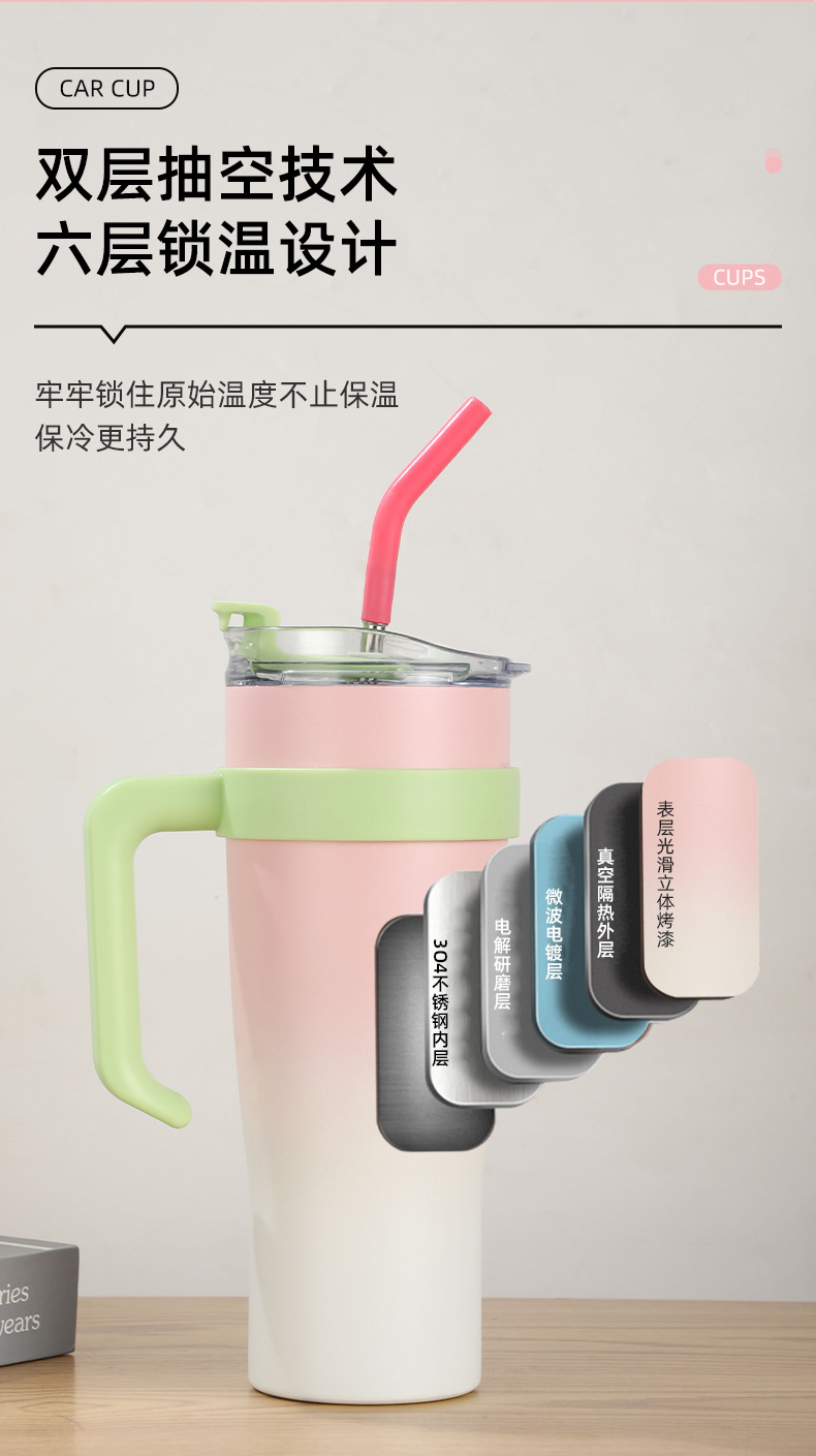 跨境专供三代不锈钢保温汽车冰霸杯40oz大容量手柄杯高颜值吸管杯