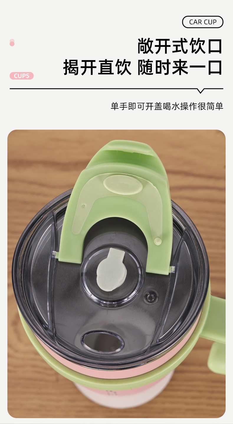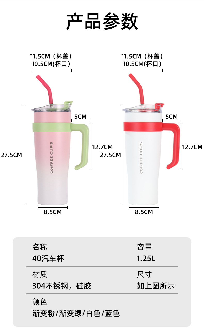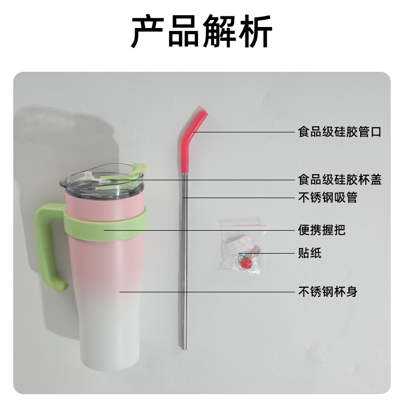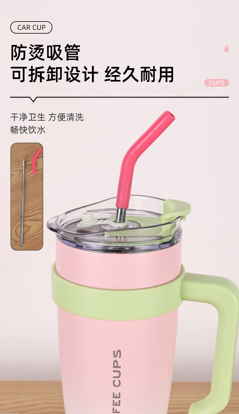 跨境专供三代不锈钢保温汽车冰霸杯40oz大容量手柄杯高颜值吸管杯