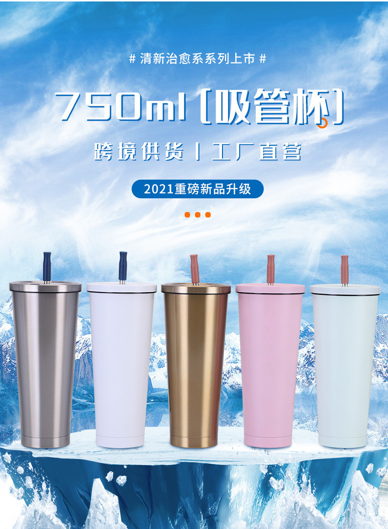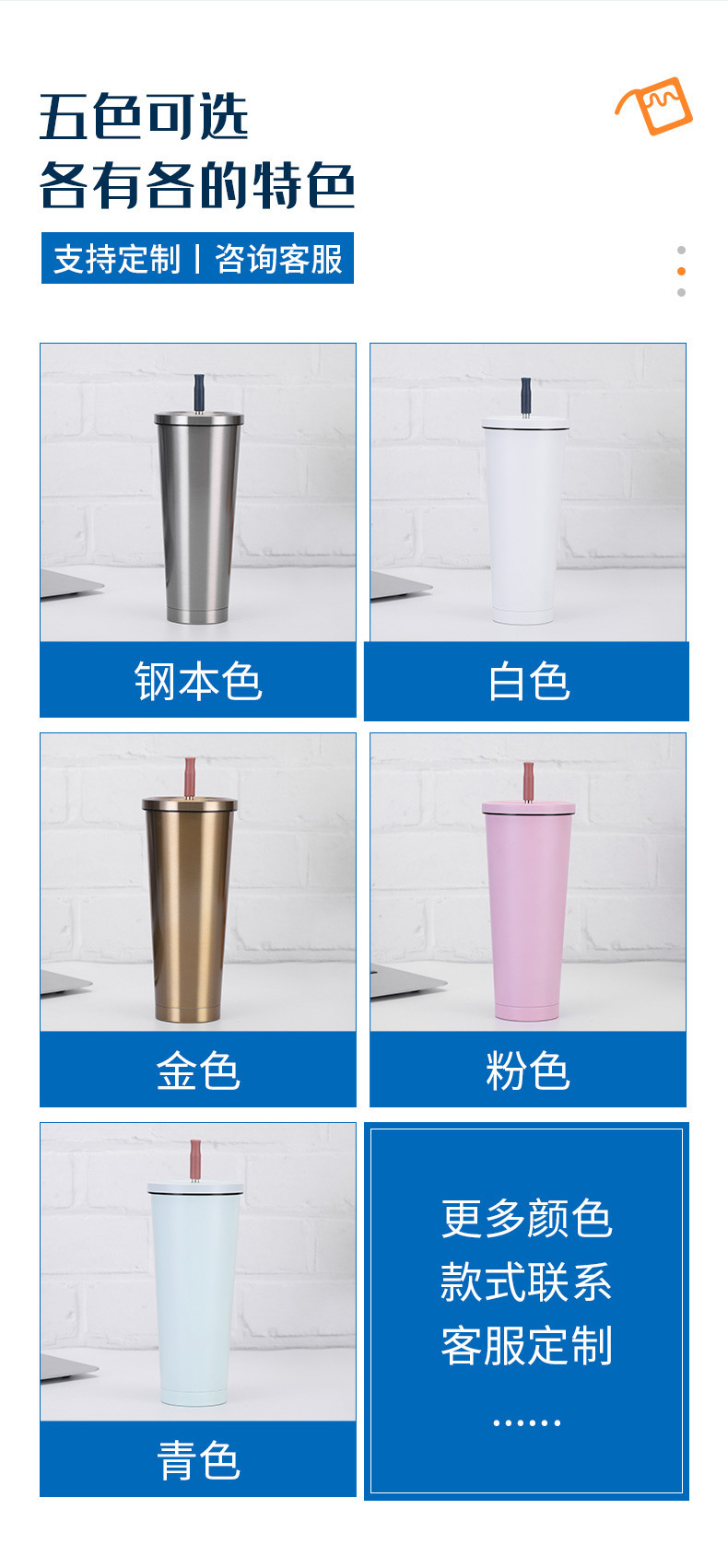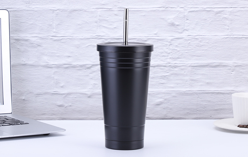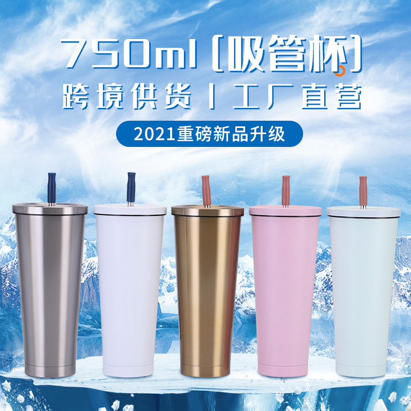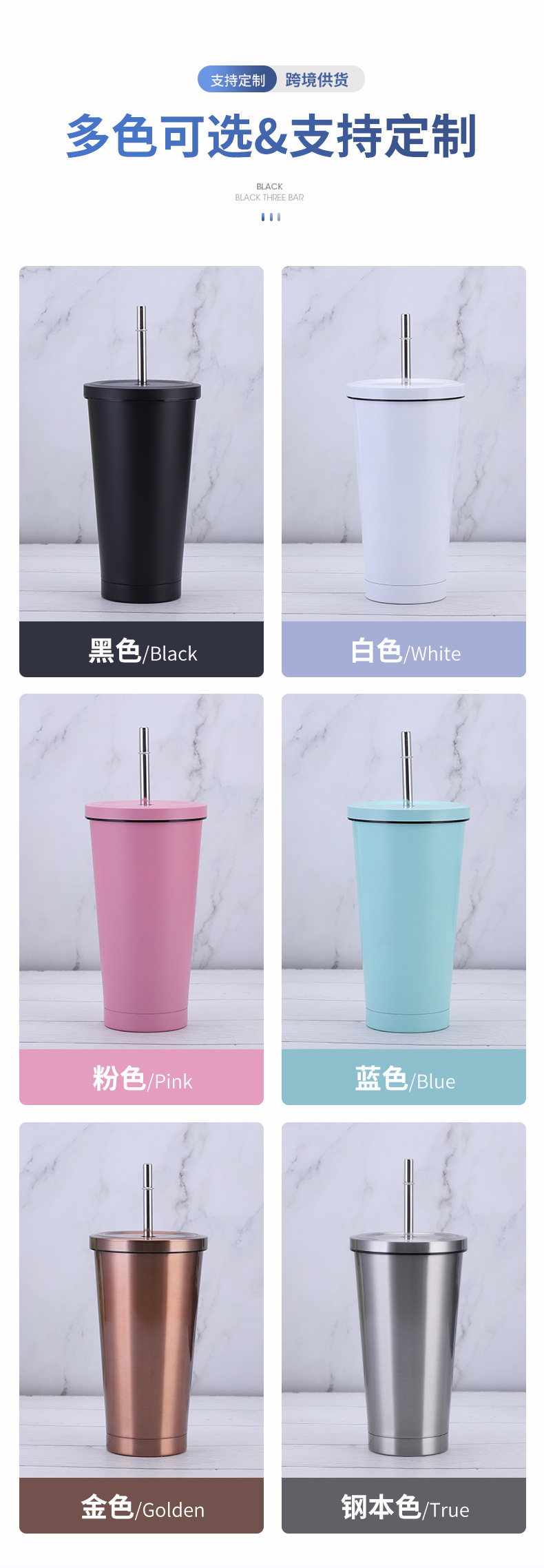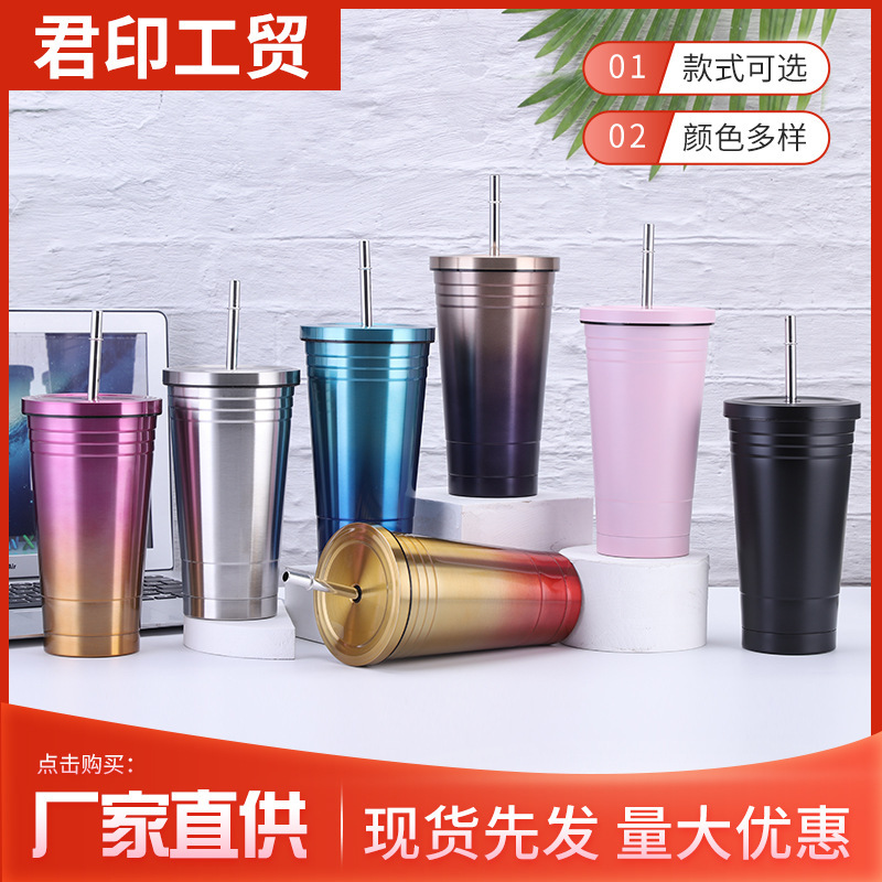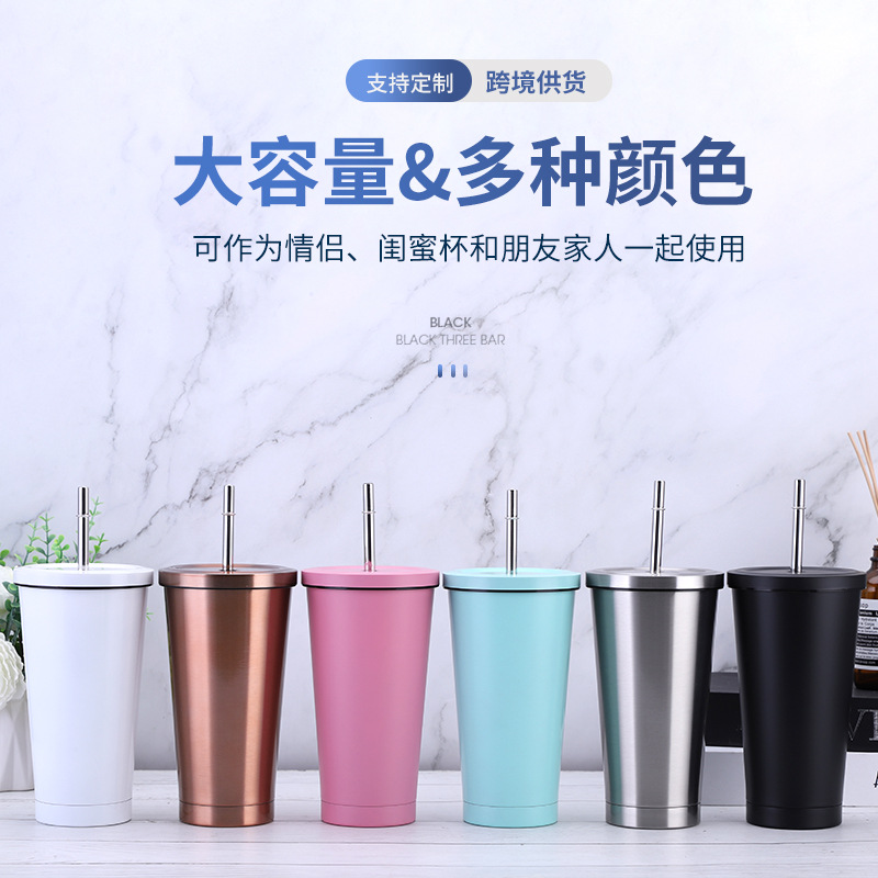跨境304不锈钢吸管杯双层便携咖啡杯户外车载保温杯大容量冰霸杯