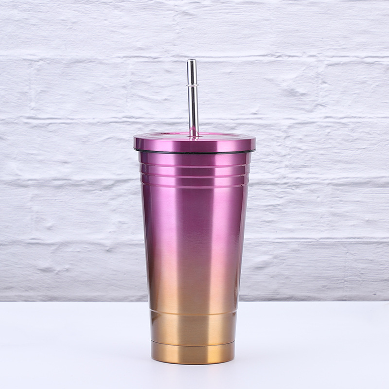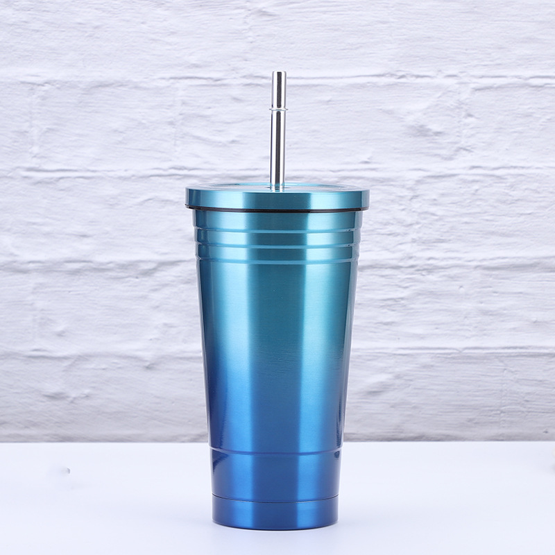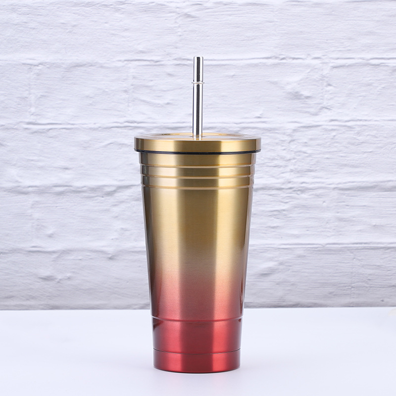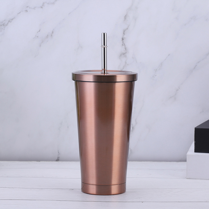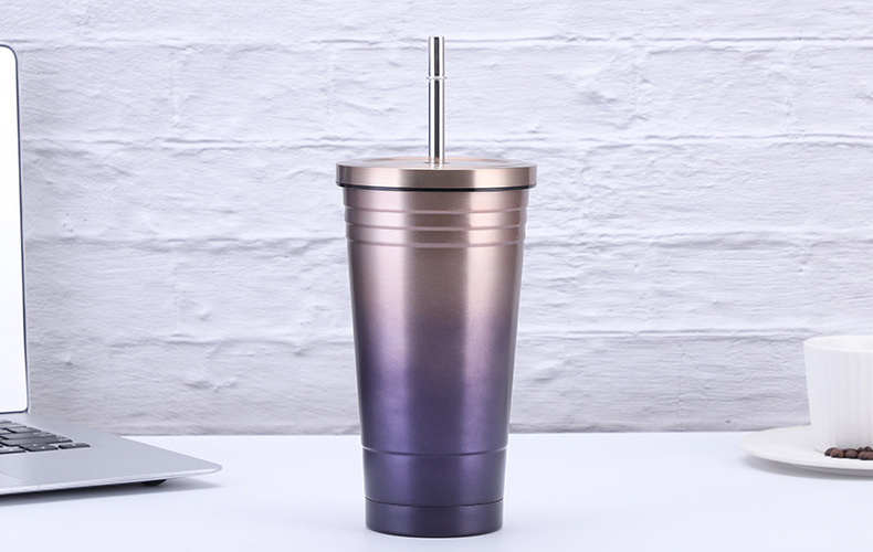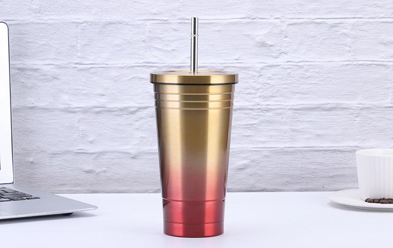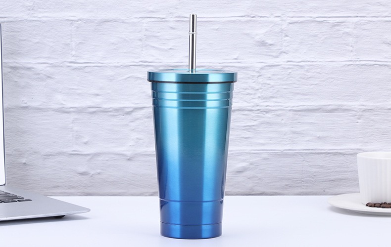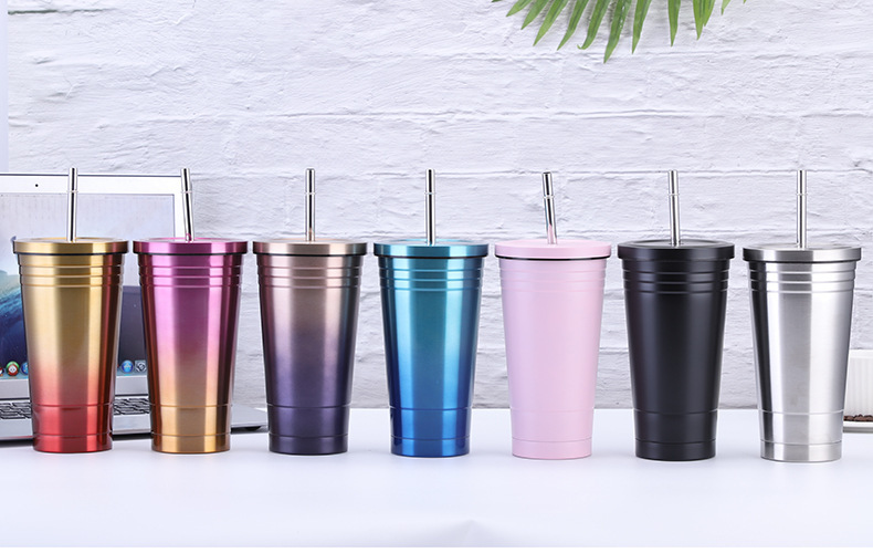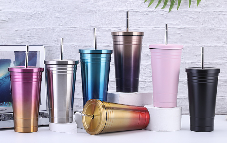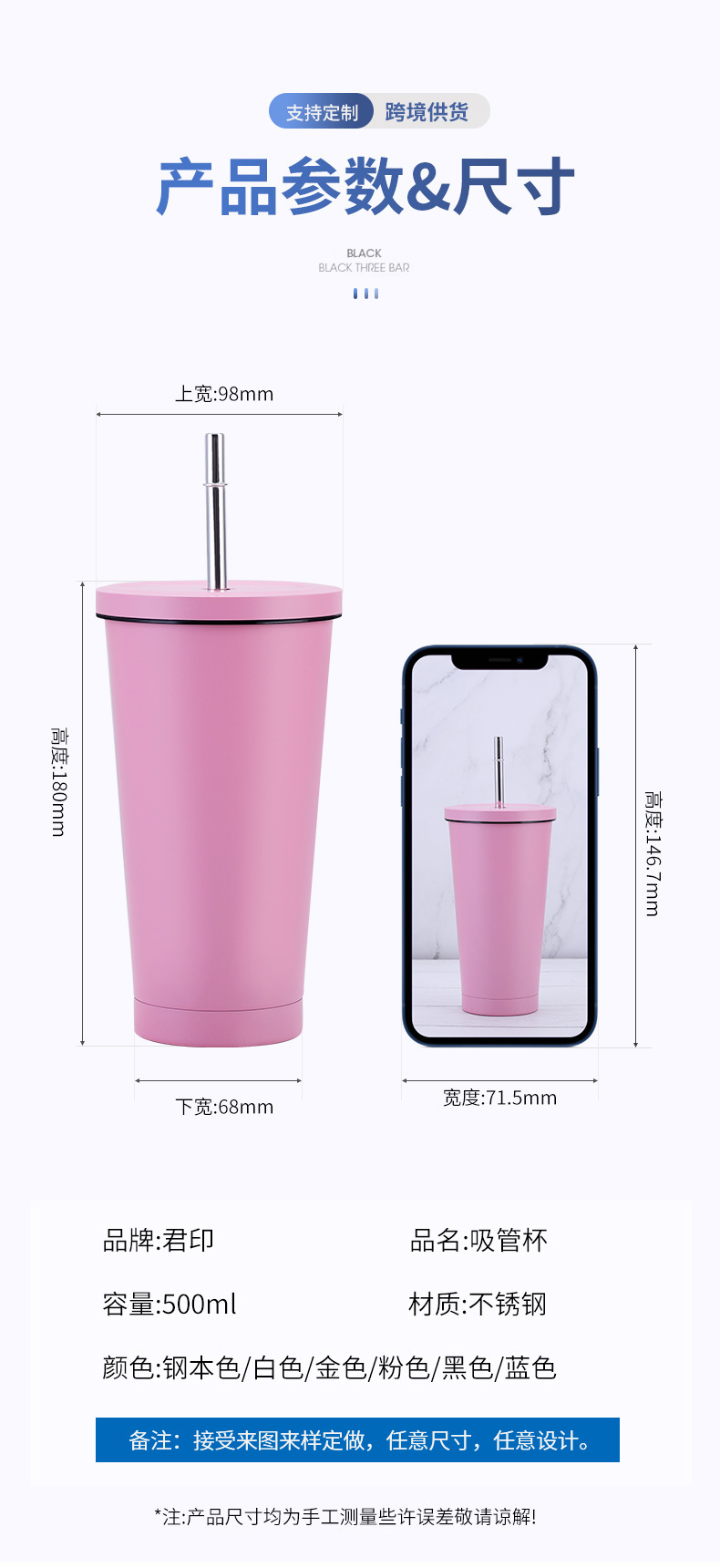 跨境304不锈钢吸管杯双层便携咖啡杯户外车载保温杯大容量冰霸杯