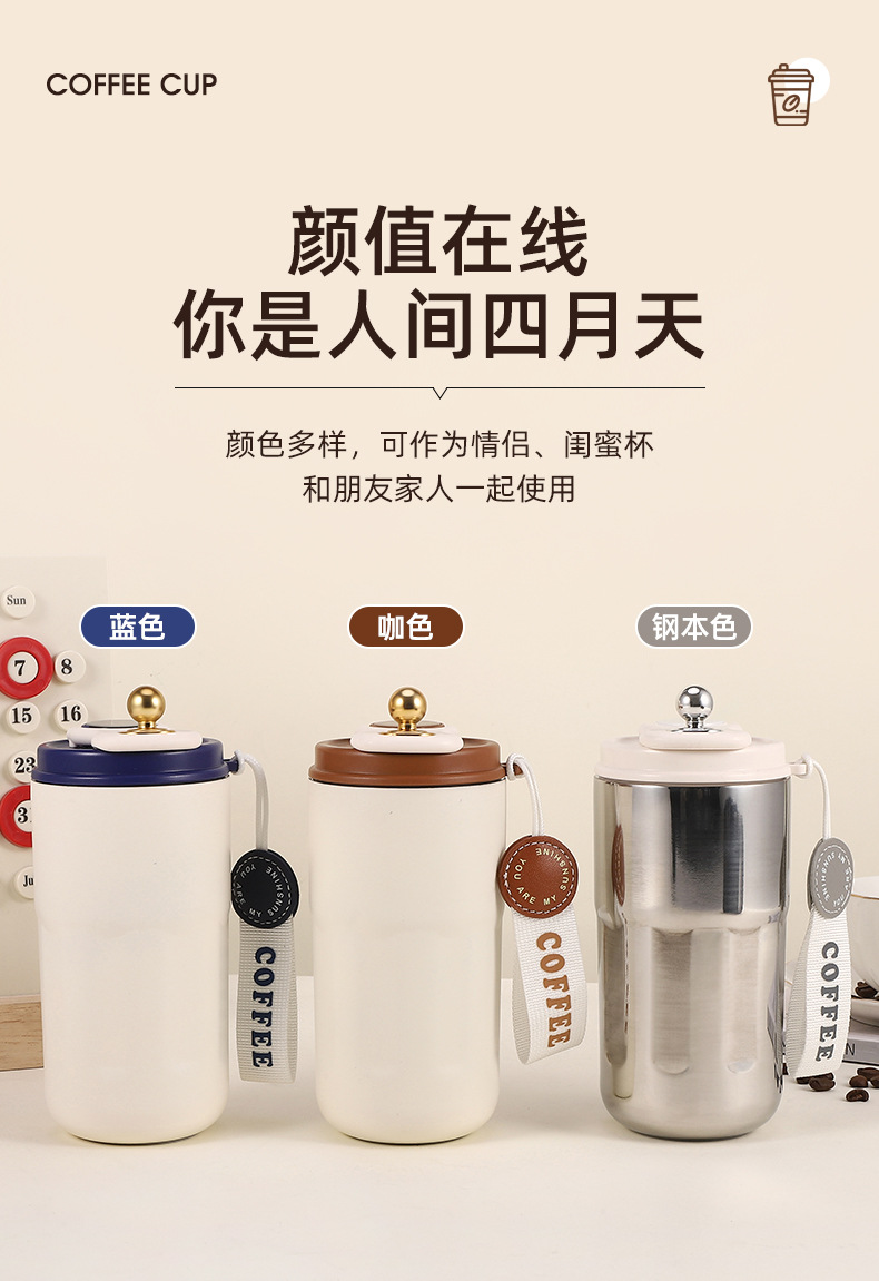 高颜值316不锈钢保温杯户外带提绳男女咖啡杯车载便携学生汽车杯
