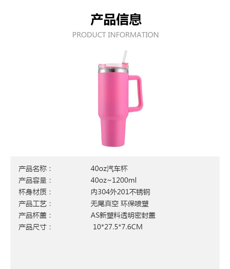 跨境便携家用304不锈钢40oz手柄汽车杯冰霸杯户外运动保温杯