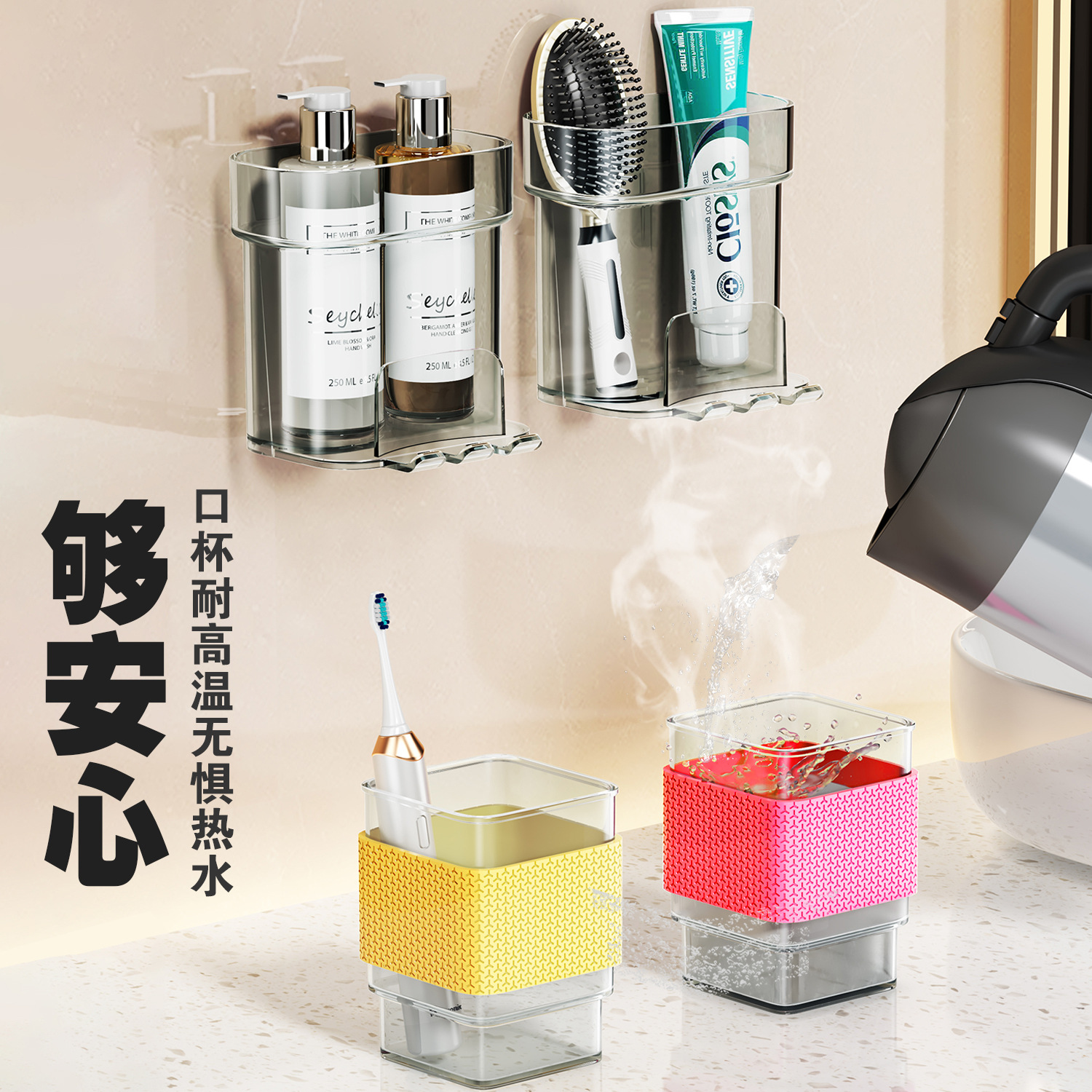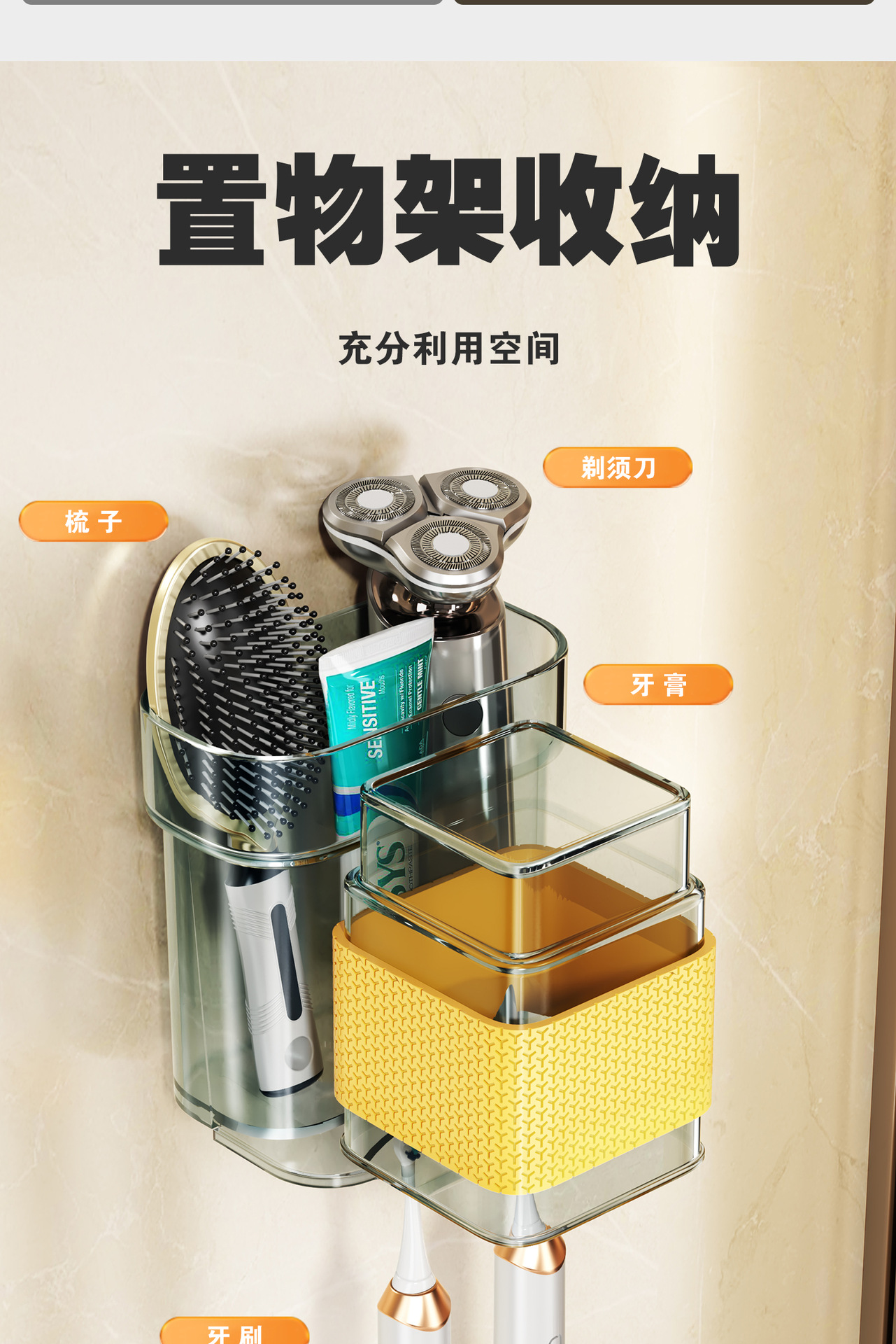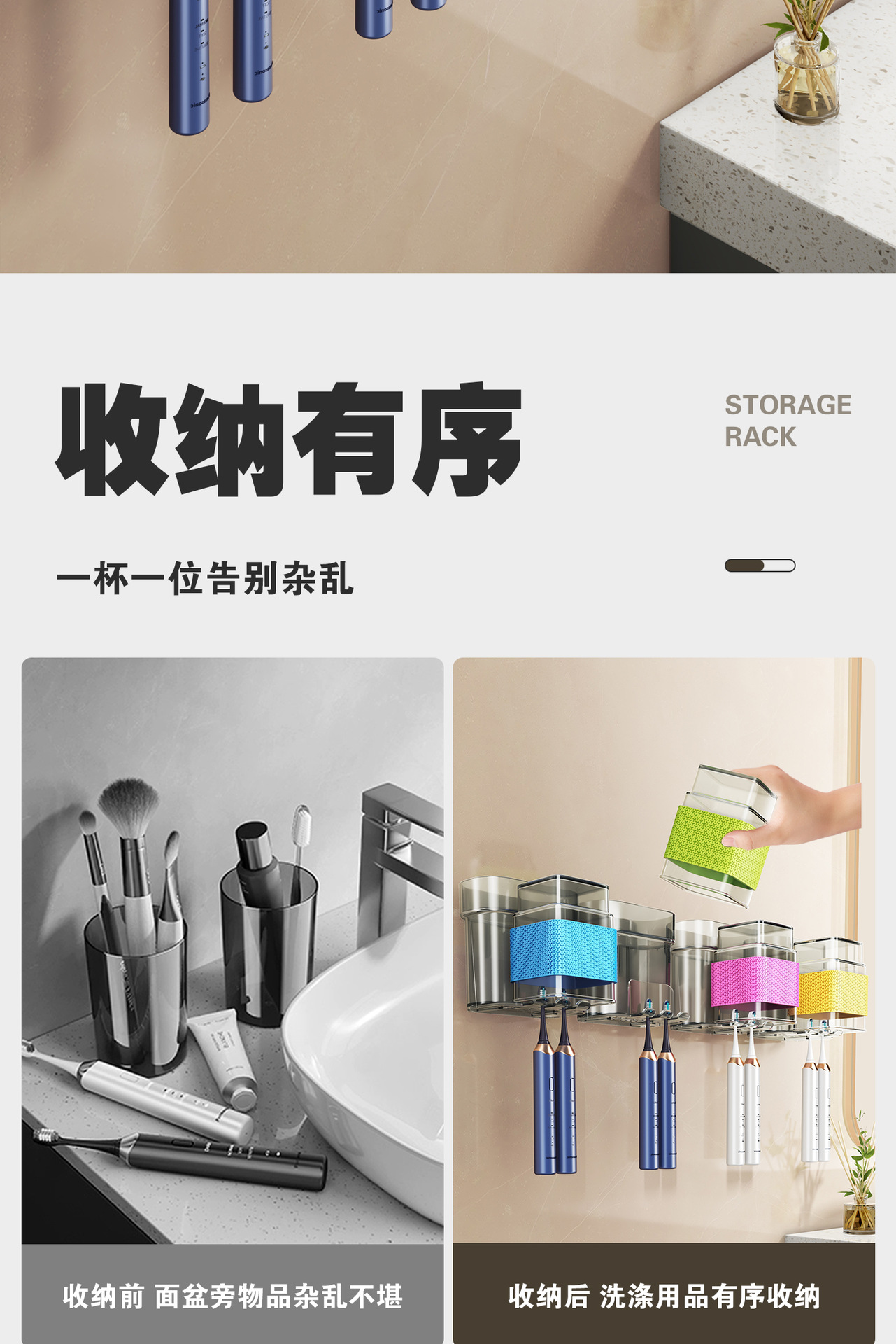 牙刷置物架免打孔轻奢卫生间漱口杯牙刷杯架壁挂式电动牙刷架子