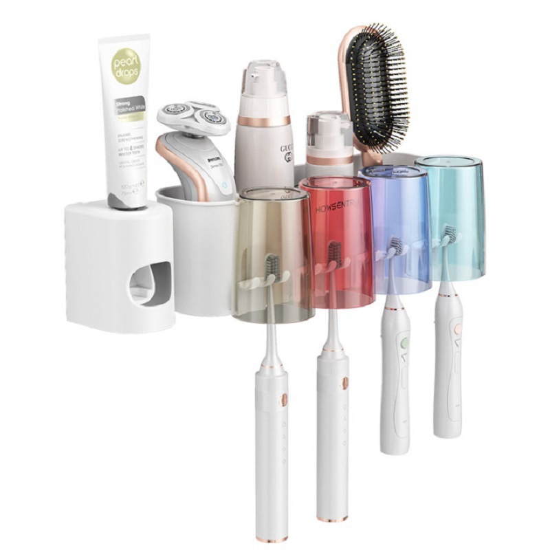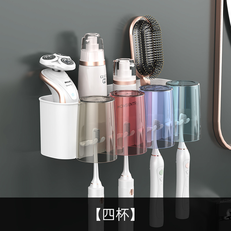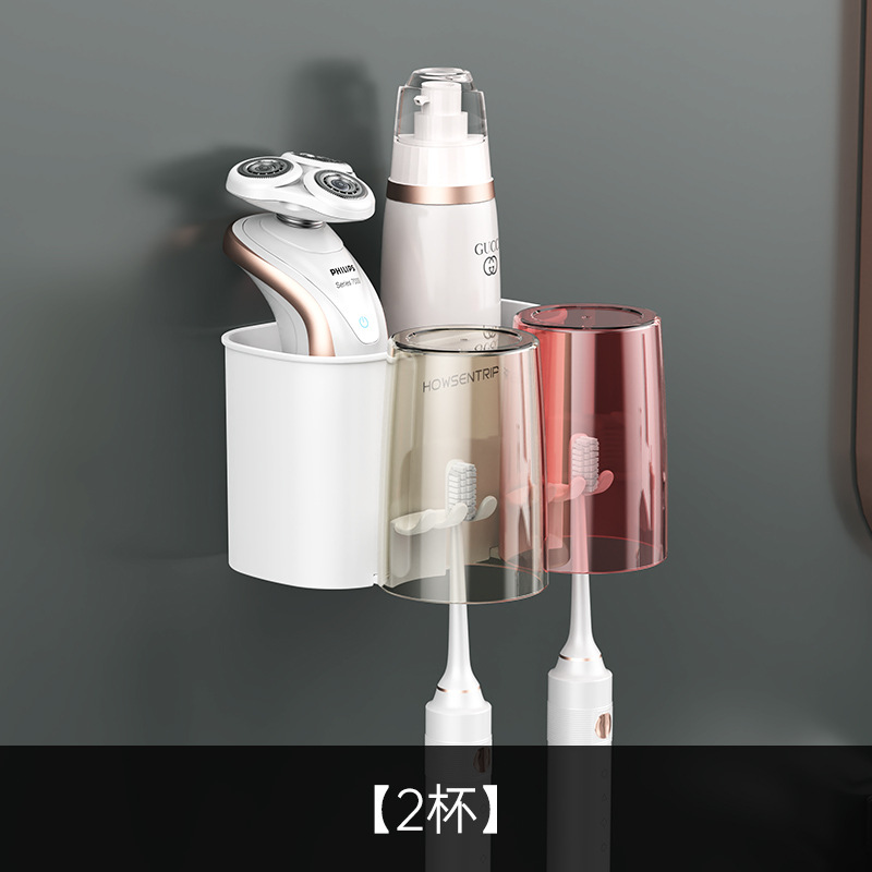 牙刷置物架免打孔牙刷杯挂墙式多功能家用卫生间套装收纳牙杯架子