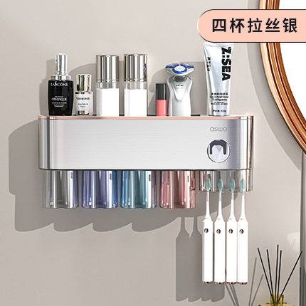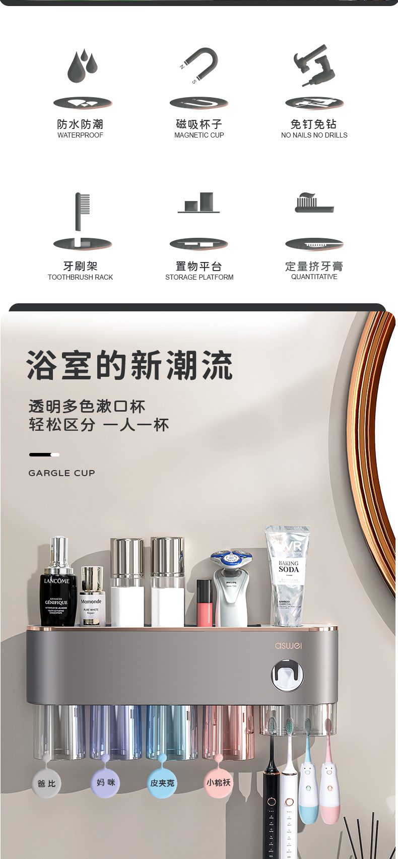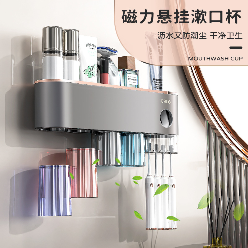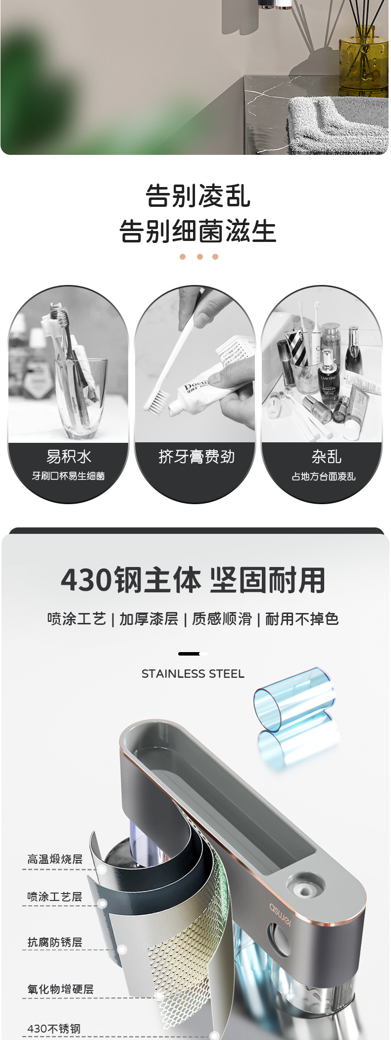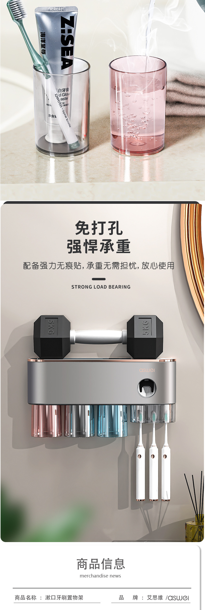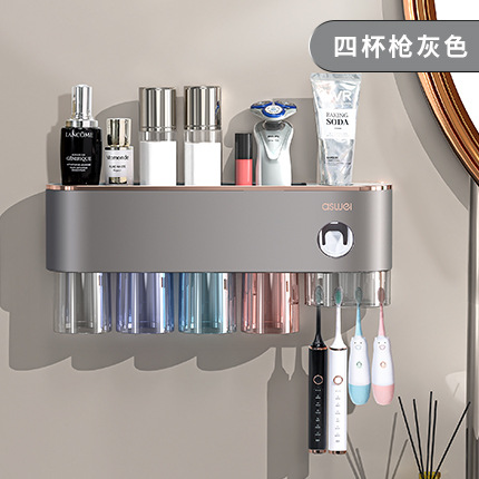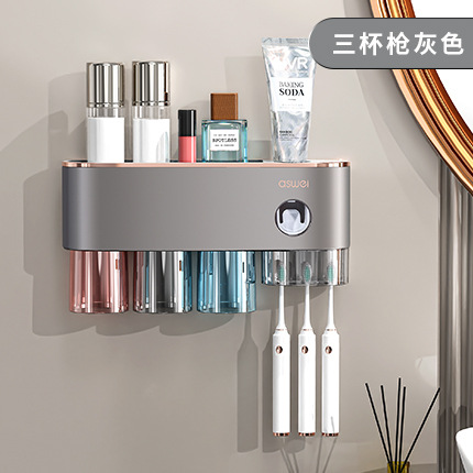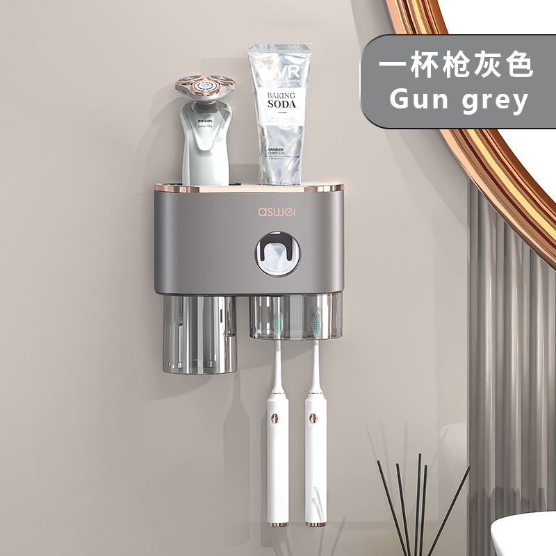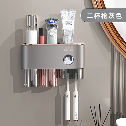 枪灰牙刷置物架卫生间免打孔漱口杯牙杯壁挂式收纳架电动牙刷架子
