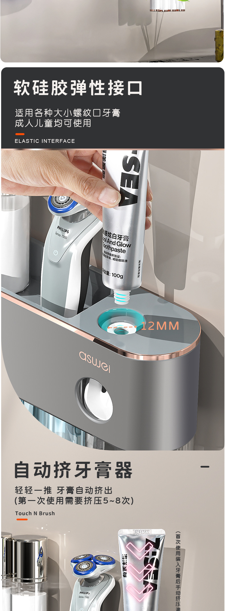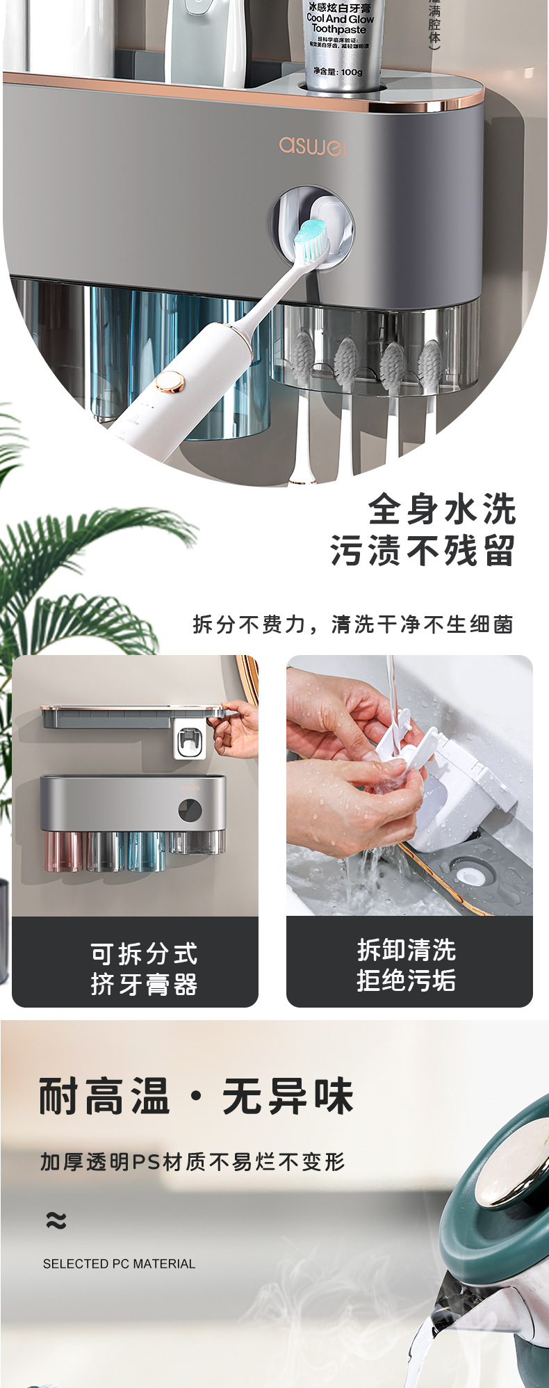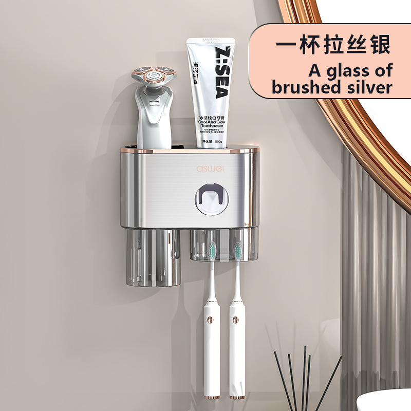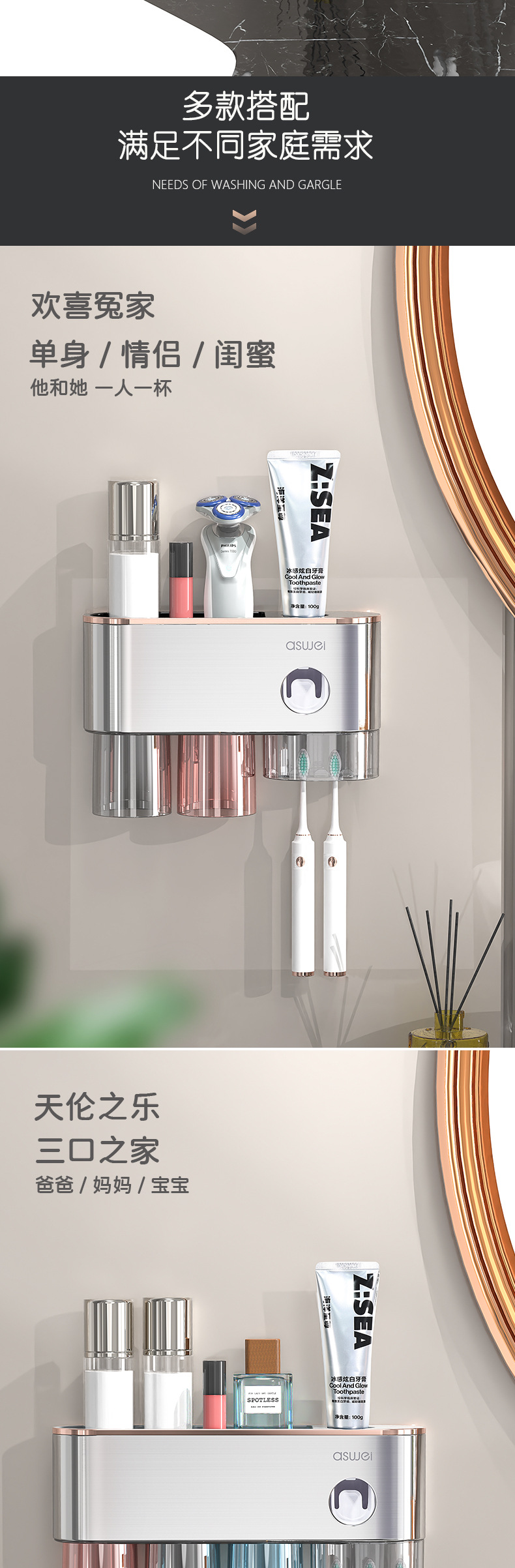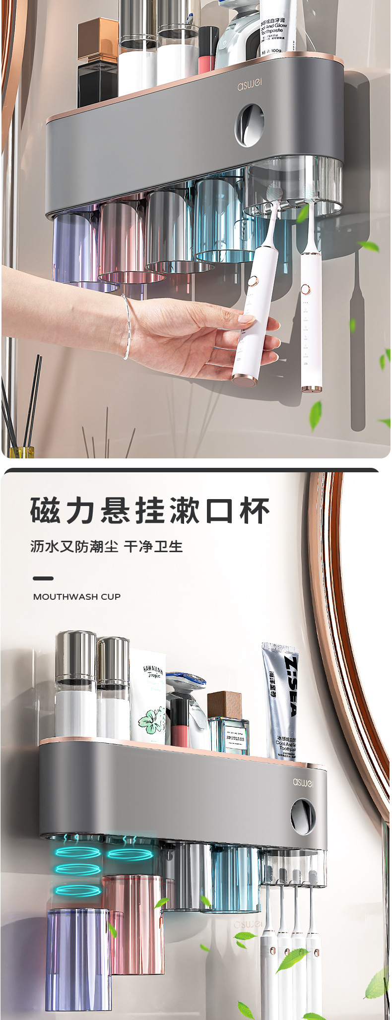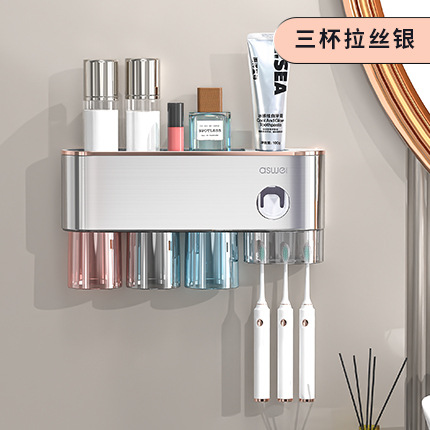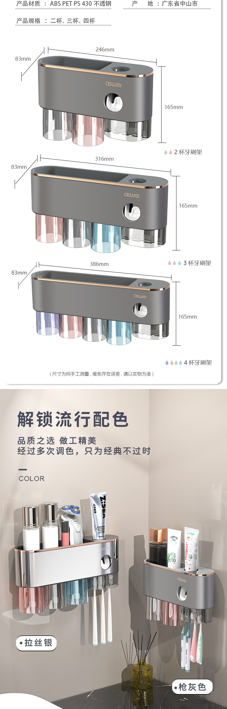 枪灰牙刷置物架卫生间免打孔漱口杯牙杯壁挂式收纳架电动牙刷架子