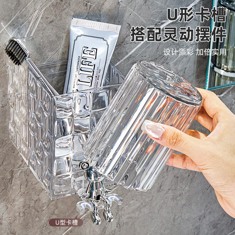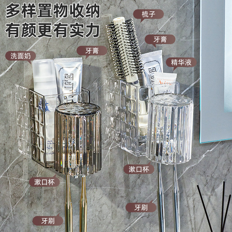 牙刷置物架家用高颜值免打孔轻奢套装卫生间收纳壁挂式浴室牙杯架