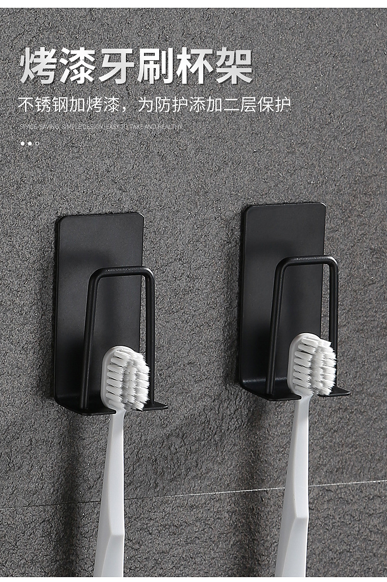 304不锈钢牙刷架浴室免打孔无痕自粘牙刷置物架壁挂沥水漱口杯架