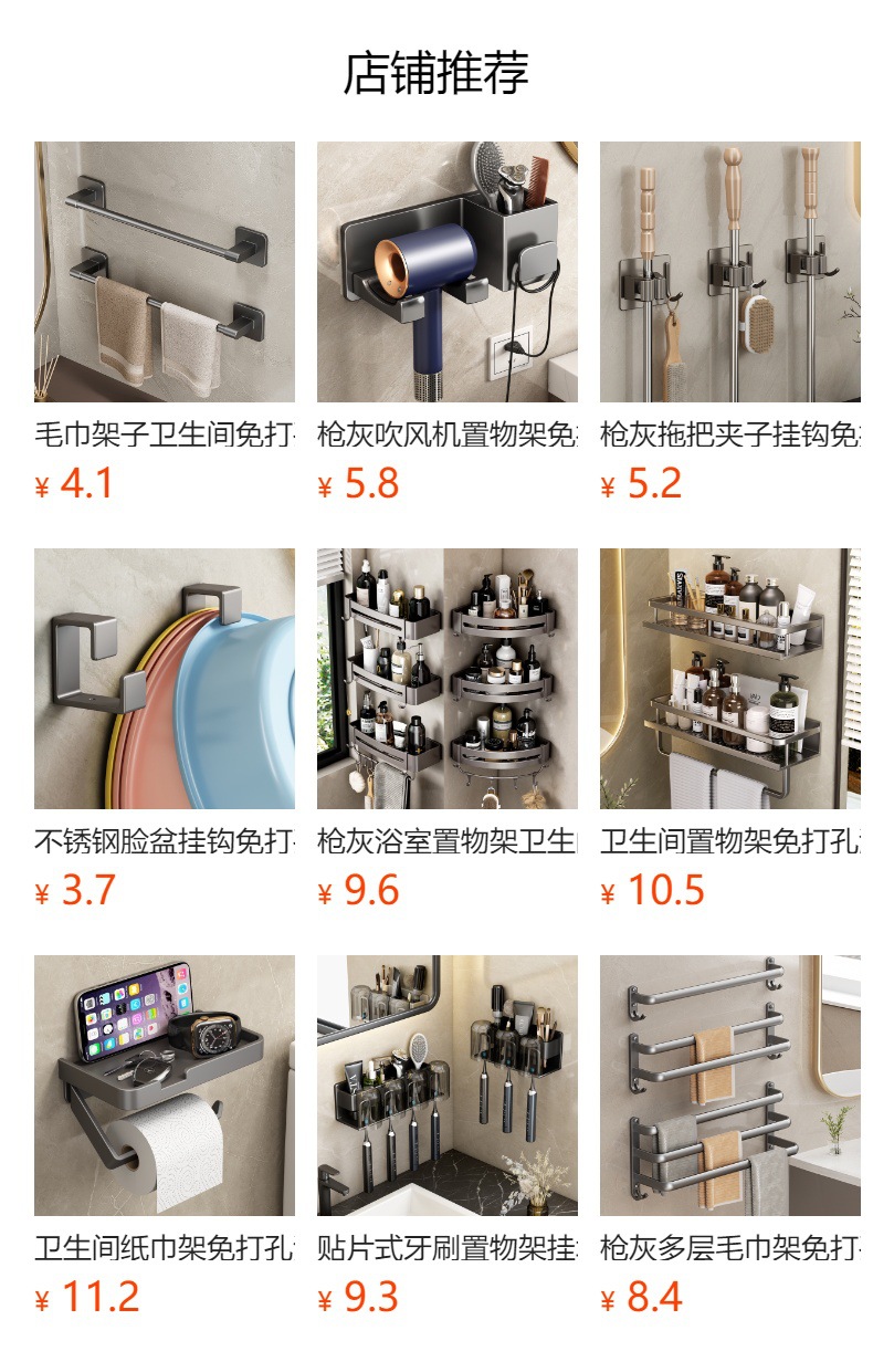枪灰牙刷置物架卫生间免打孔漱口杯牙杯壁挂式收纳架电动牙刷架子