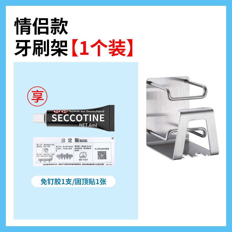 304不锈钢牙刷架浴室免打孔无痕自粘牙刷置物架壁挂沥水漱口杯架