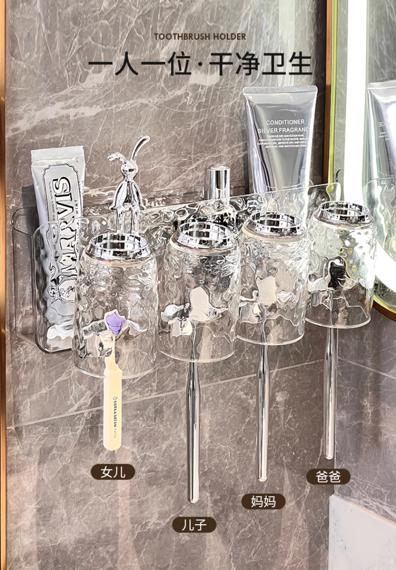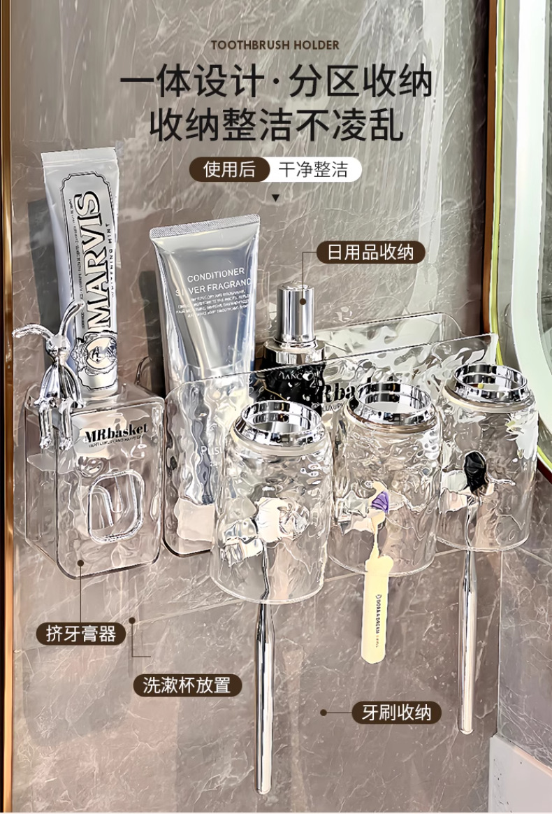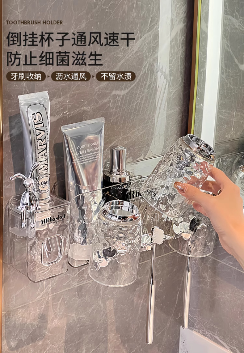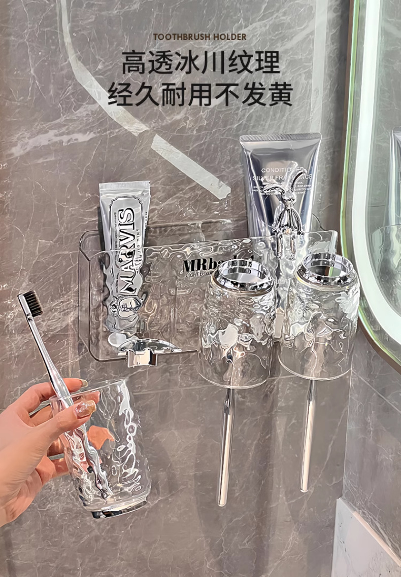 冰川纹牙刷置物架免打孔壁挂式牙具牙膏杯子卫生间漱口杯牙刷架子