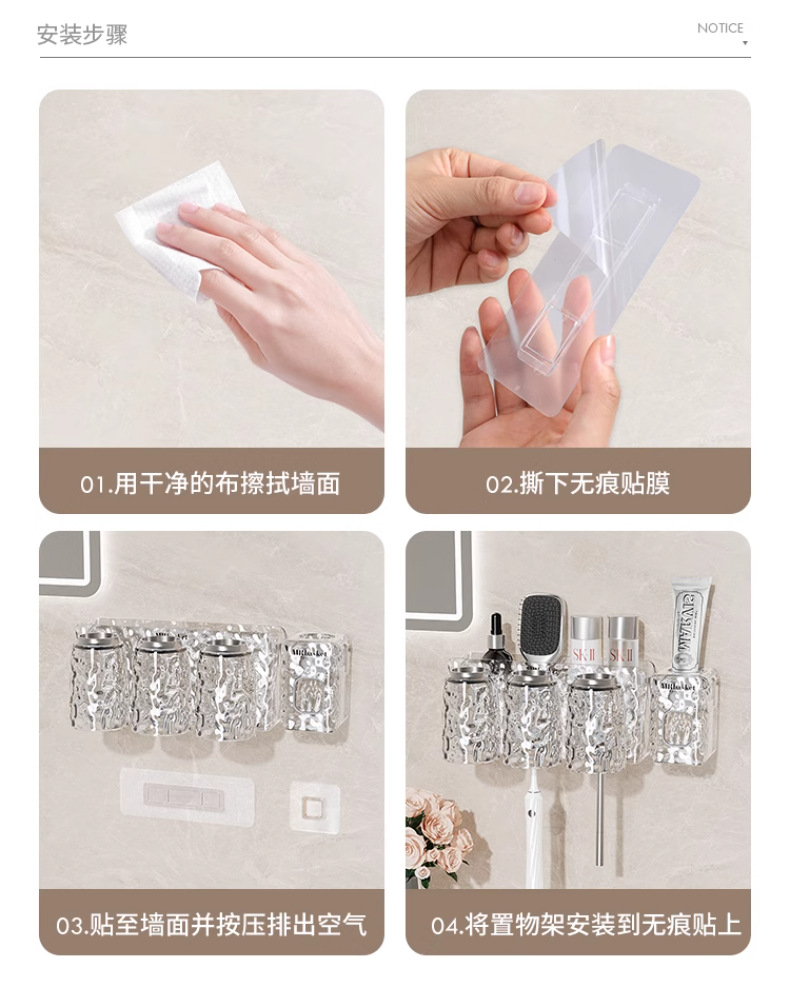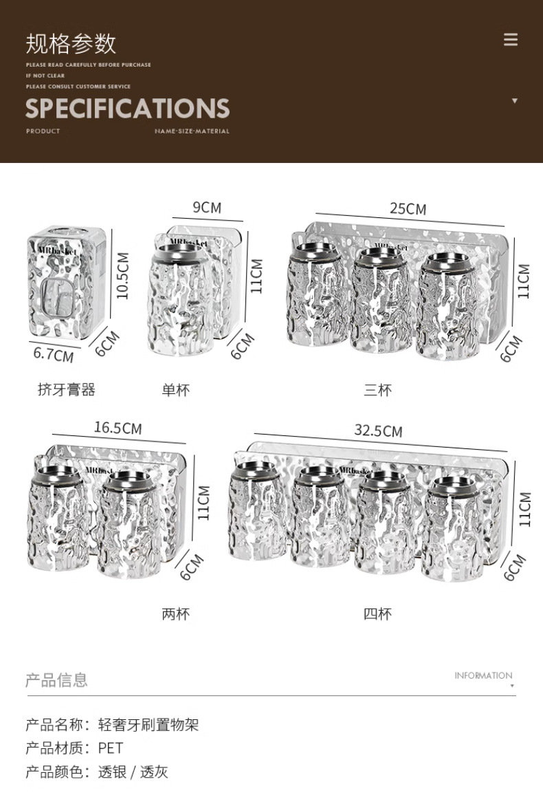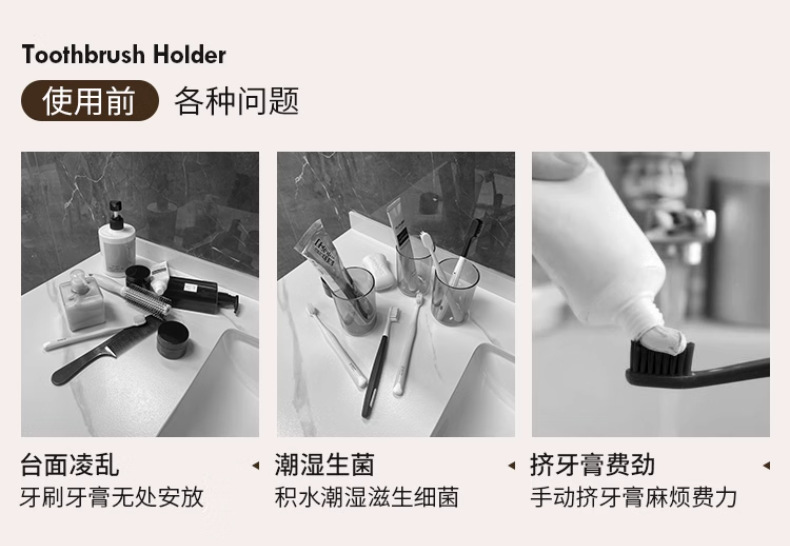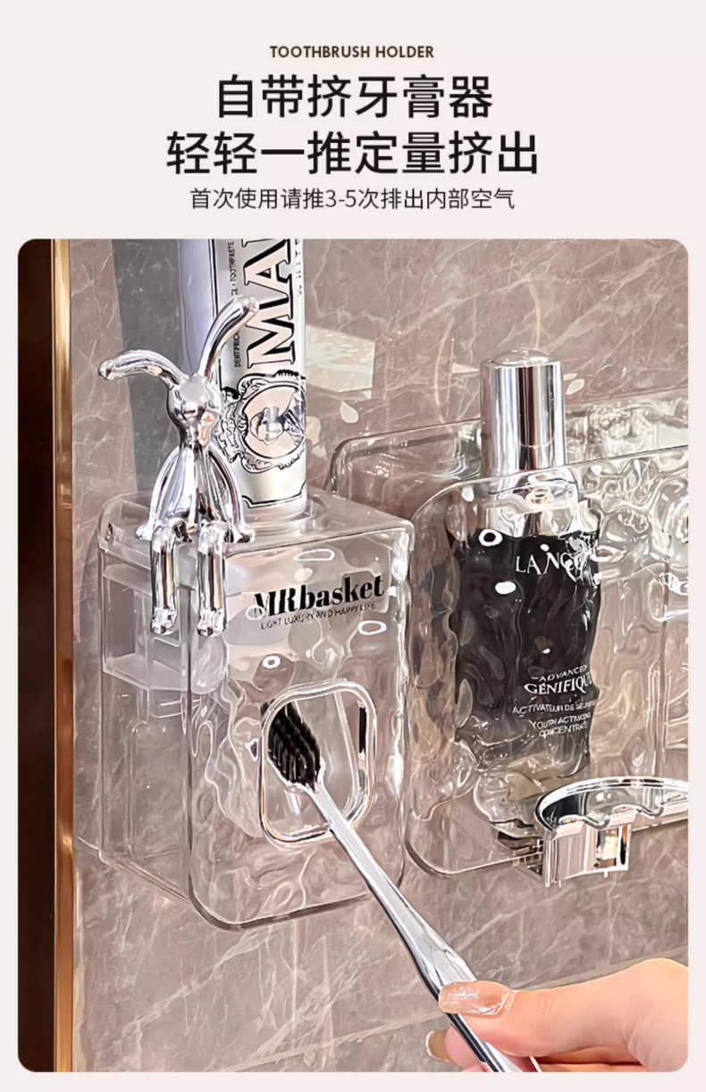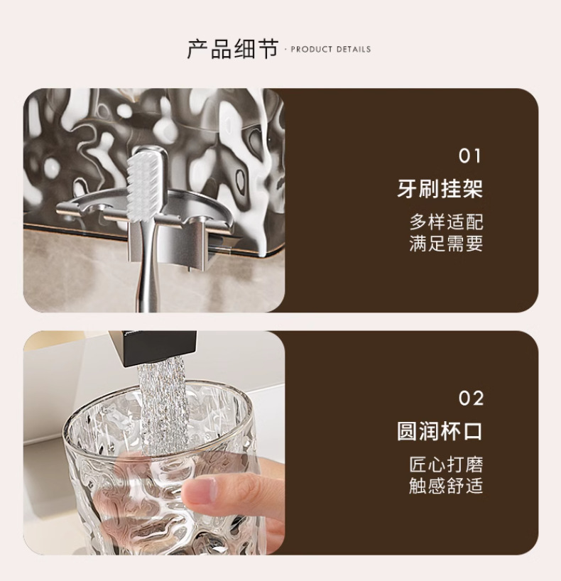 冰川纹牙刷置物架免打孔壁挂式牙具牙膏杯子卫生间漱口杯牙刷架子