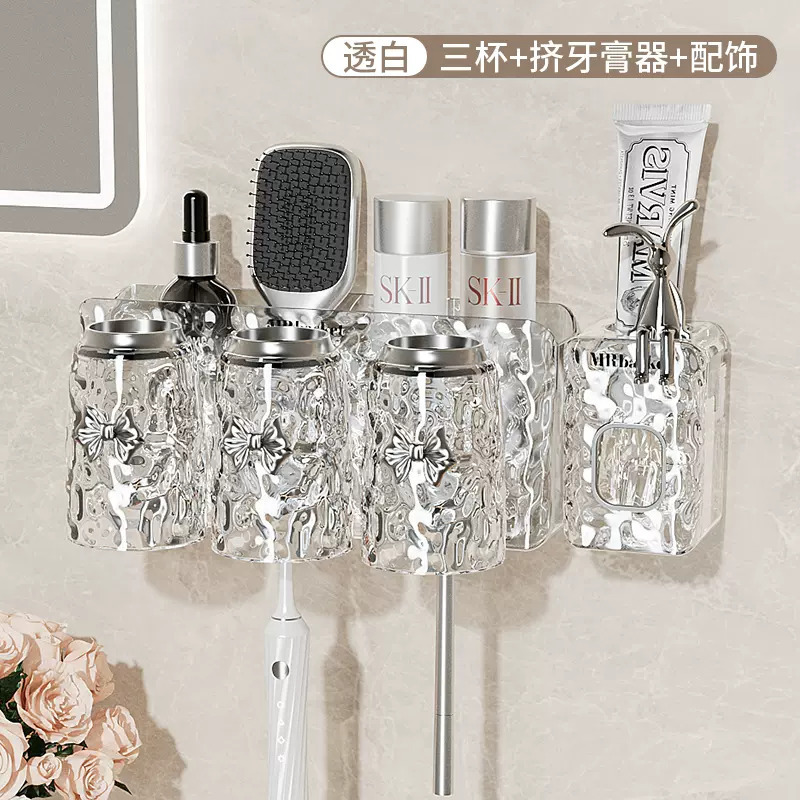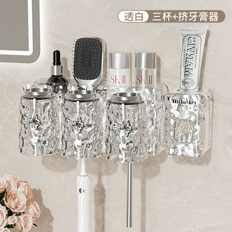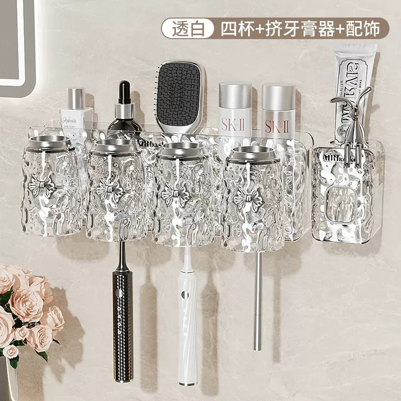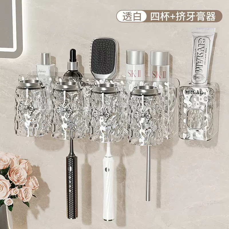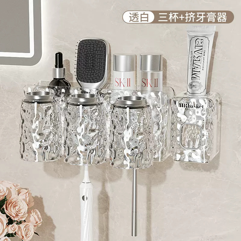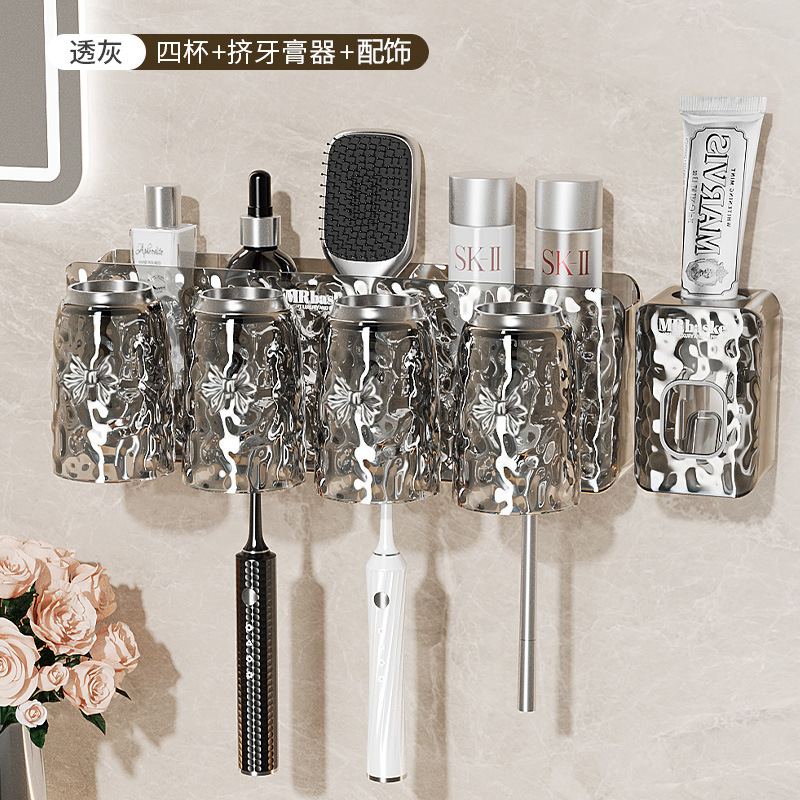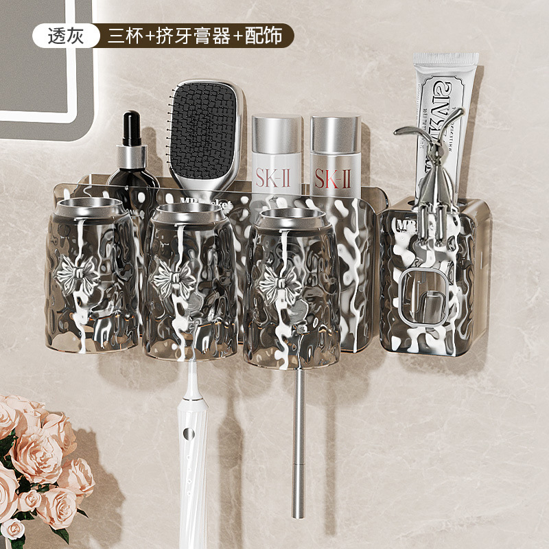 牙刷置物架免打孔壁挂式牙具牙膏杯子收纳架卫生间漱口杯牙刷架子