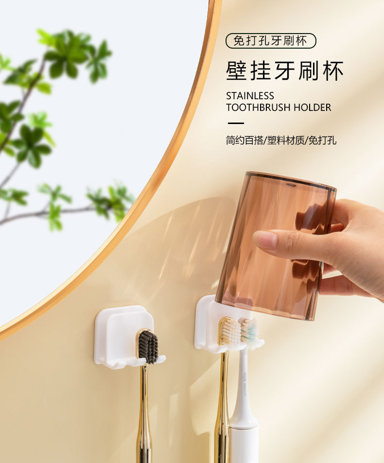 牙杯置物架收纳架免打孔卫生间壁挂式架漱口杯牙刷收纳架牙具座
