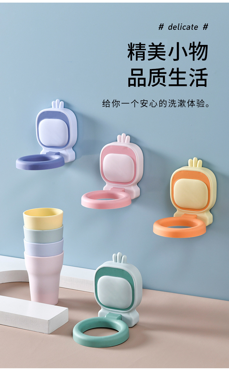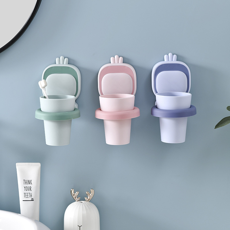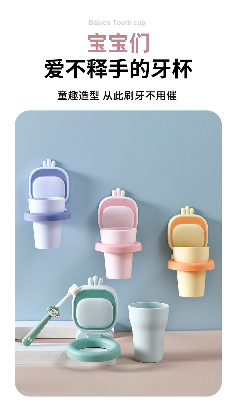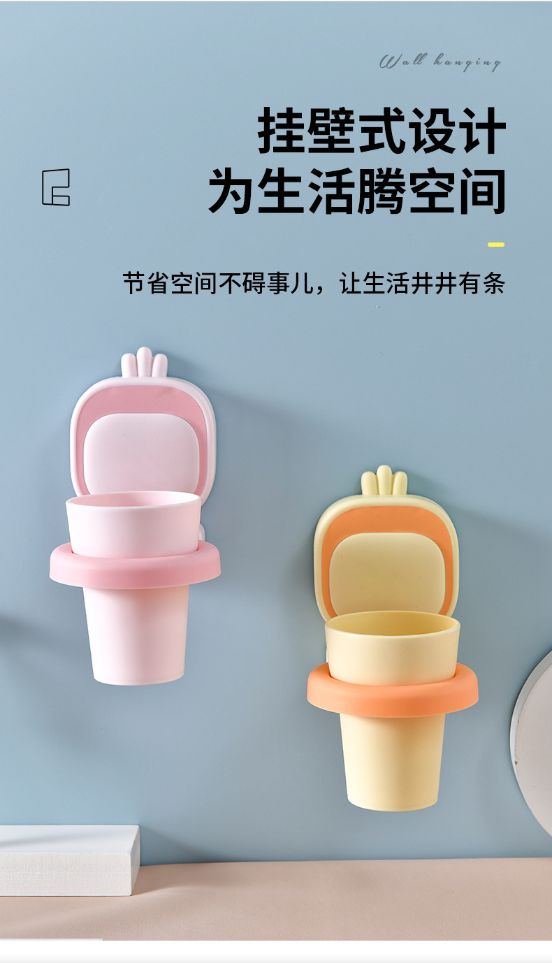 儿童创意刷牙杯架洗漱口杯套装免打孔壁挂式防摔家用牙刷杯置物架