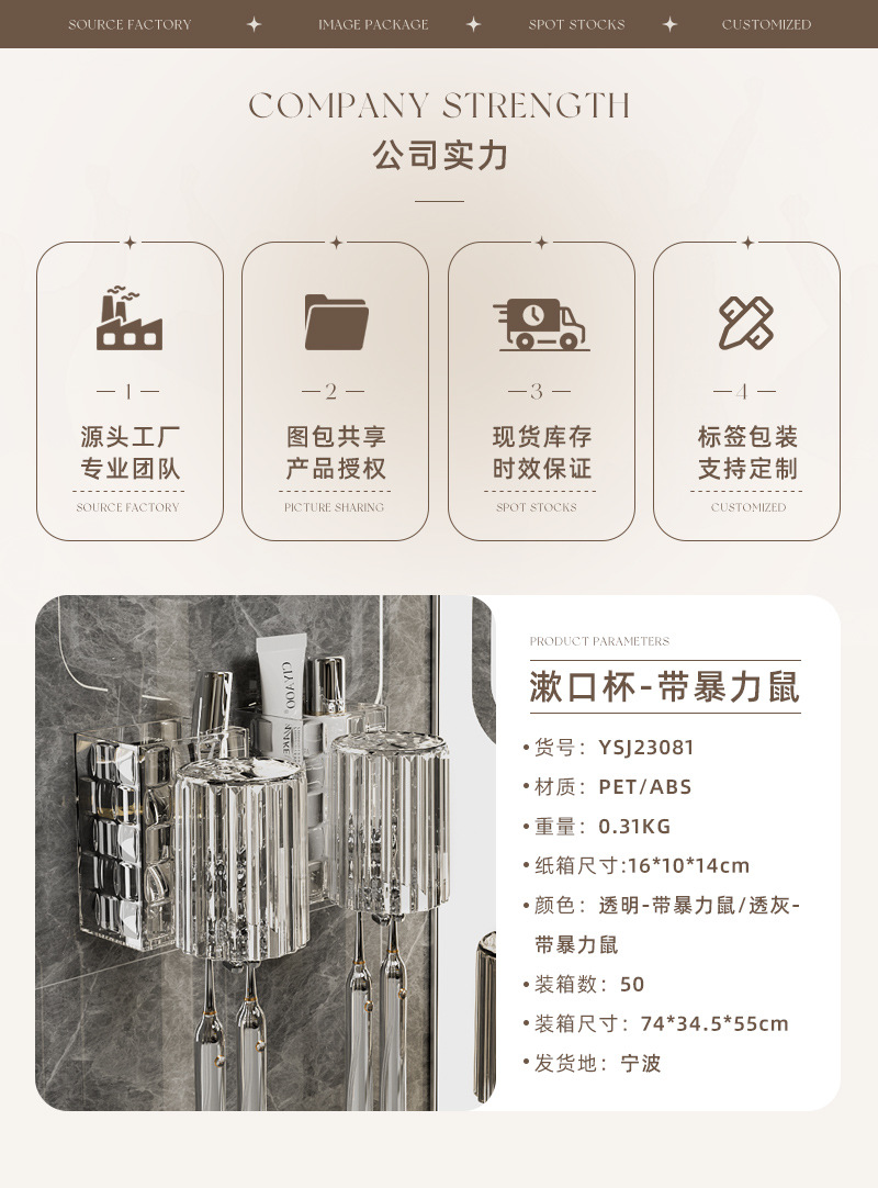 牙刷置物架高颜值家用免打孔套装卫生间收纳轻奢壁挂式浴室牙杯架