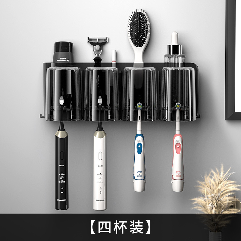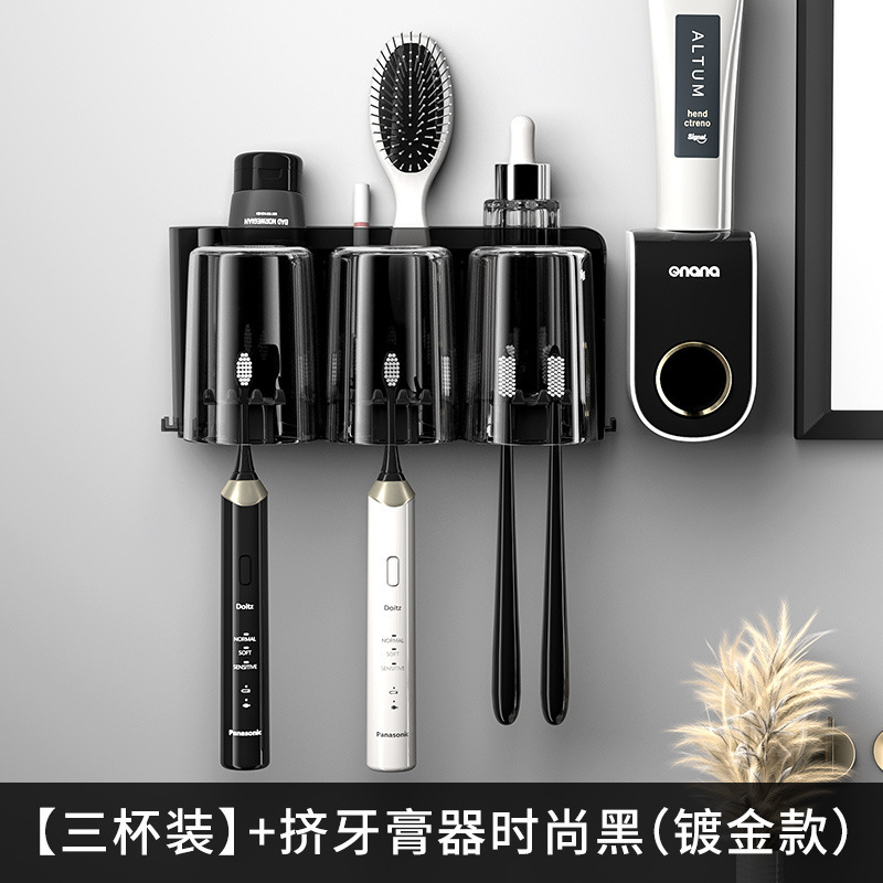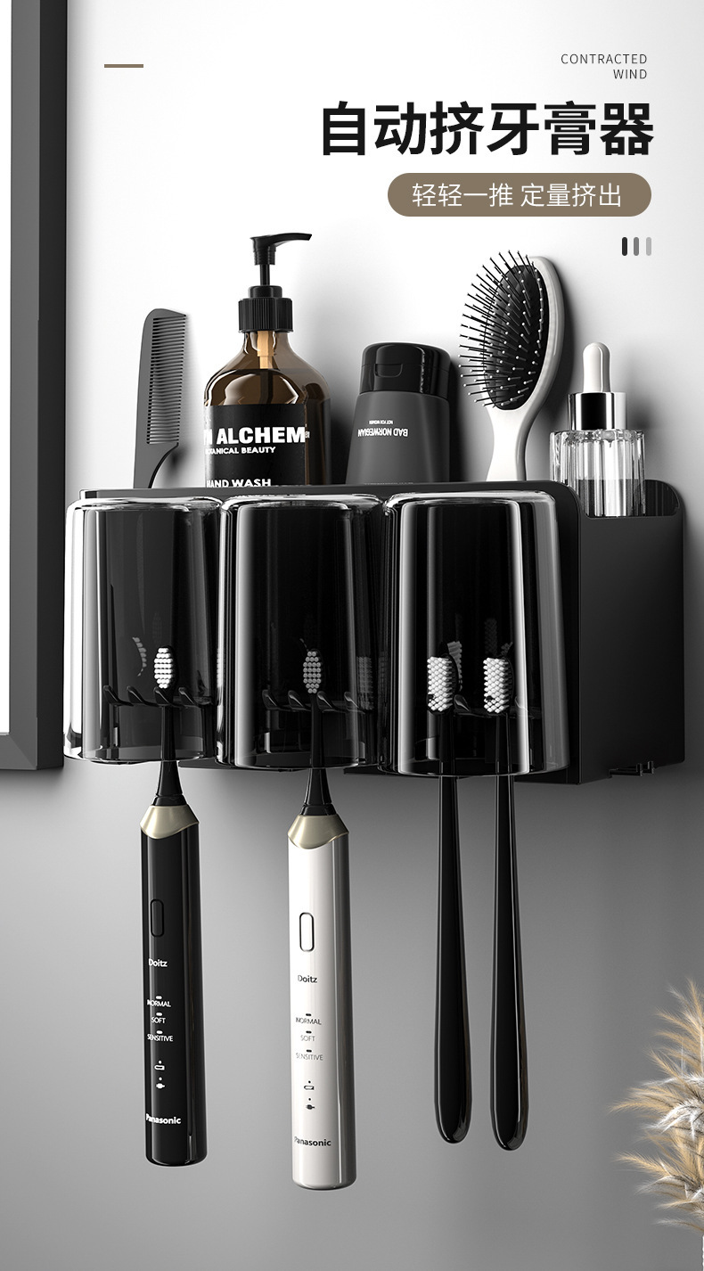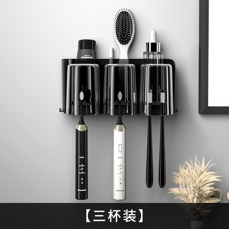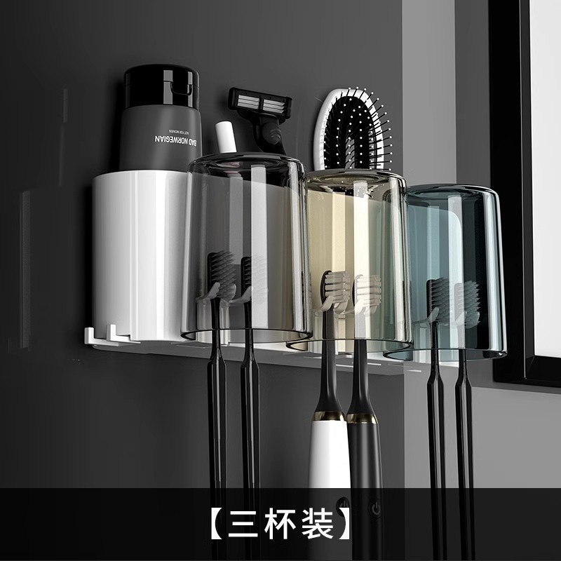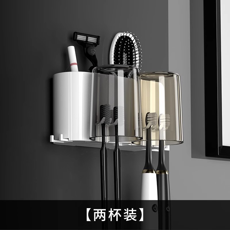 牙刷置物架卫生间一套免打孔漱口杯挂墙式收纳架刷牙杯牙膏架子